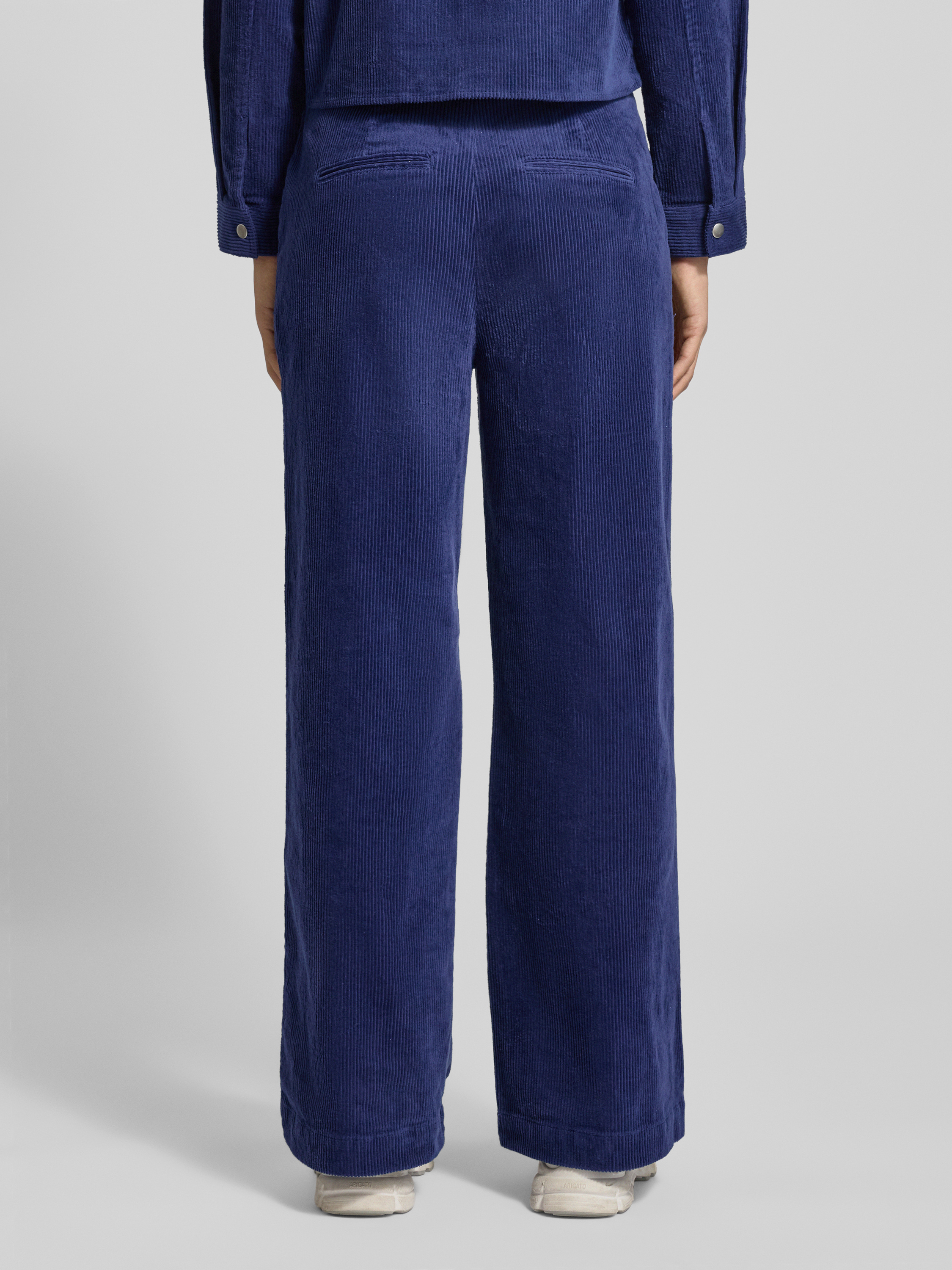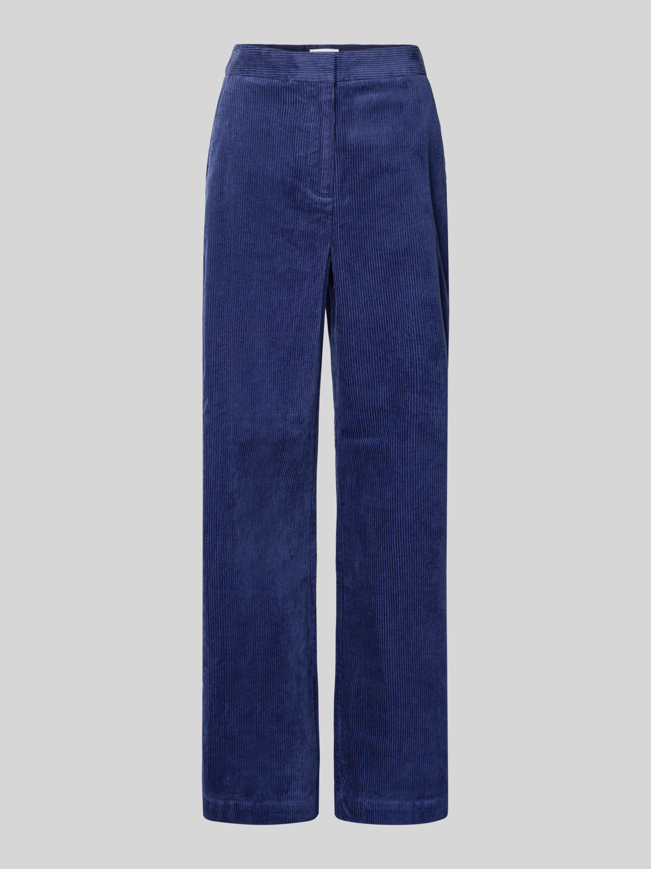 Spodnie sztruksowe z wysokim stanem model ‘Geggo’ - ciemnoniebieski