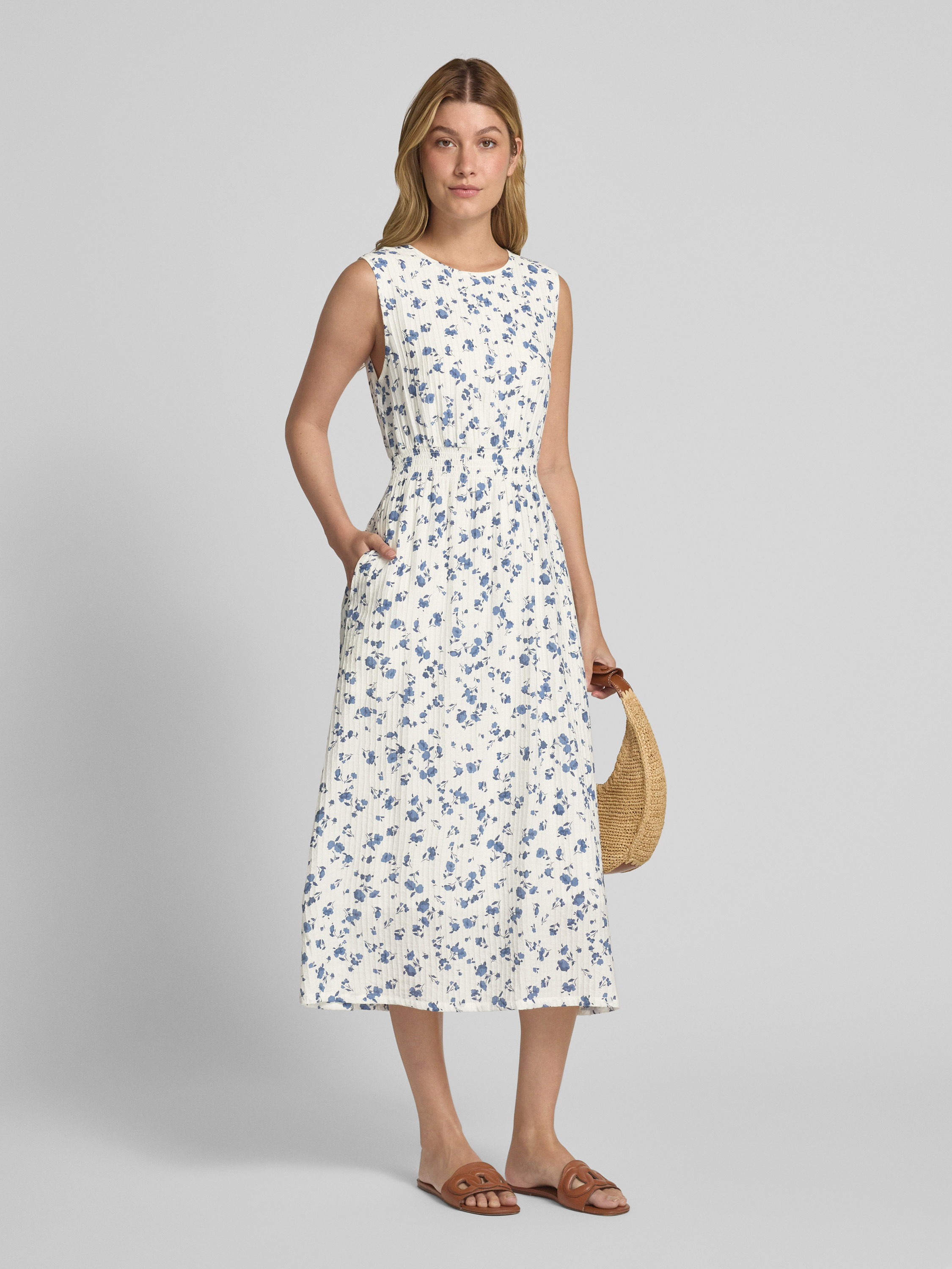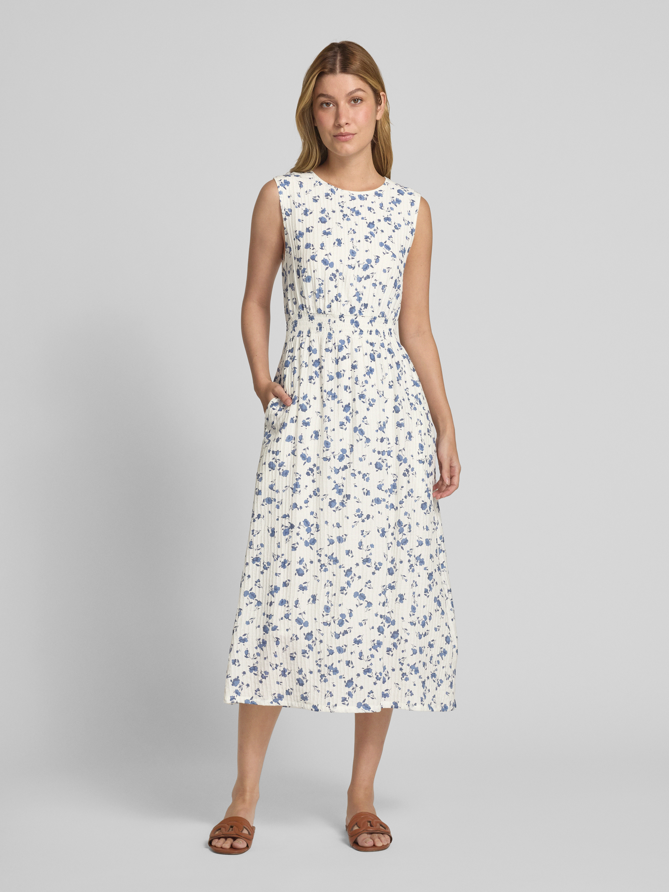 Sukienka midi z fakturowanym wzorem model ‘Falisha’ - szaroniebieski