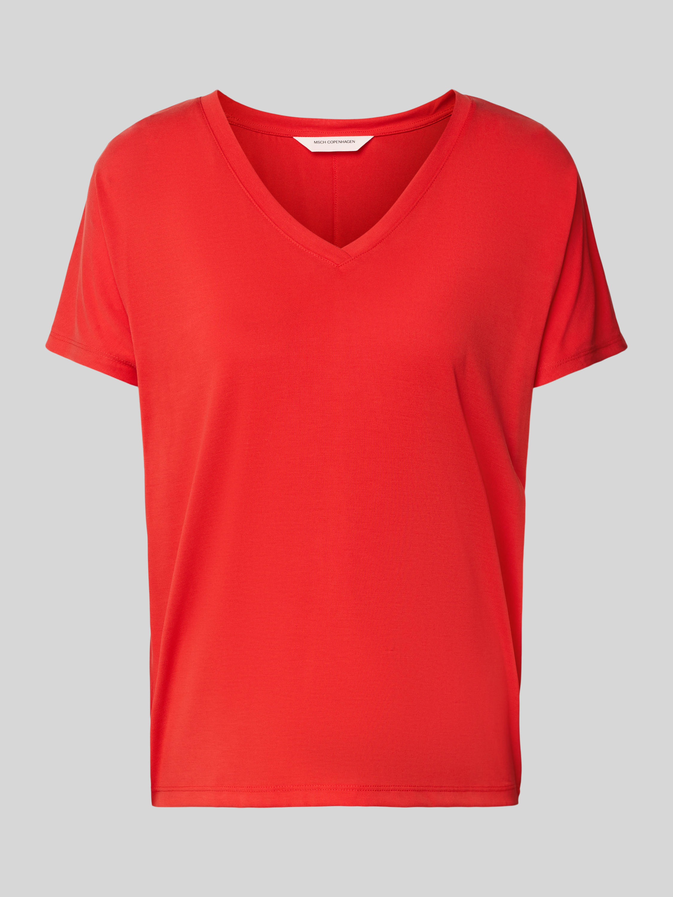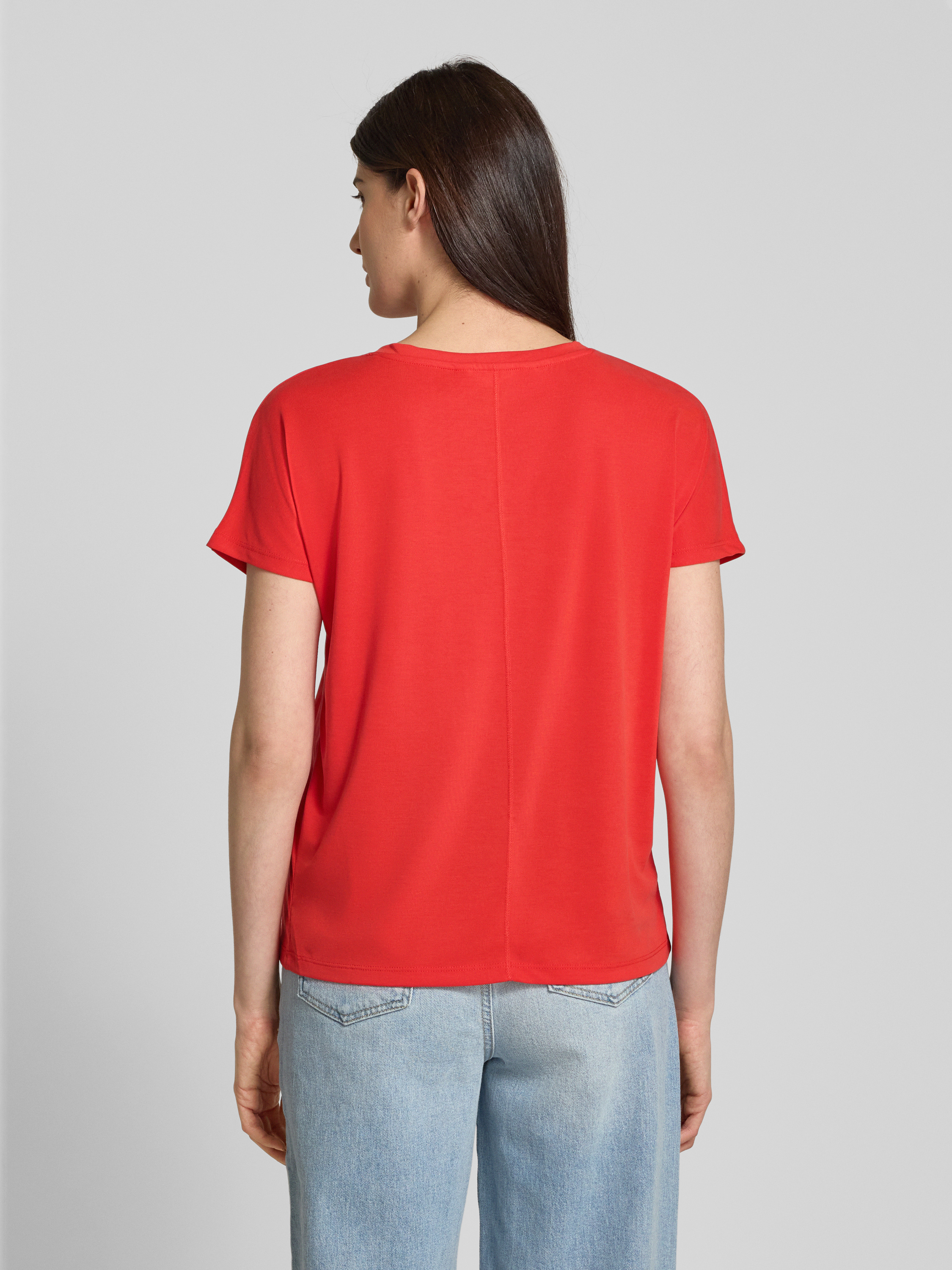 T-shirt z dekoltem w serek model ‘Fenya’ - czerwony