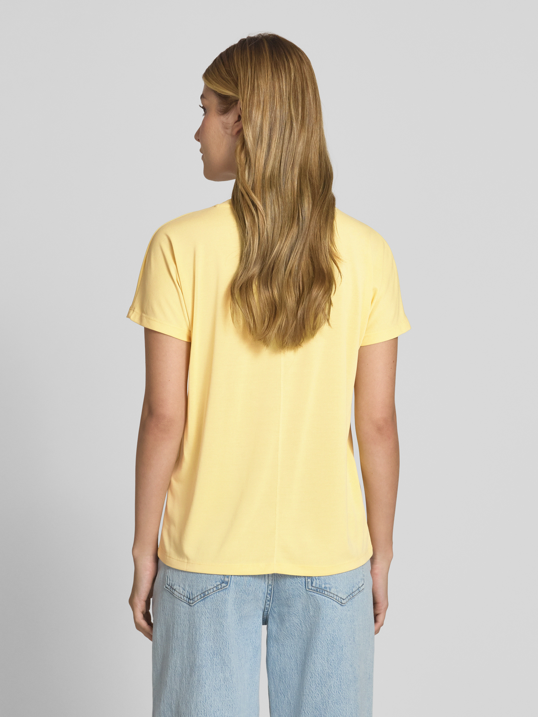 T-shirt z dekoltem w serek model ‘Fenya’ - jasnożółty