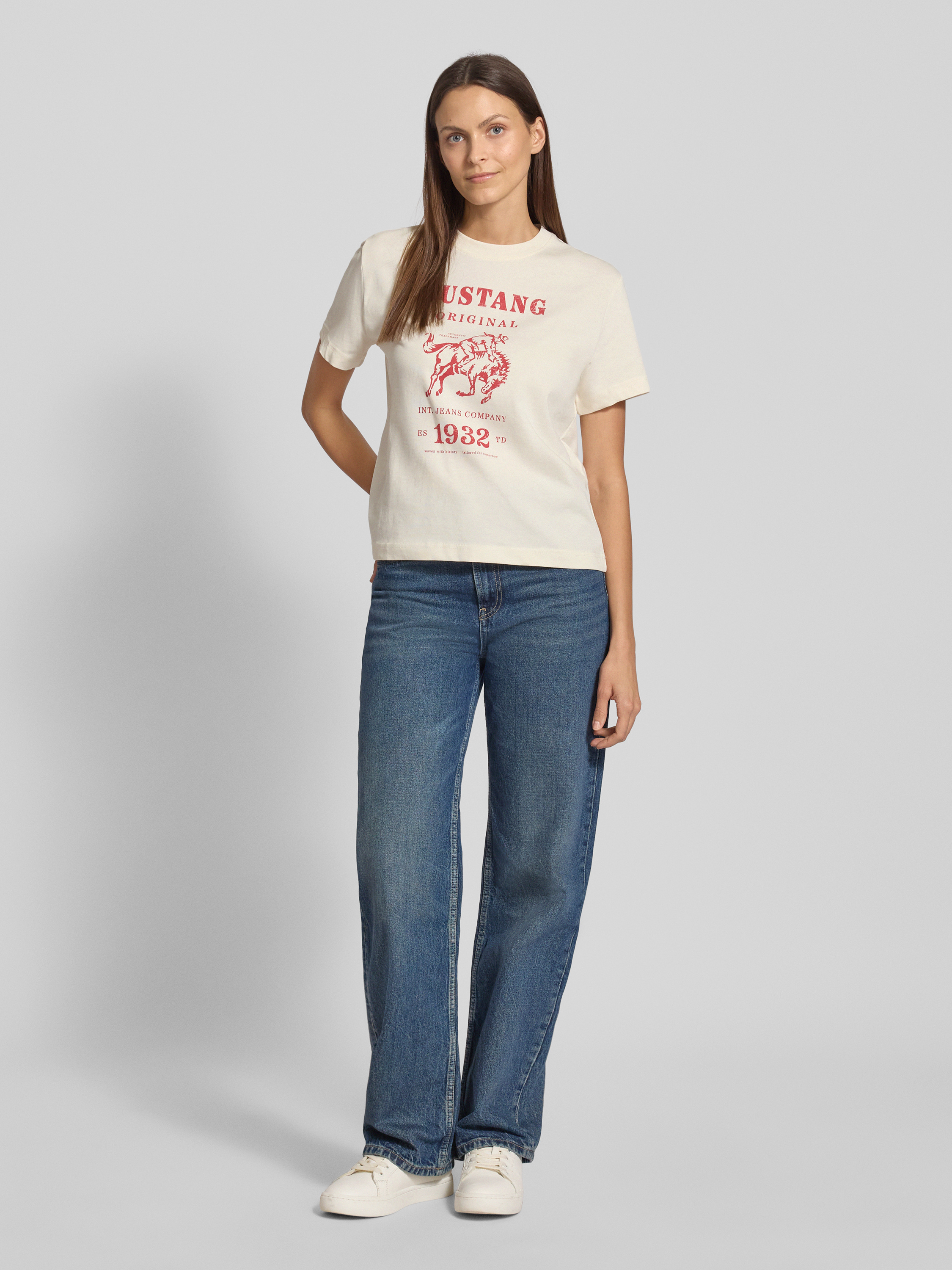 T-shirt z nadrukiem z logo model ‘Floris’ - biały