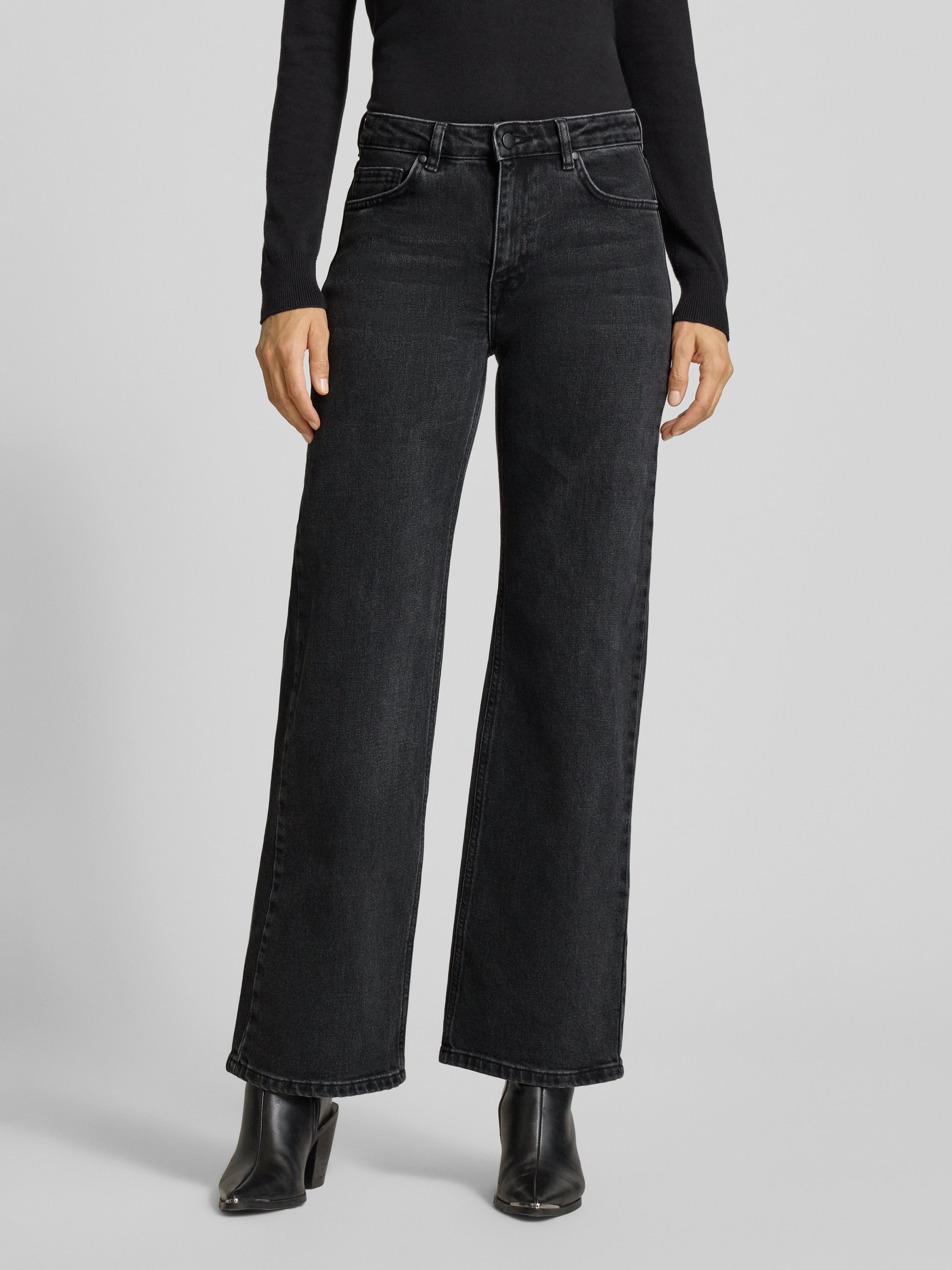 Jeansy o kroju straight fit z wpuszczanymi kieszeniami - antracytowy