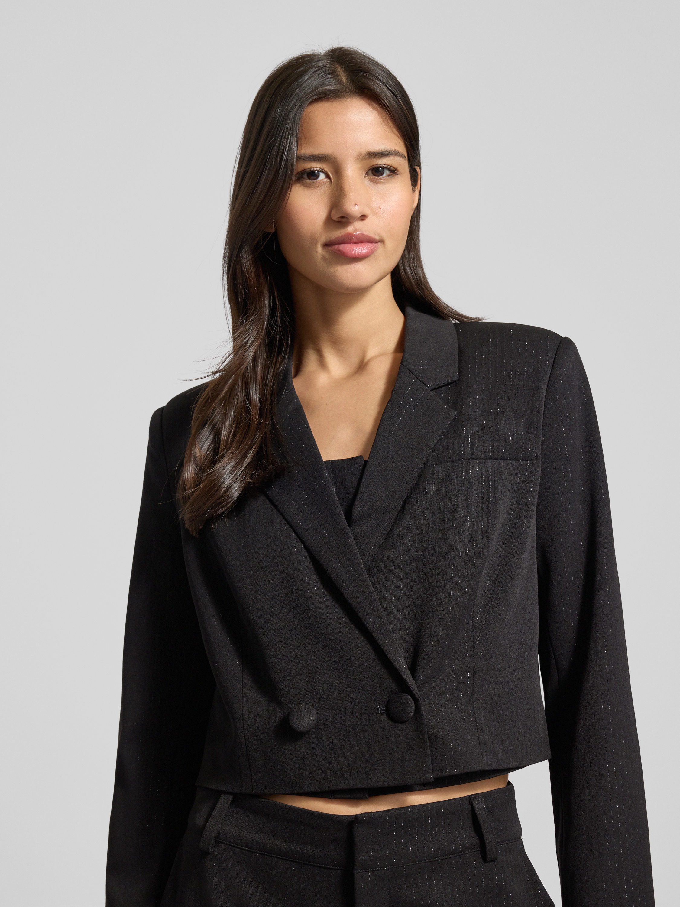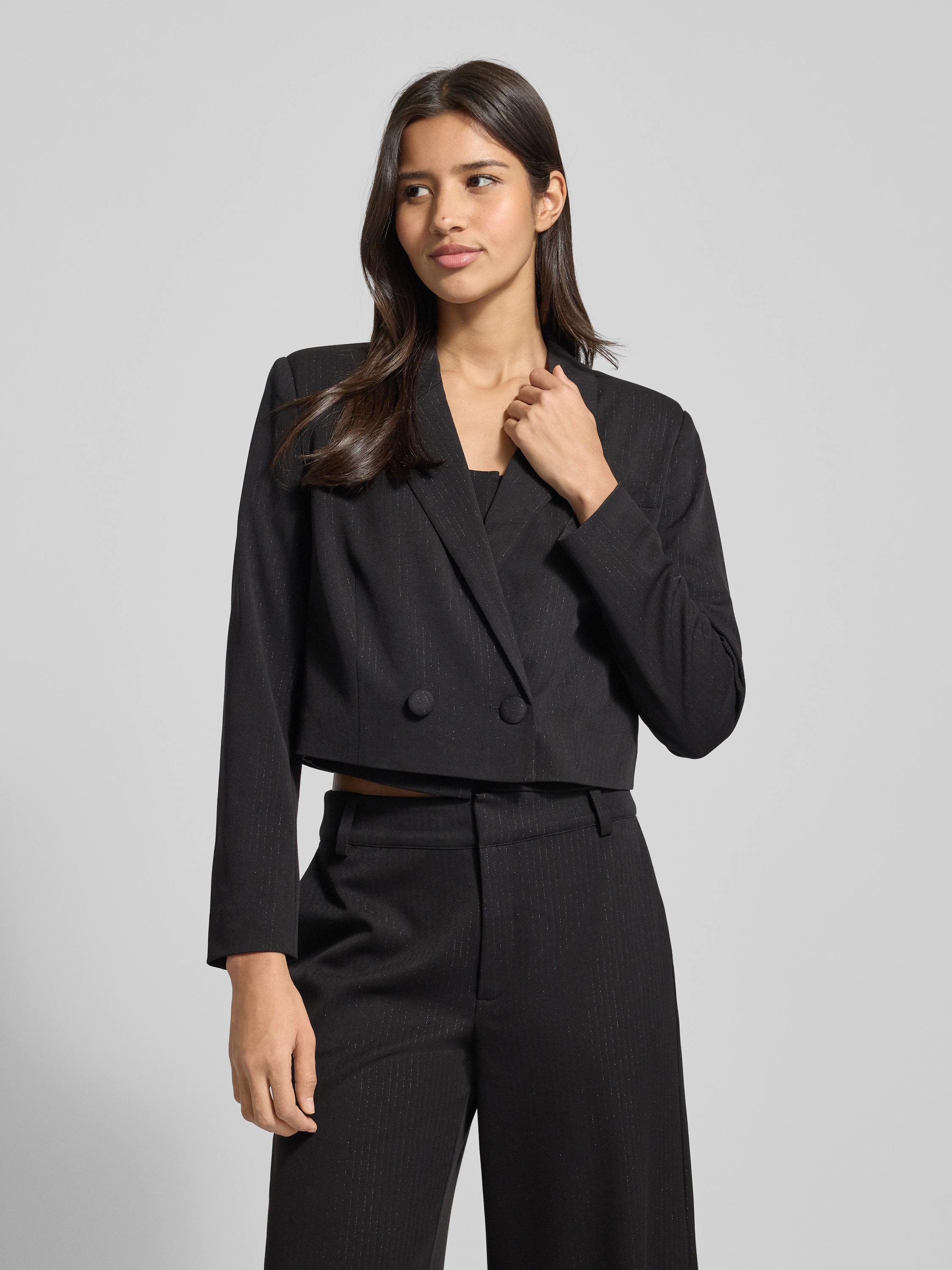 Żakiet krótki z kołnierzem z połami model ‘Reece’ - czarny