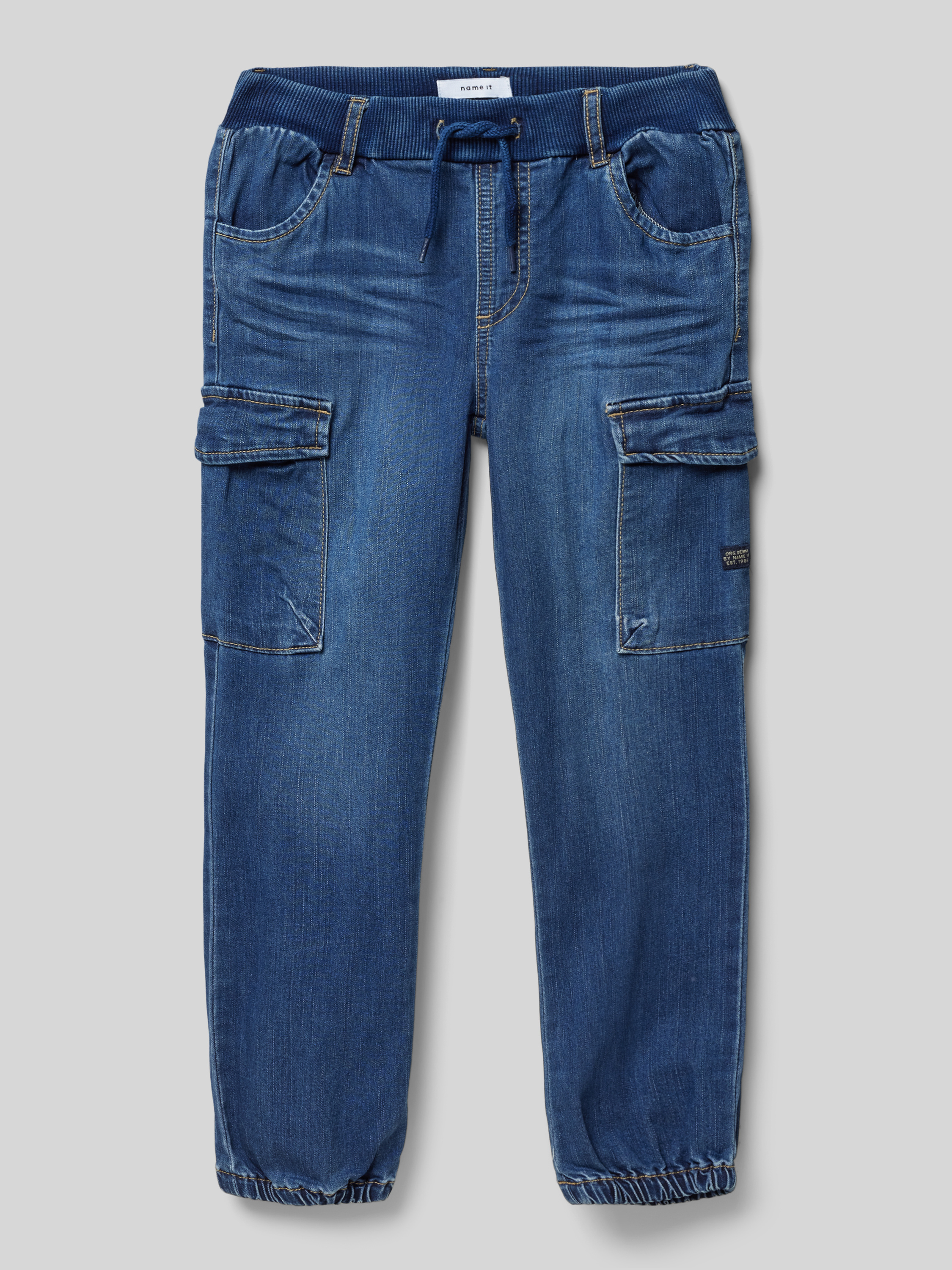 Jeansy cargo o kroju baggy fit z elastycznymi wykończeniami model ‘BEN’ - ciemnoniebieski