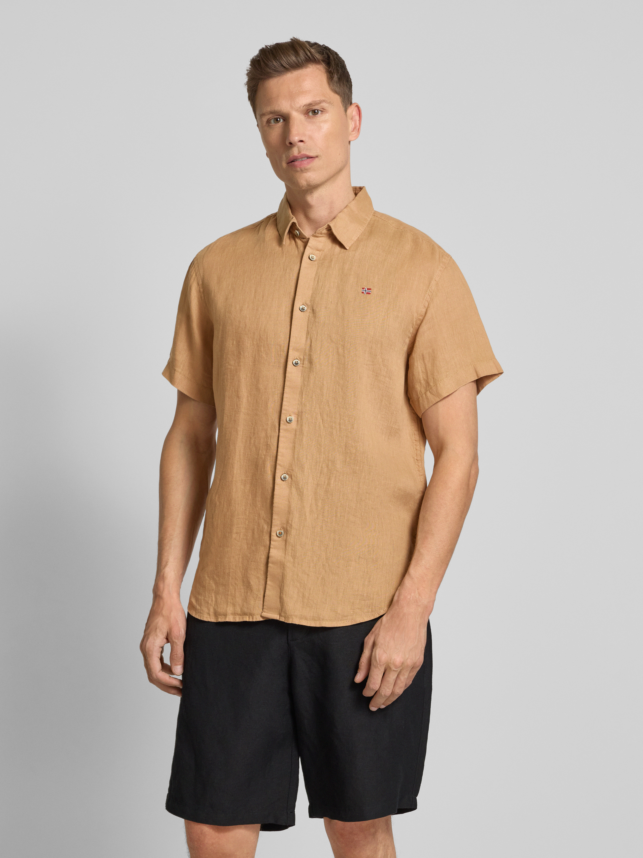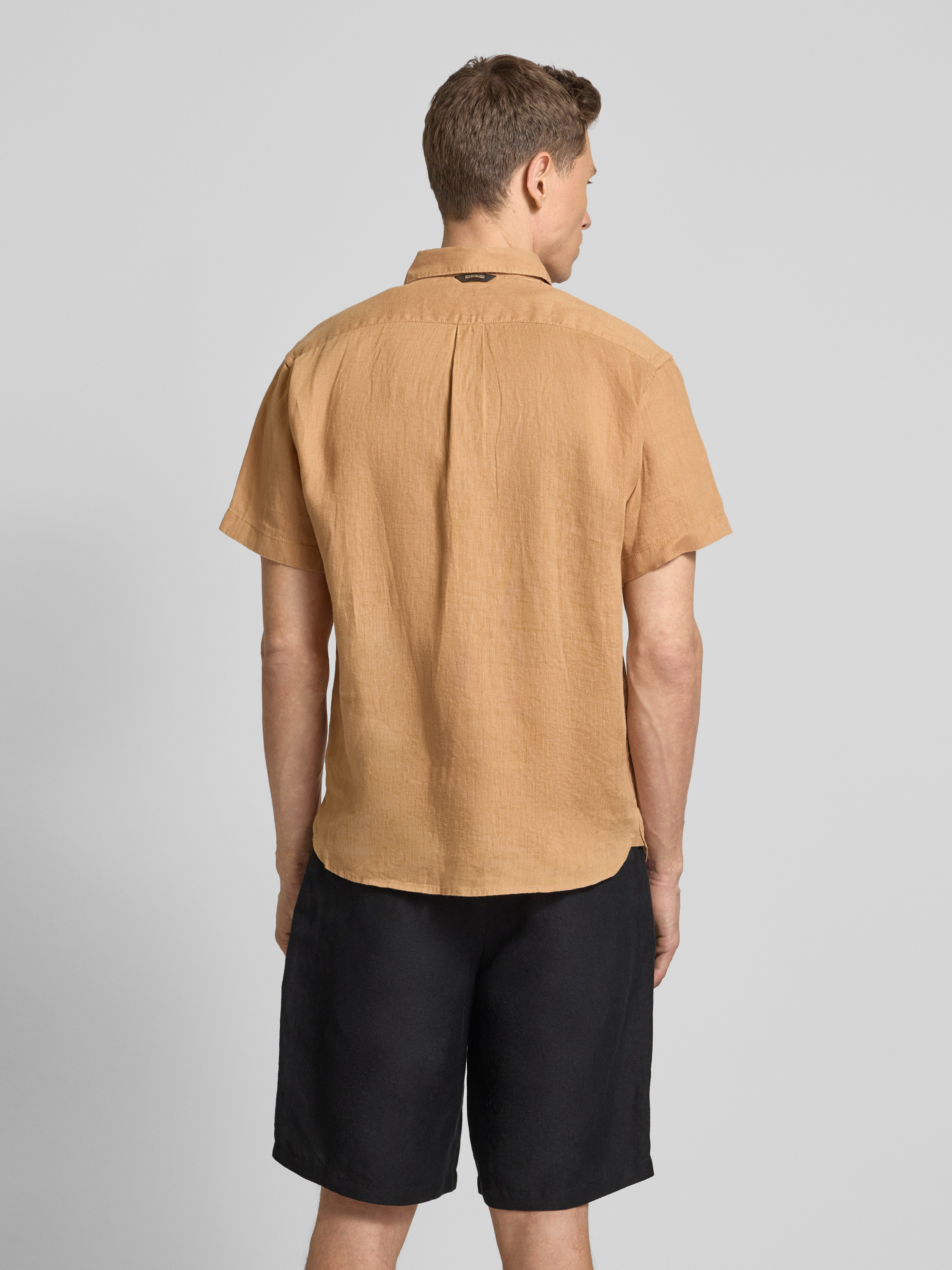 Bermudy lniane o kroju regular fit ze szlufkami na pasek