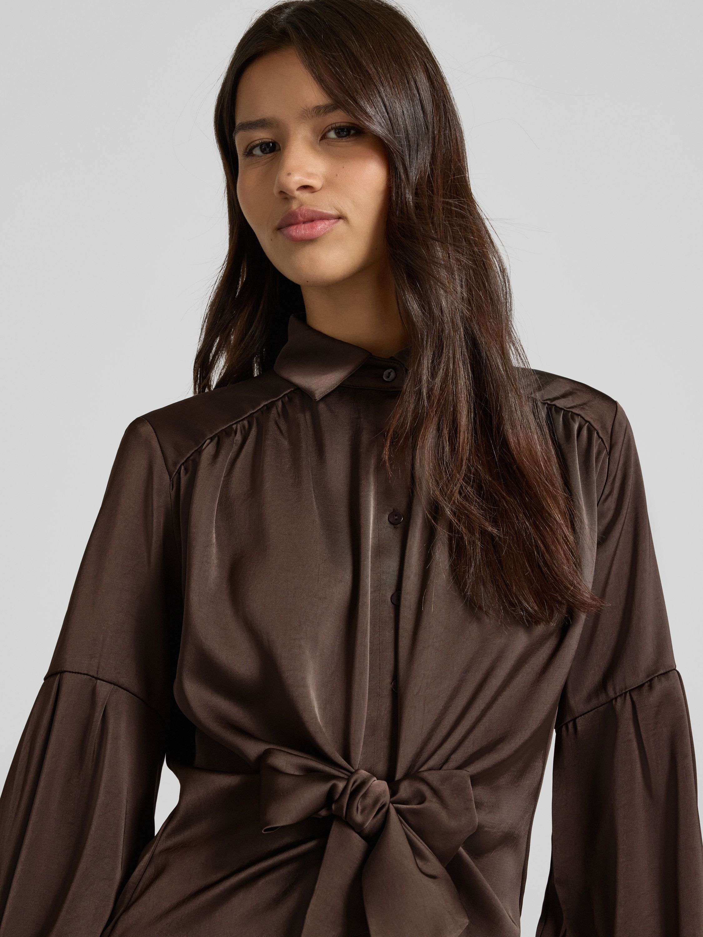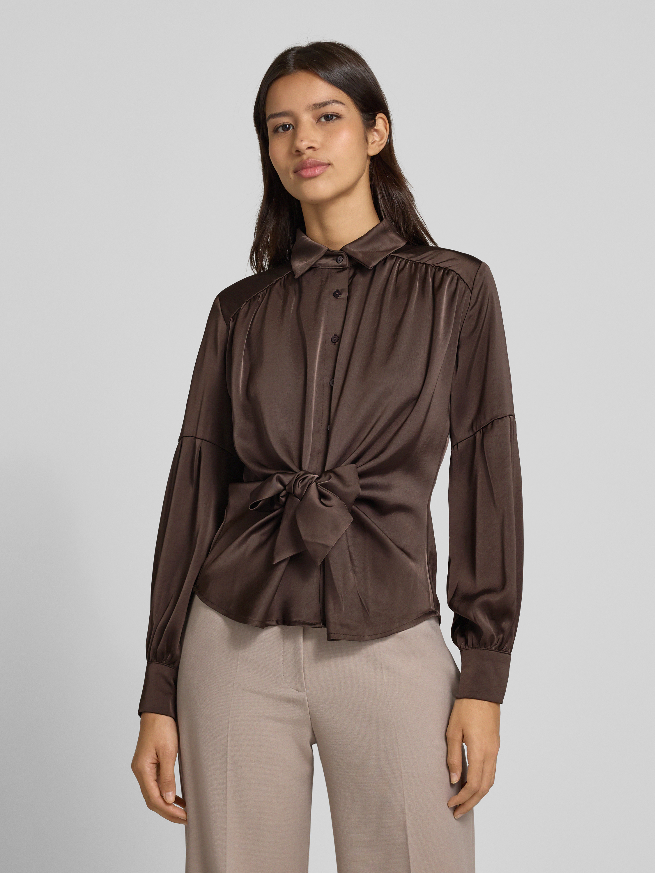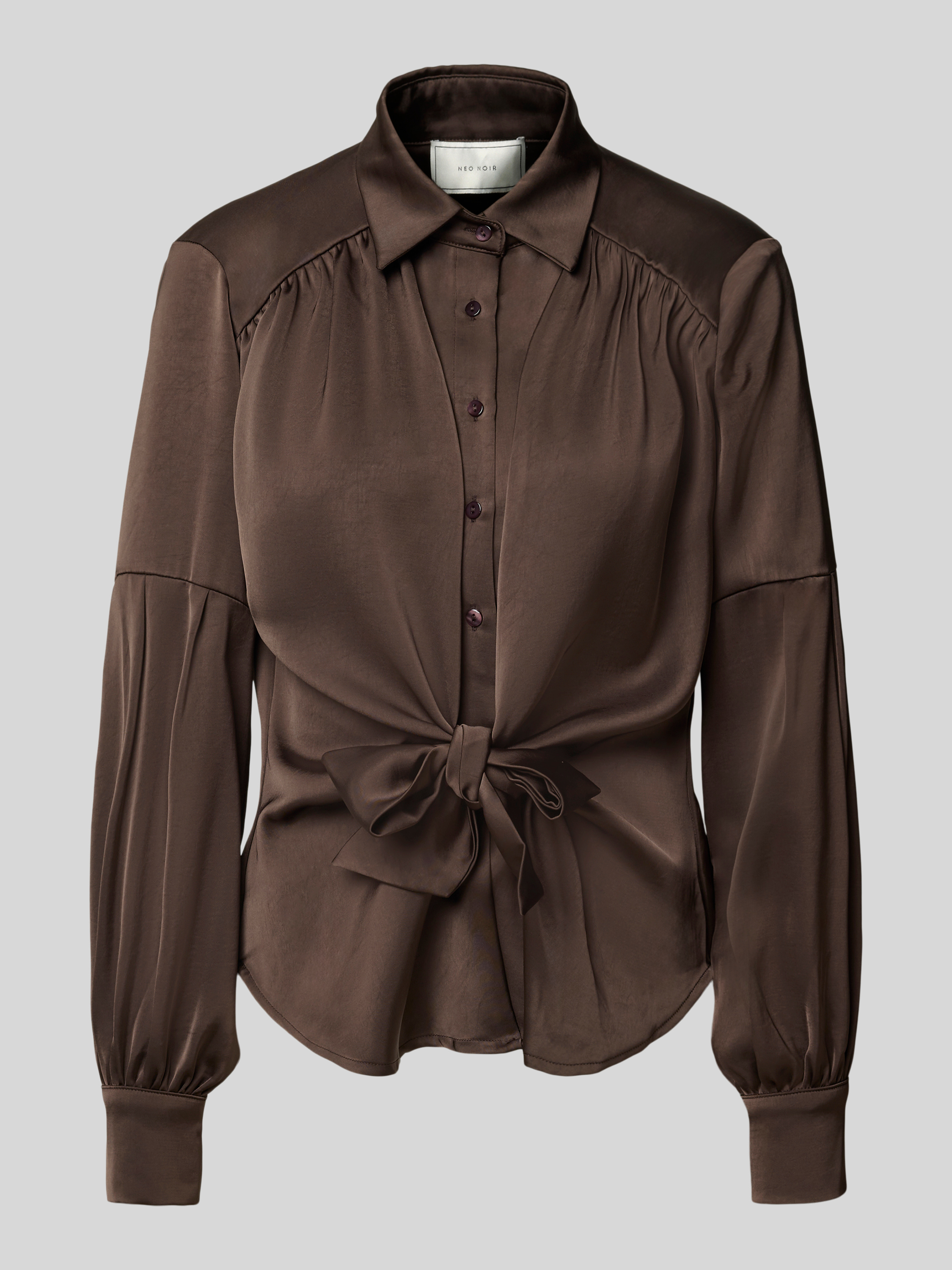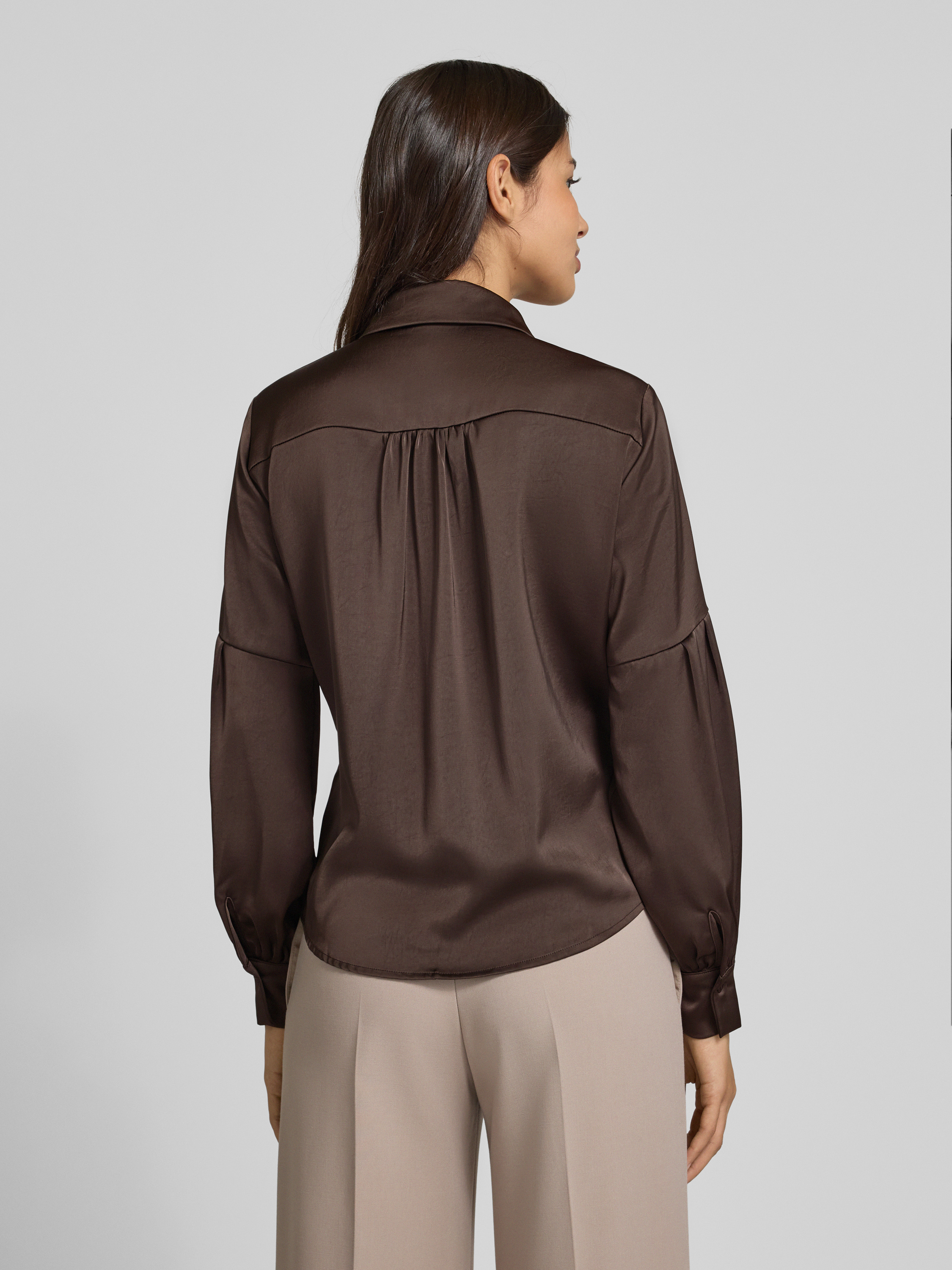 Bluzka koszulowa z listwą guzikową - ciemnobrązowy
