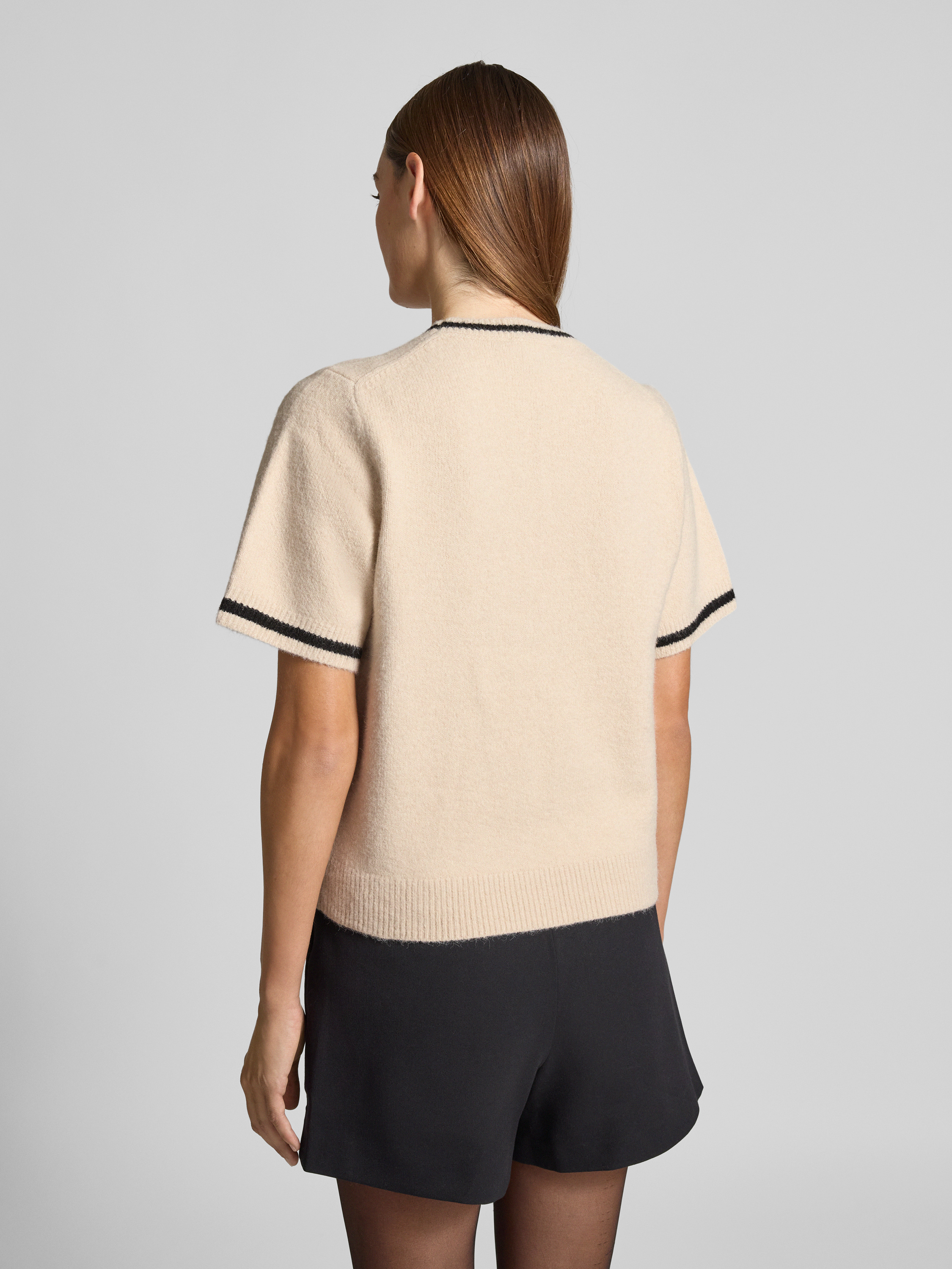 Spódnico-spodnie w stylu kopertowym z lamowanymi kieszeniami z tyłu