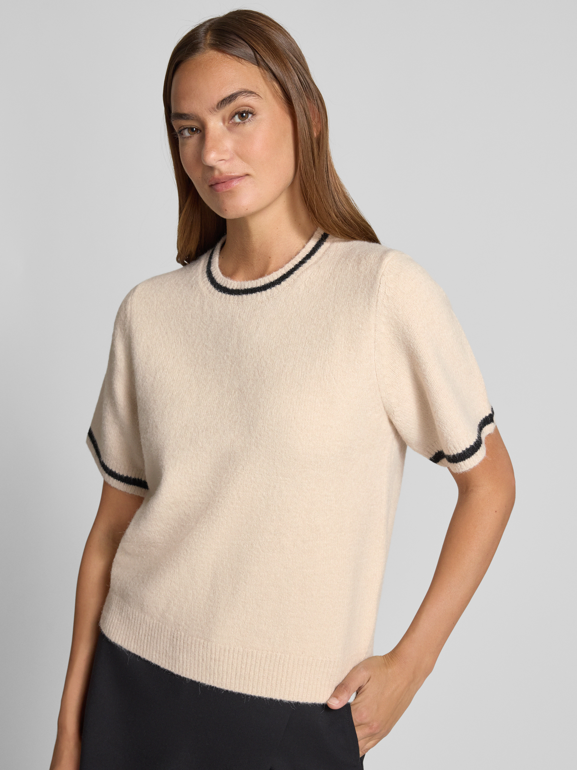Bluzka z dzianiny z okrągłym dekoltem model ‘MAWINA’ - beżowy