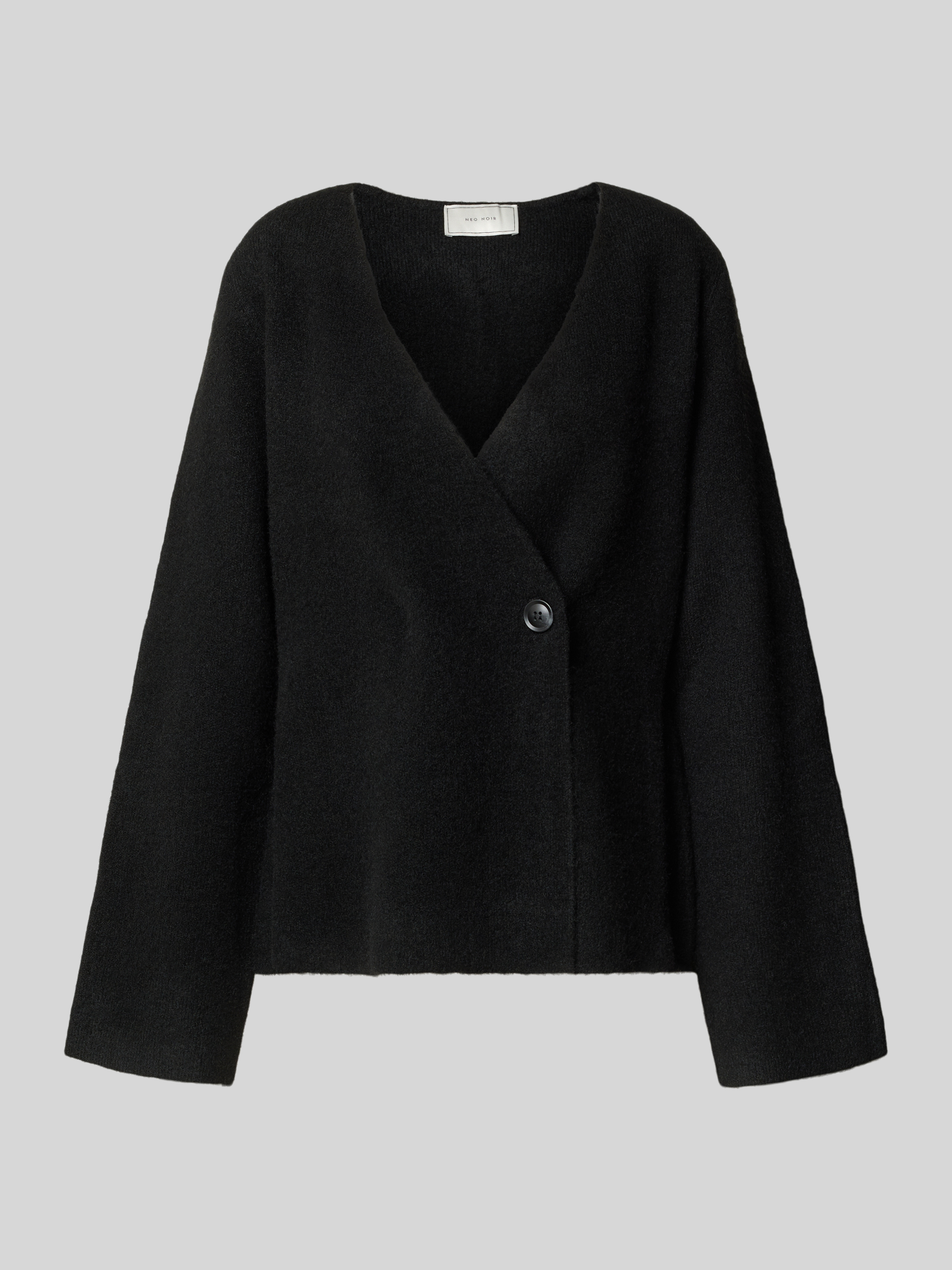 Kurtka z dzianiny z zapięciem na guzik model ‘Marie’ - czarny
