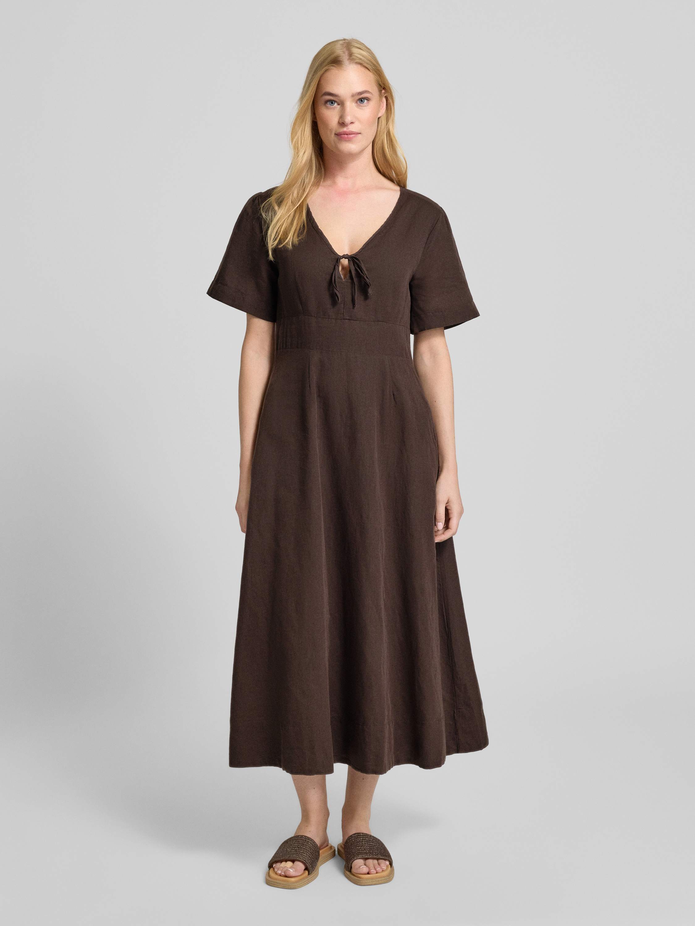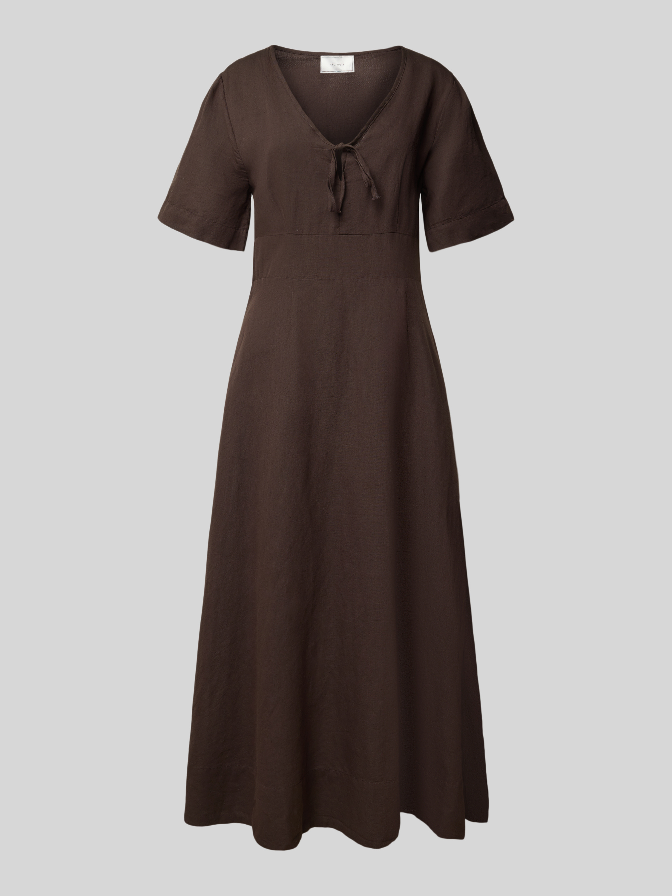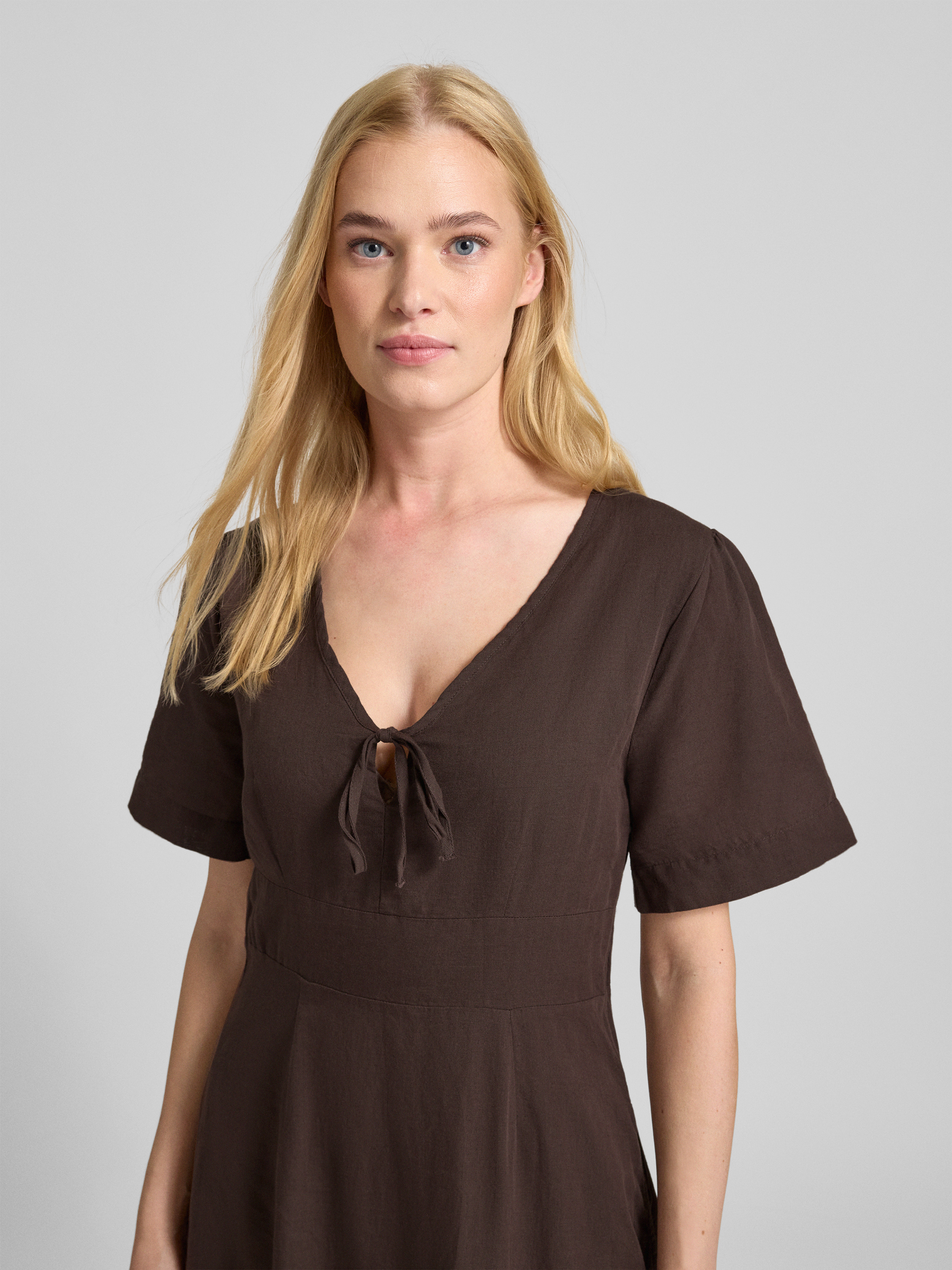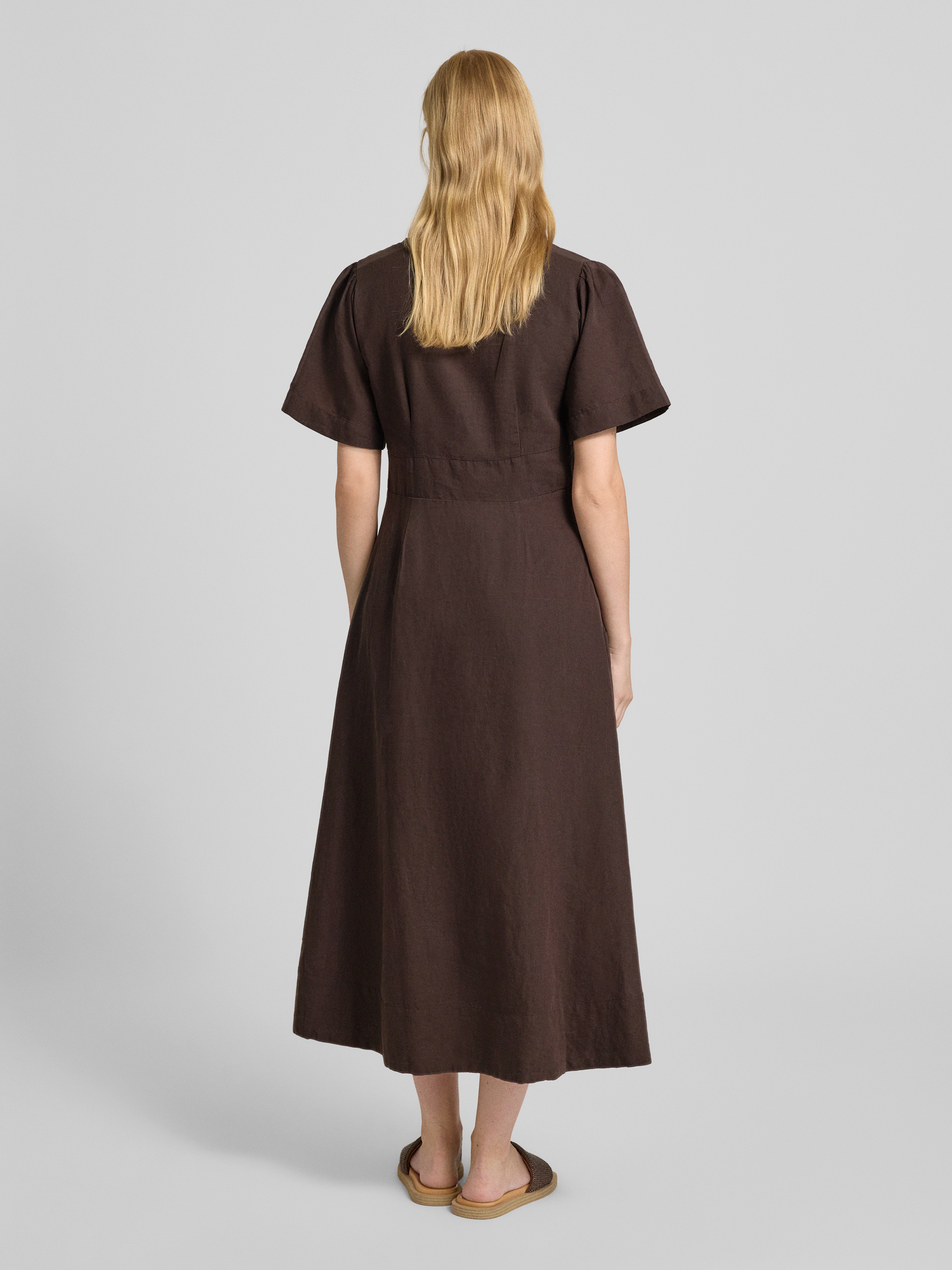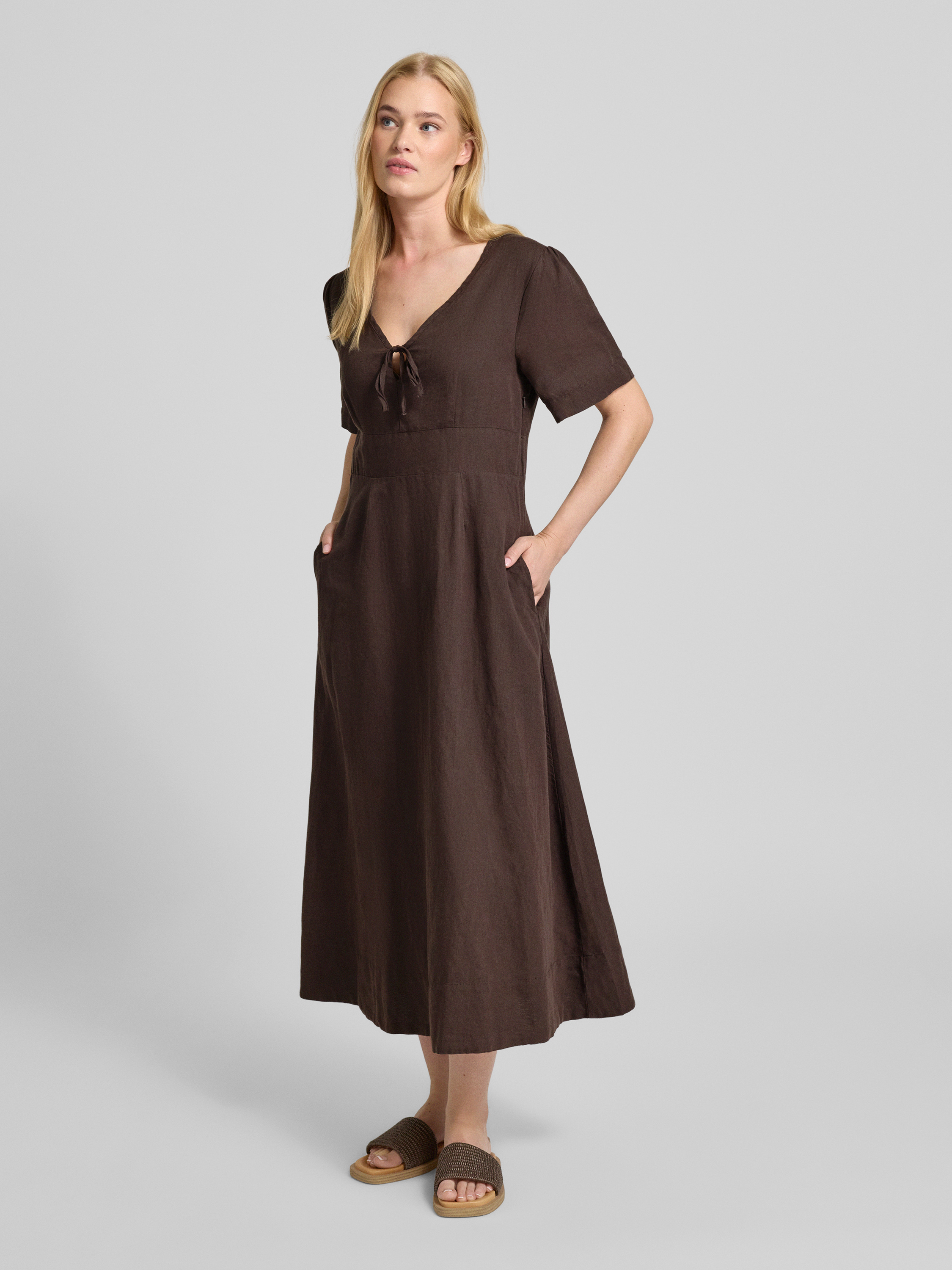 Sukienka lniana z rękawem o dł. 1/2 model ‘Ilsie’ - ciemnobrązowy