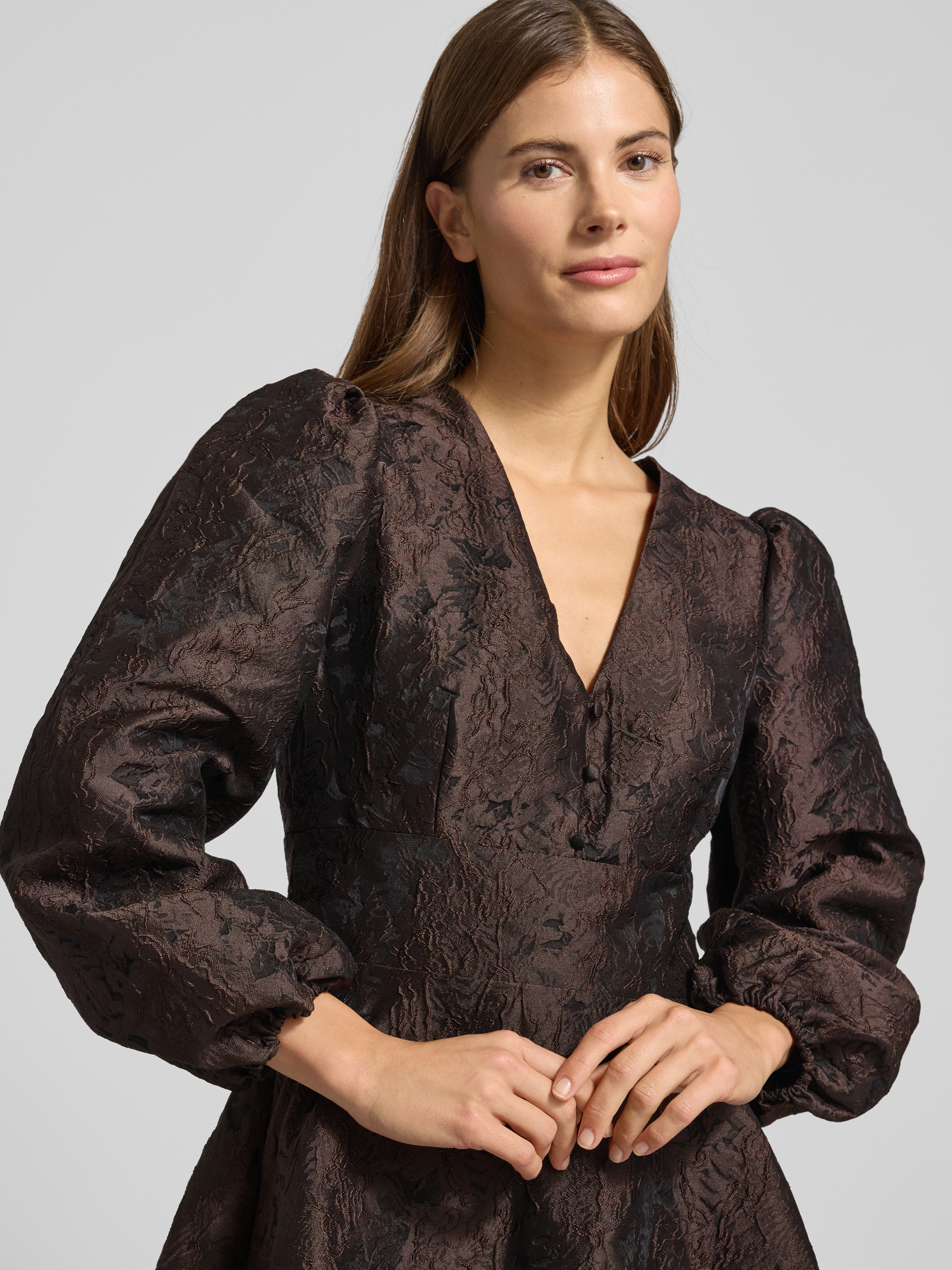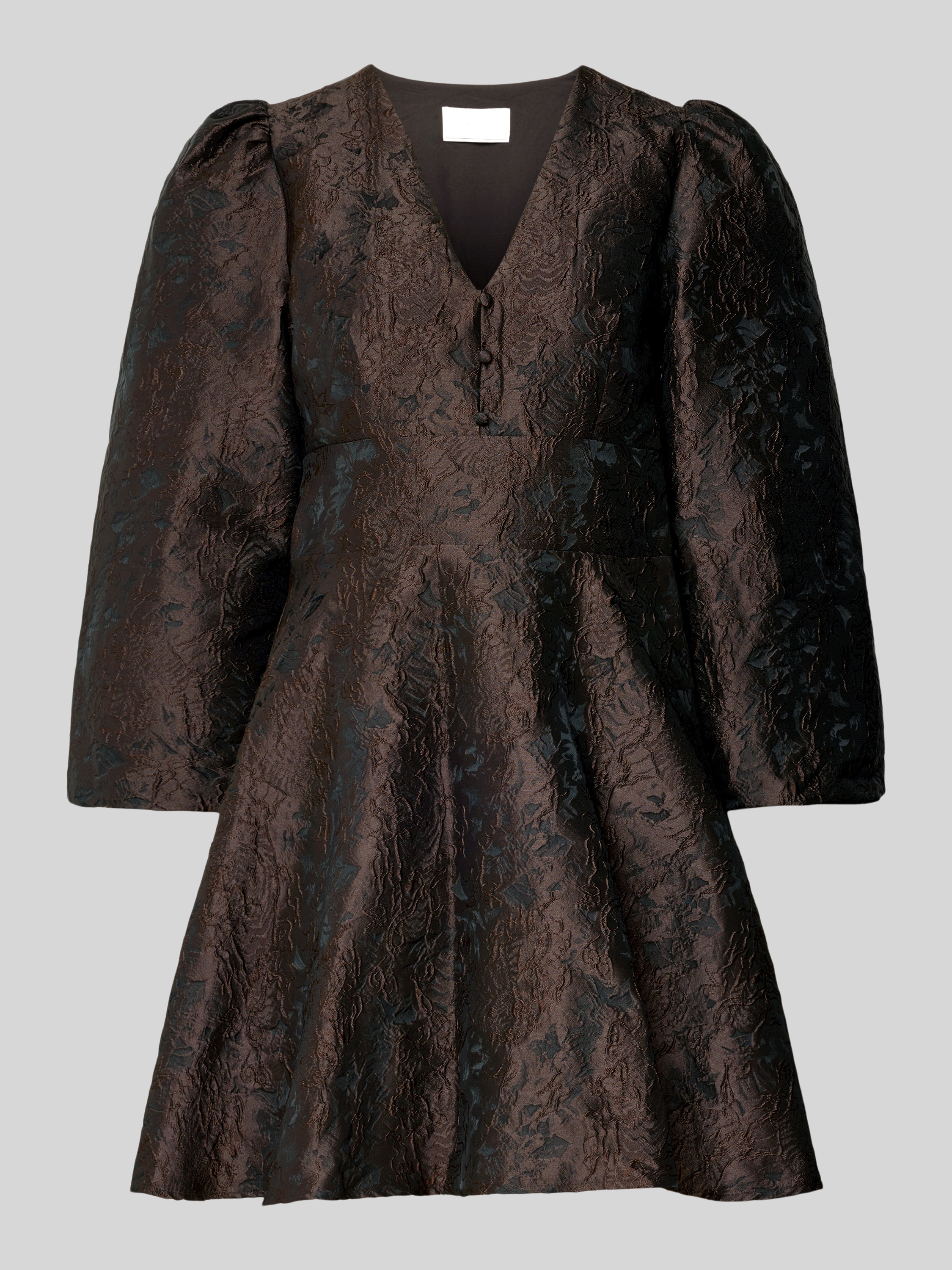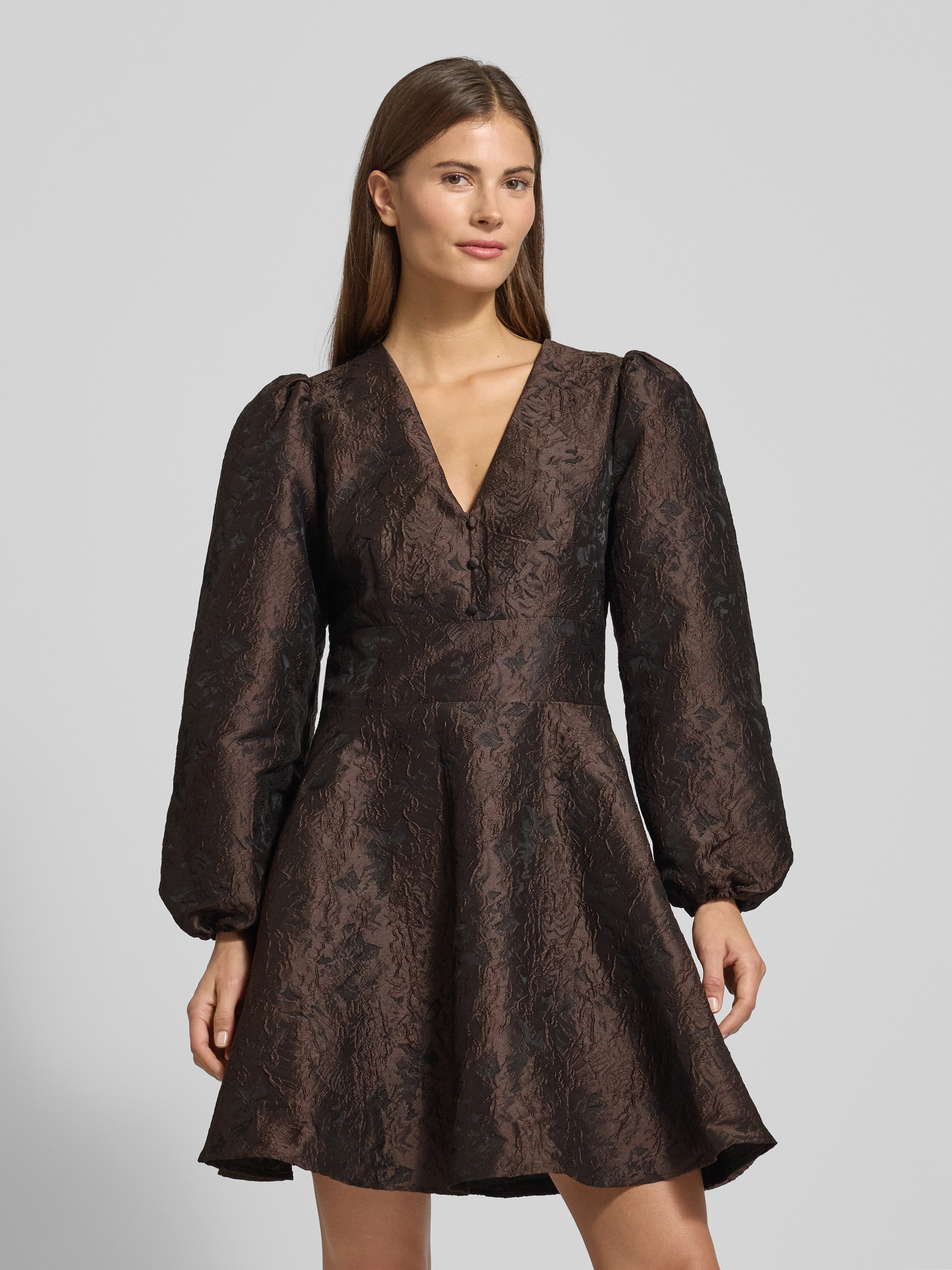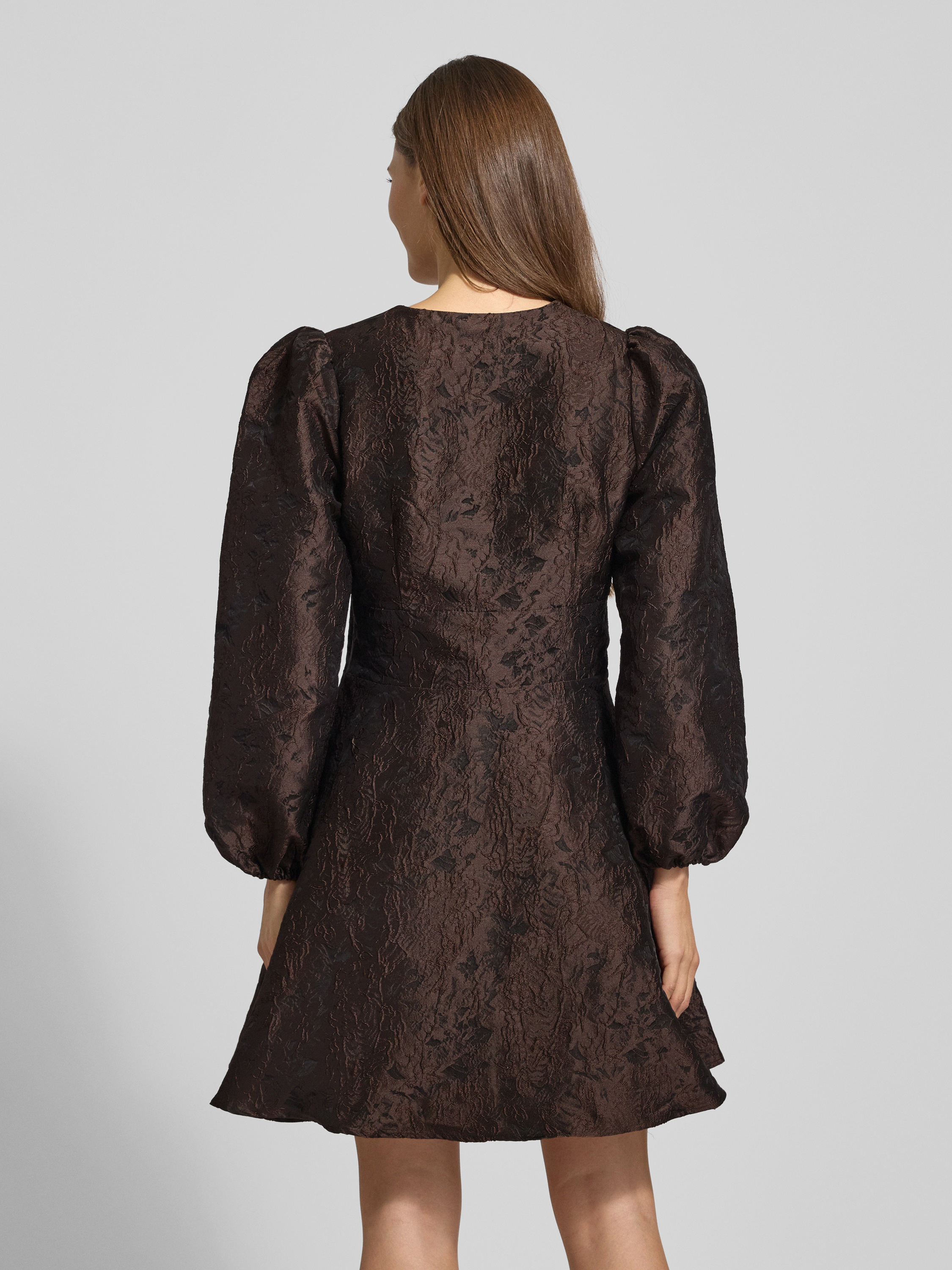 Sukienka mini z kwiatowym haftem na całej powierzchni model ‘Milliy’ - ciemnobrązowy