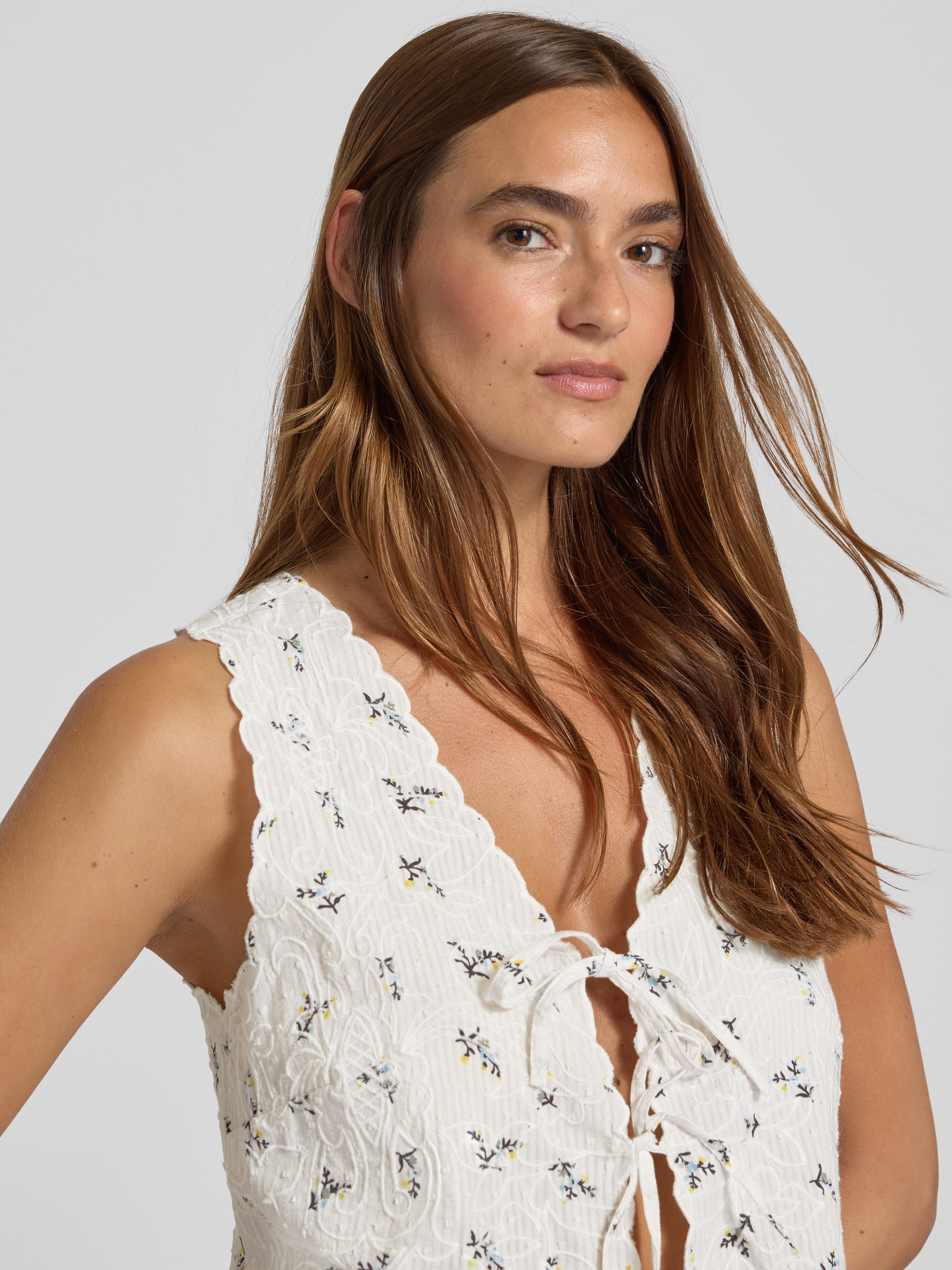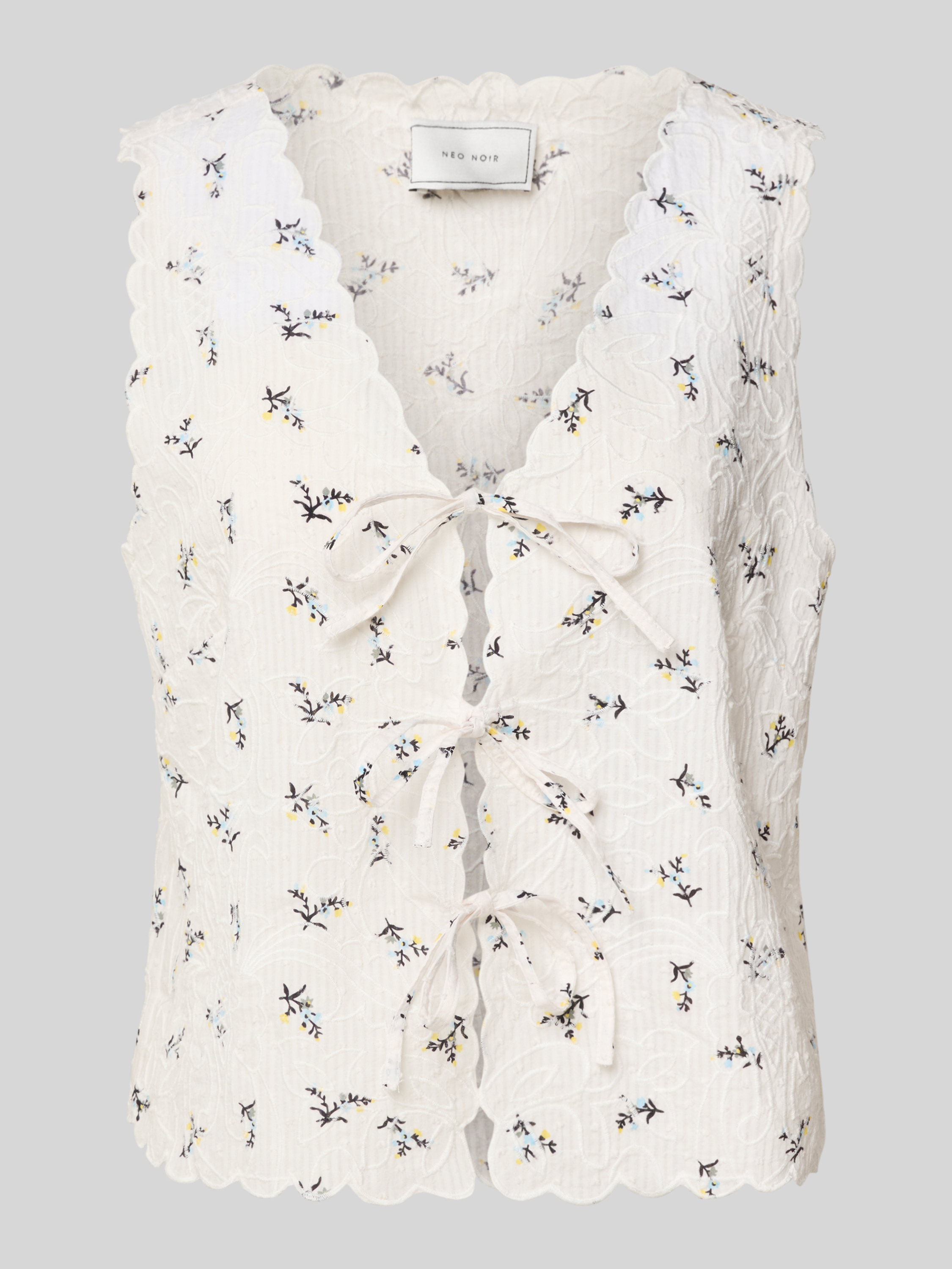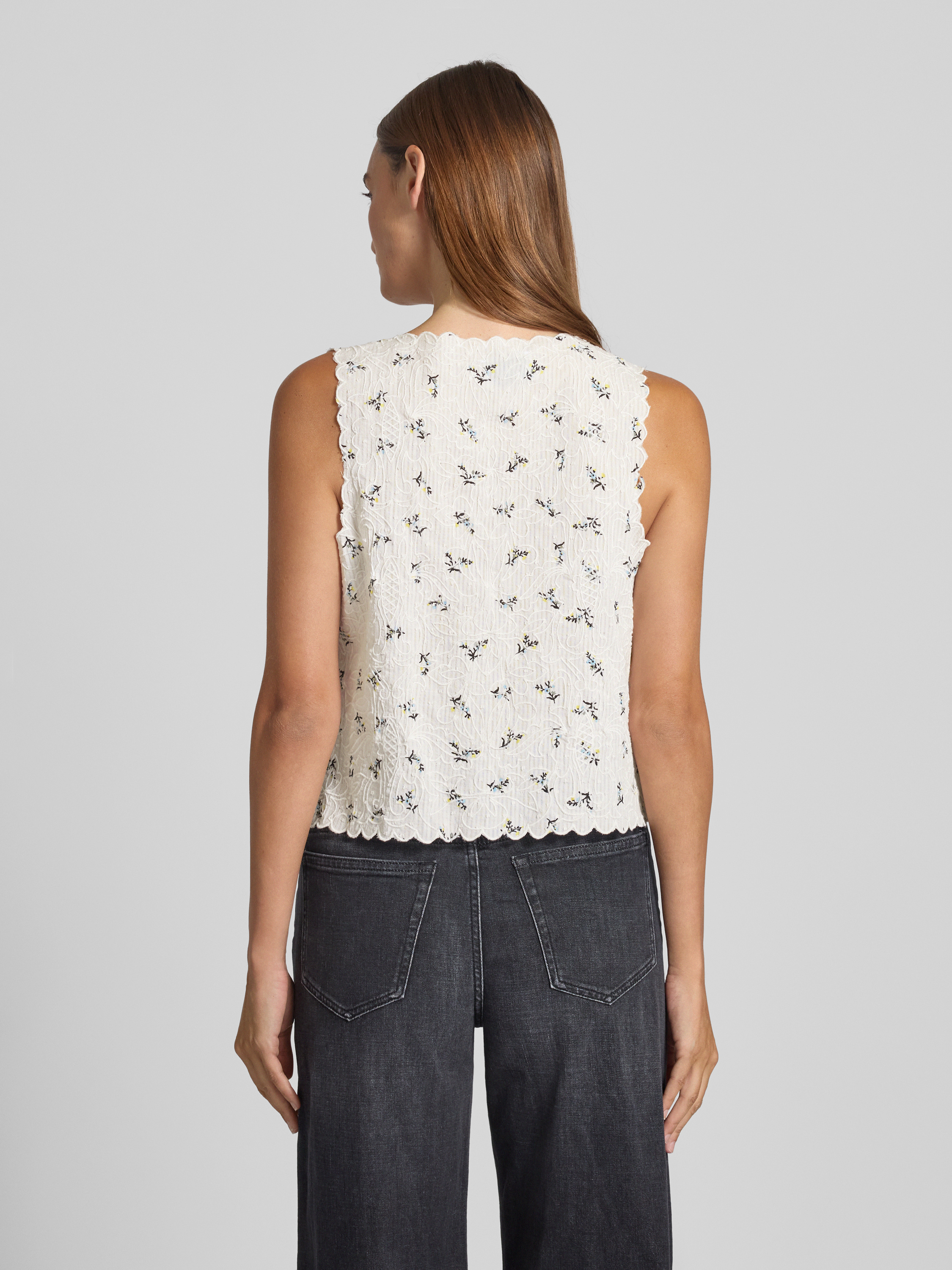 Top bluzkowy o kroju slim fit z koronką szydełkową model ‘Bibi’ - złamany biały