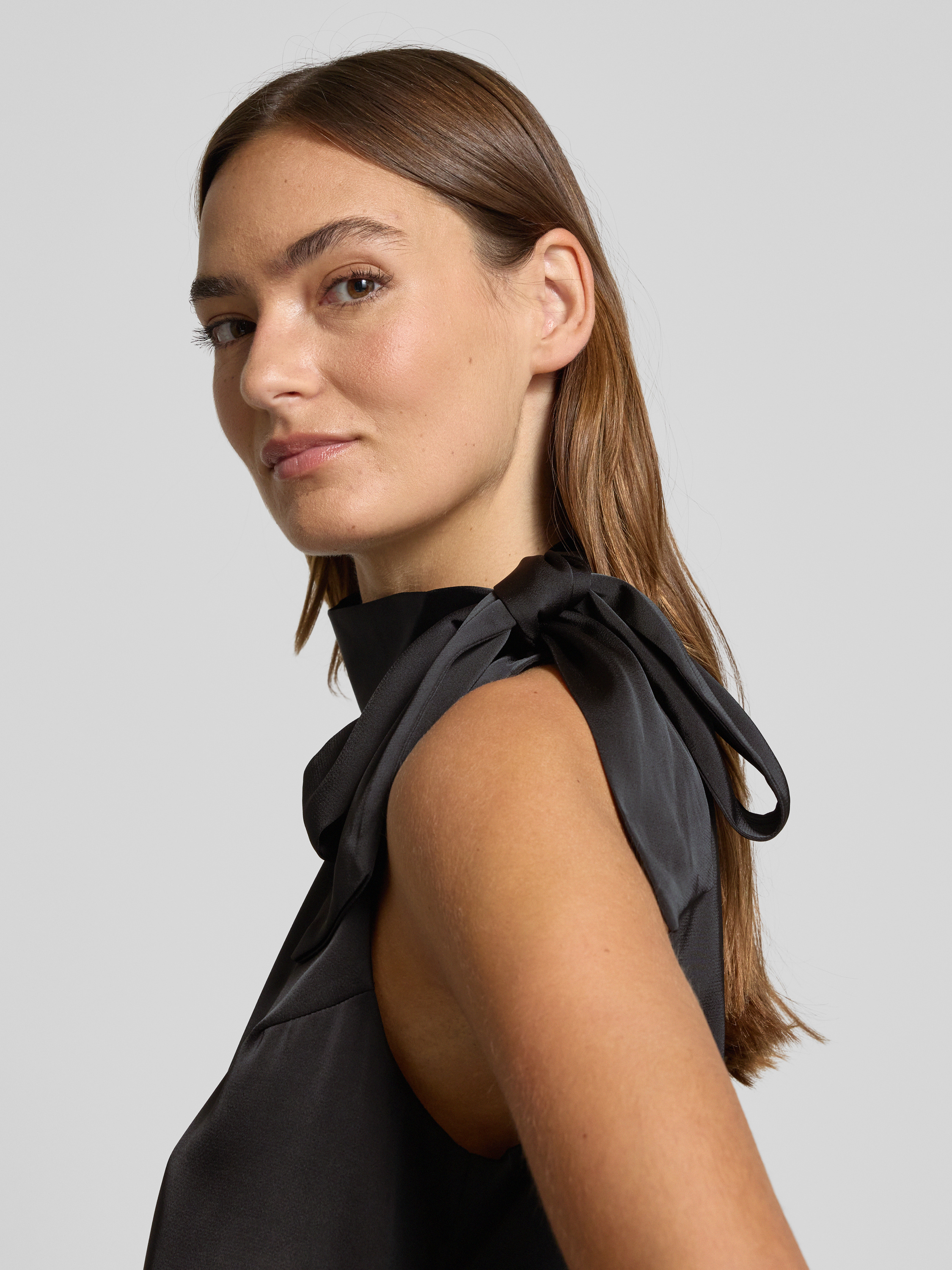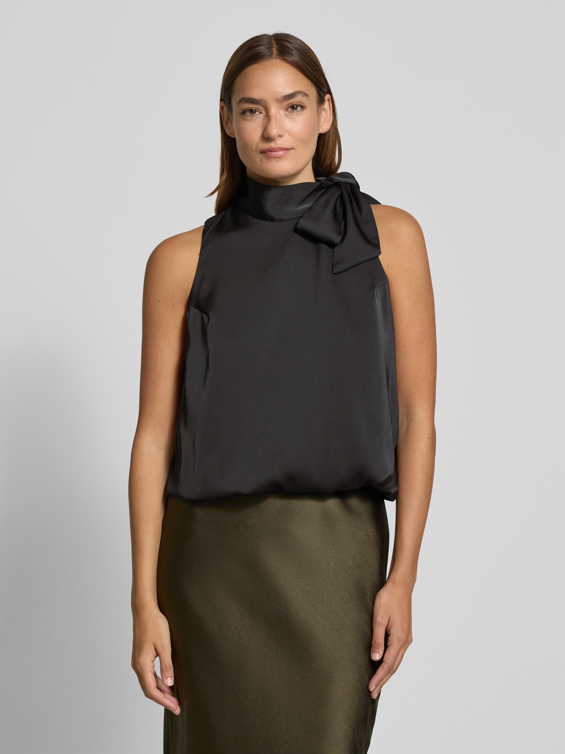 Top bluzkowy z satyny model ‘Veda’ - czarny