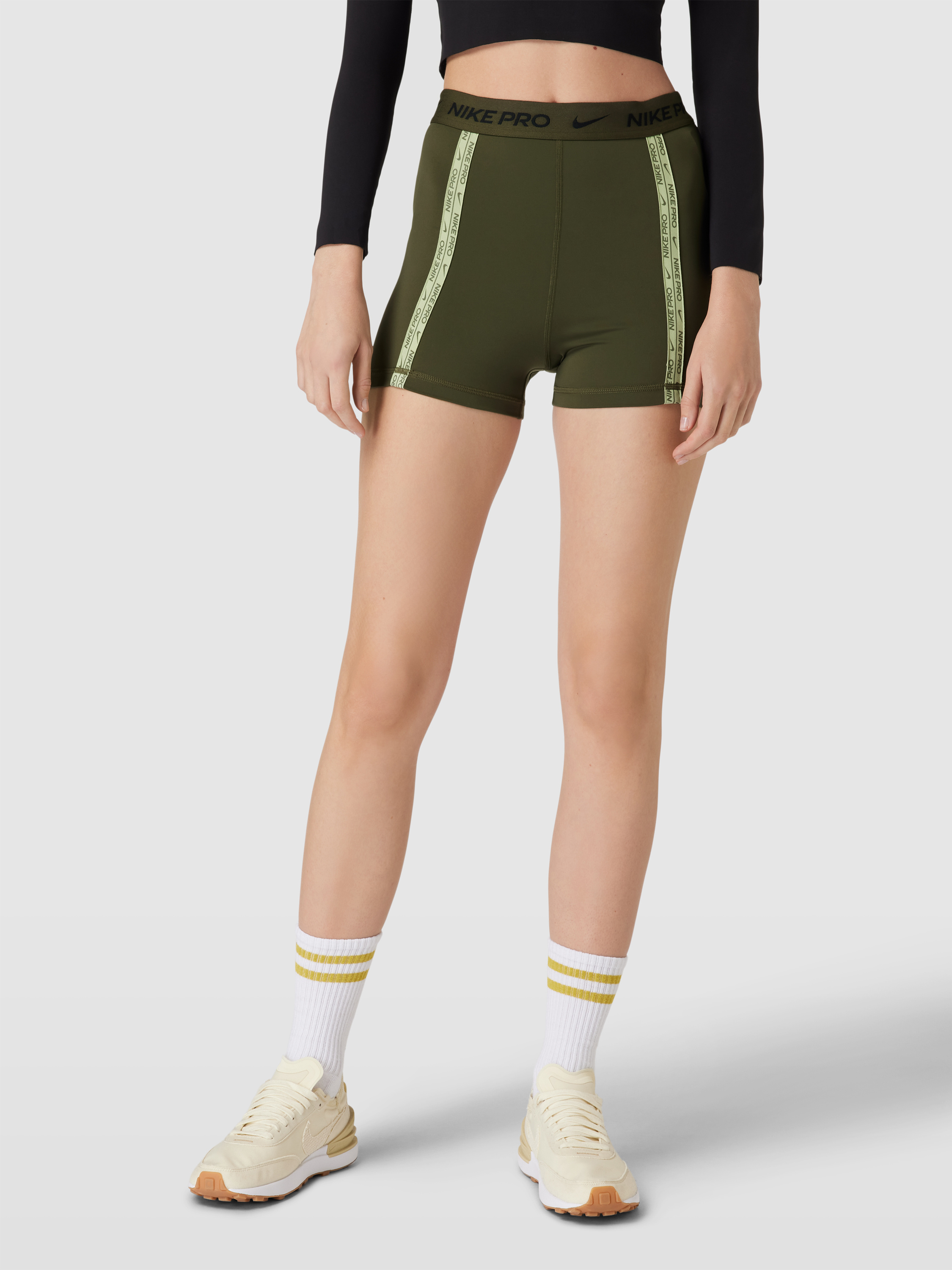 Szorty z paskami w logo w kontrastowym kolorze - oliwkowy