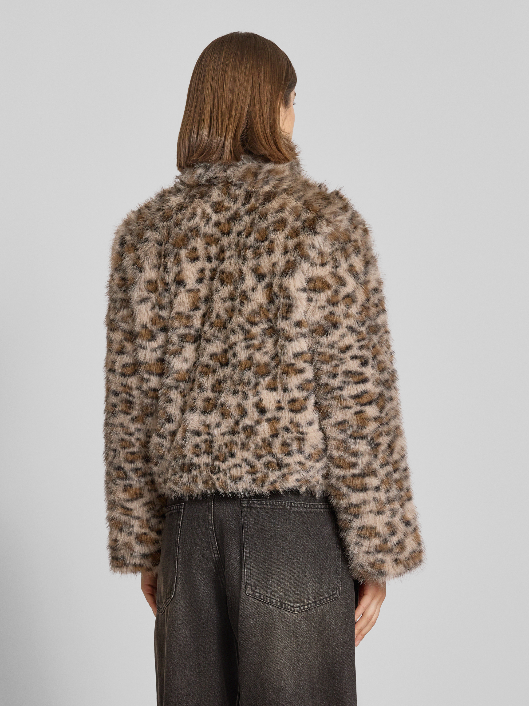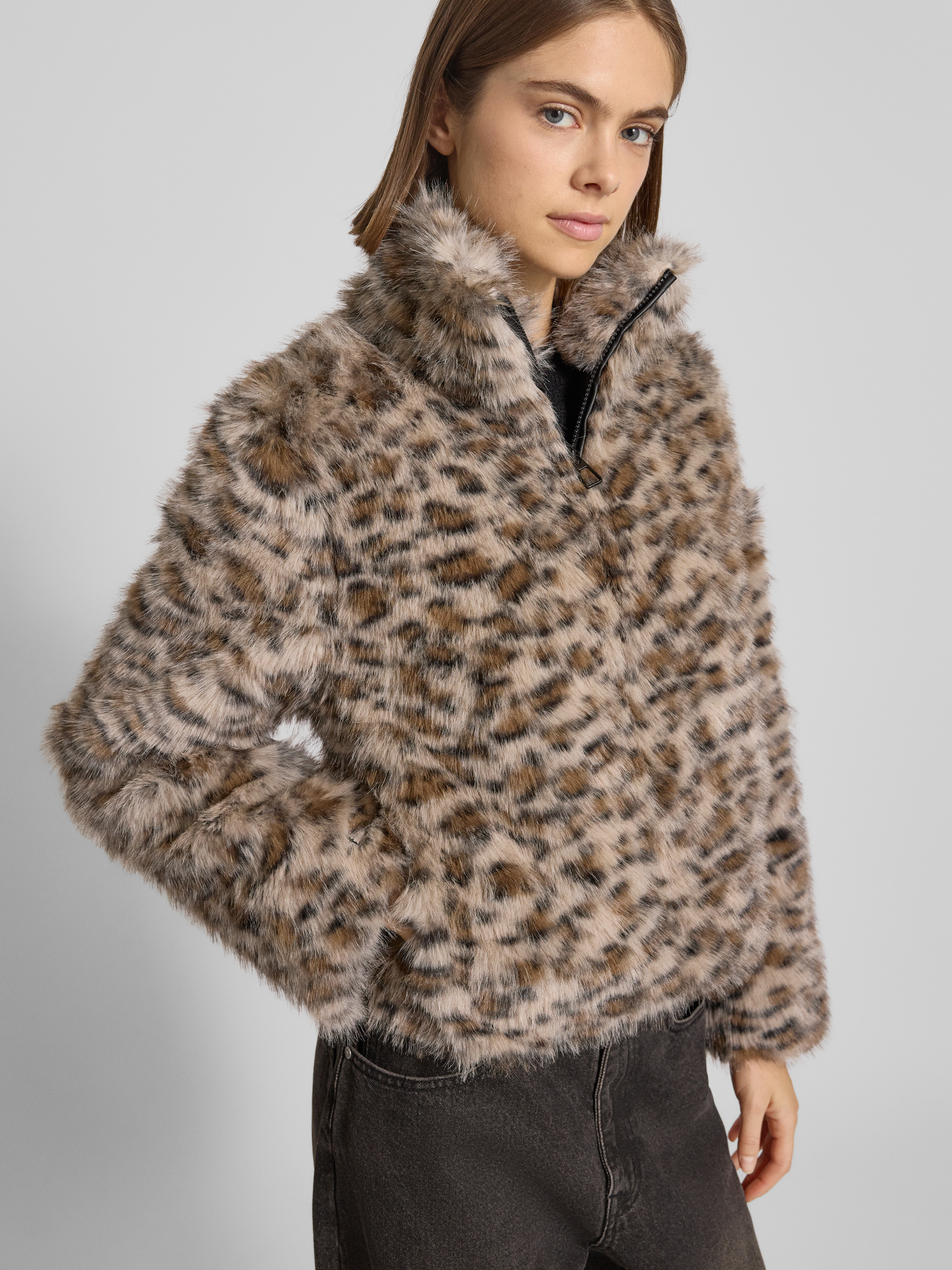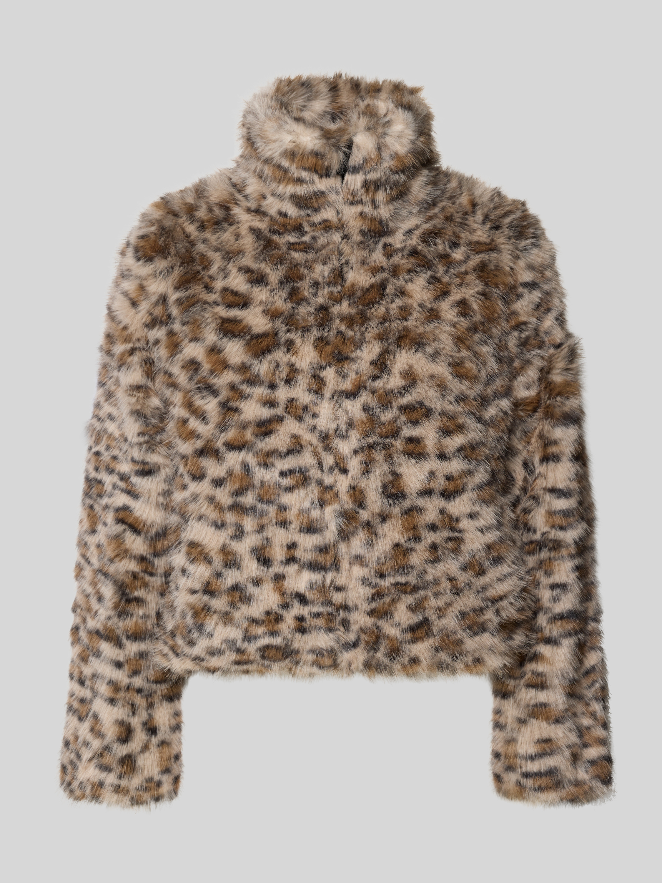 Kurtka ze sztucznego futra model ‘JENNIFER’ - średniobrązowy melanż