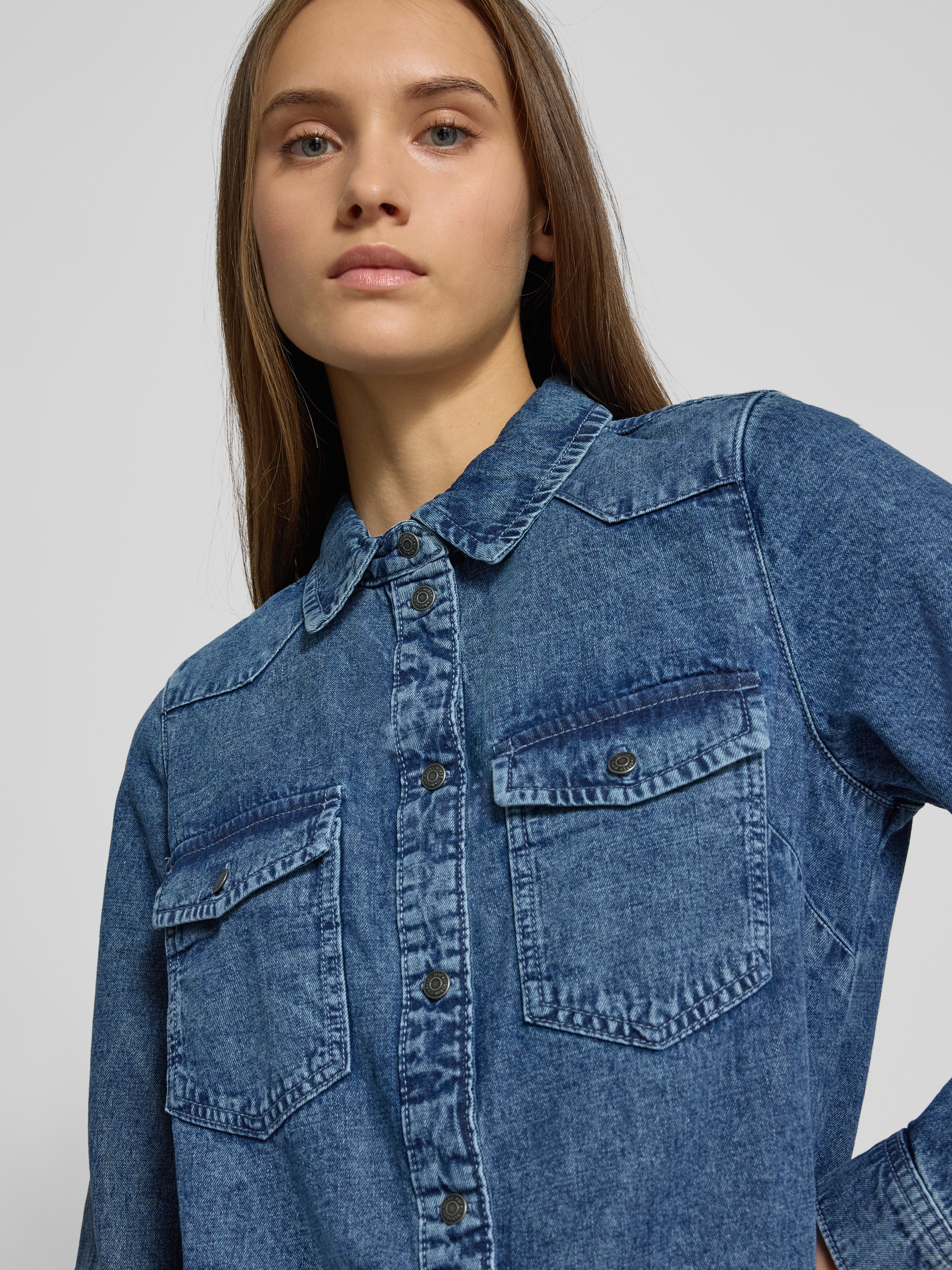 Sukienka jeansowa z kieszeniami na piersi model ‘NEW SIGNE’ - jeansowy niebieski