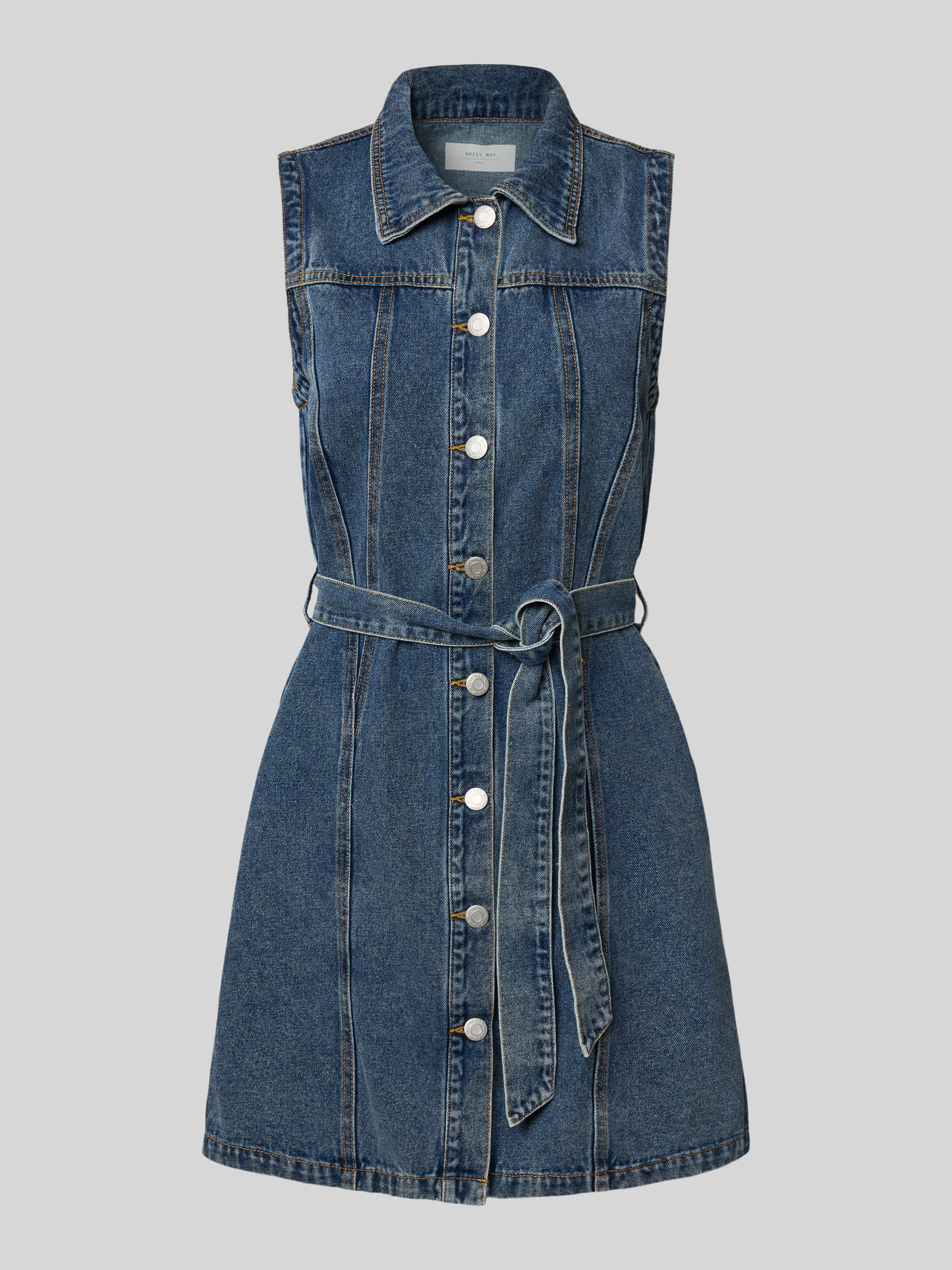 Sukienka jeansowa z wiązanym paskiem model ‘ALVI’ - jeansowy niebieski