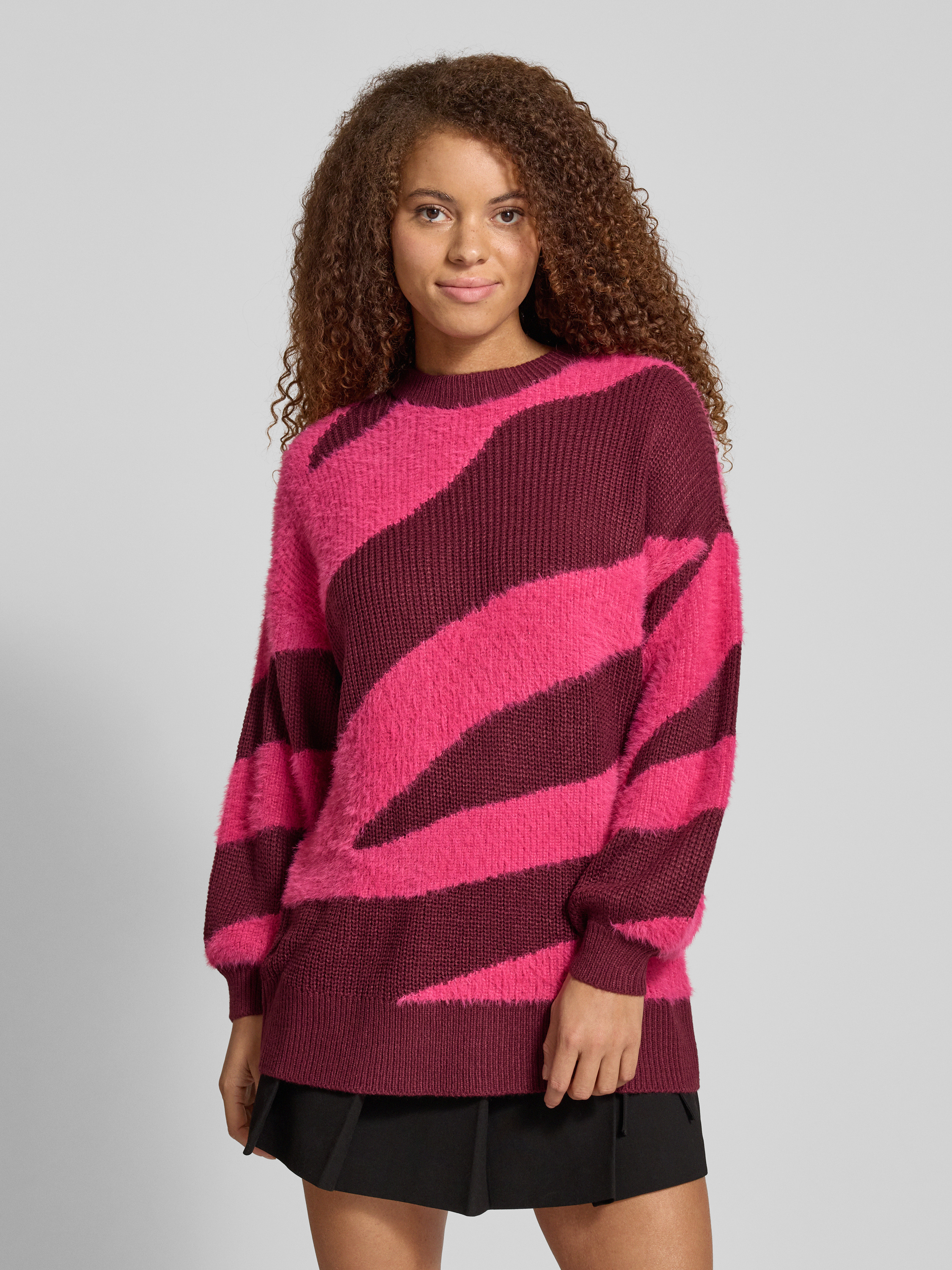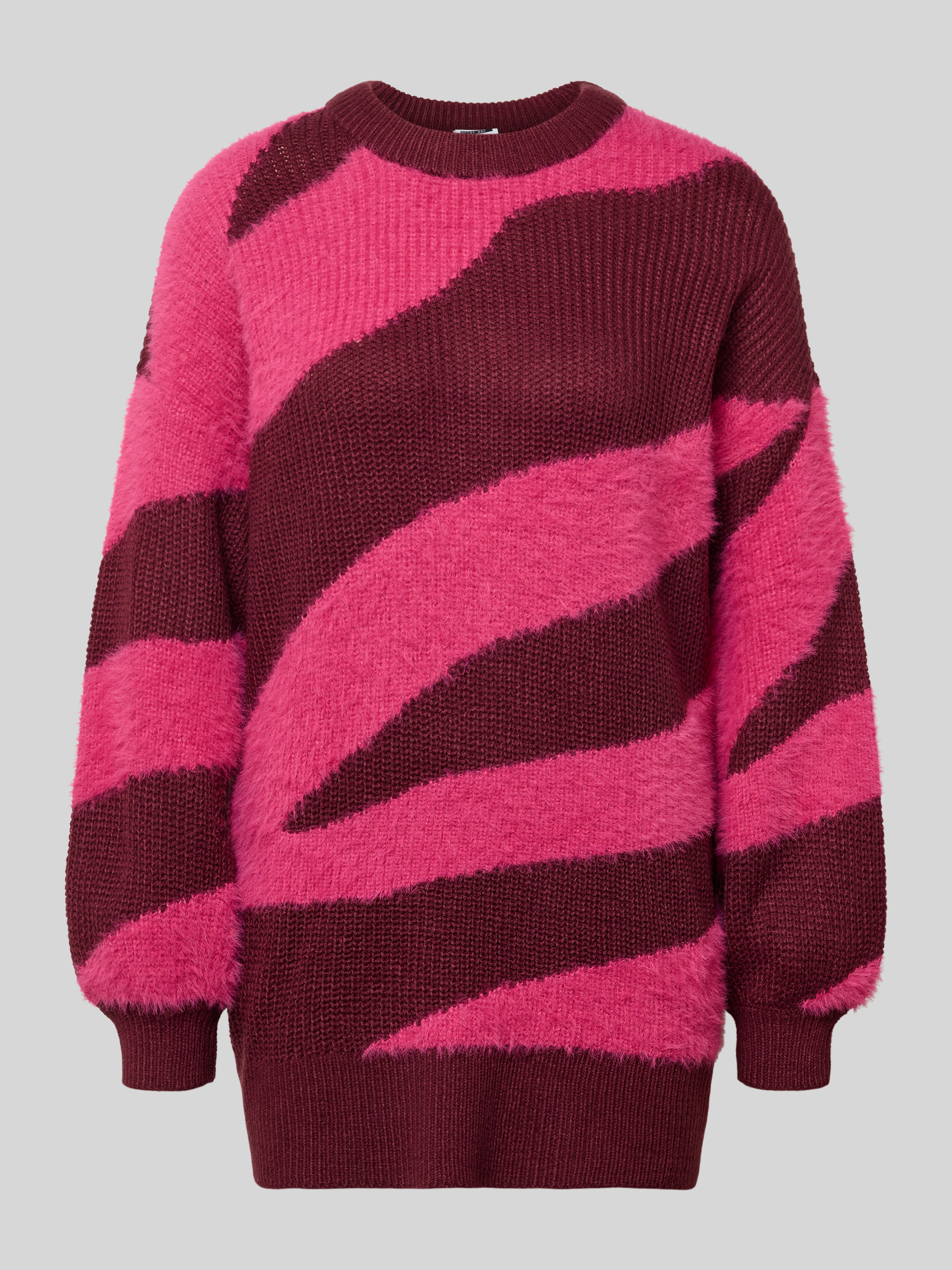 Sweter z dzianiny o luźnym kroju z okrągłym dekoltem model ‘BLAIR’ - mocnoróżowy