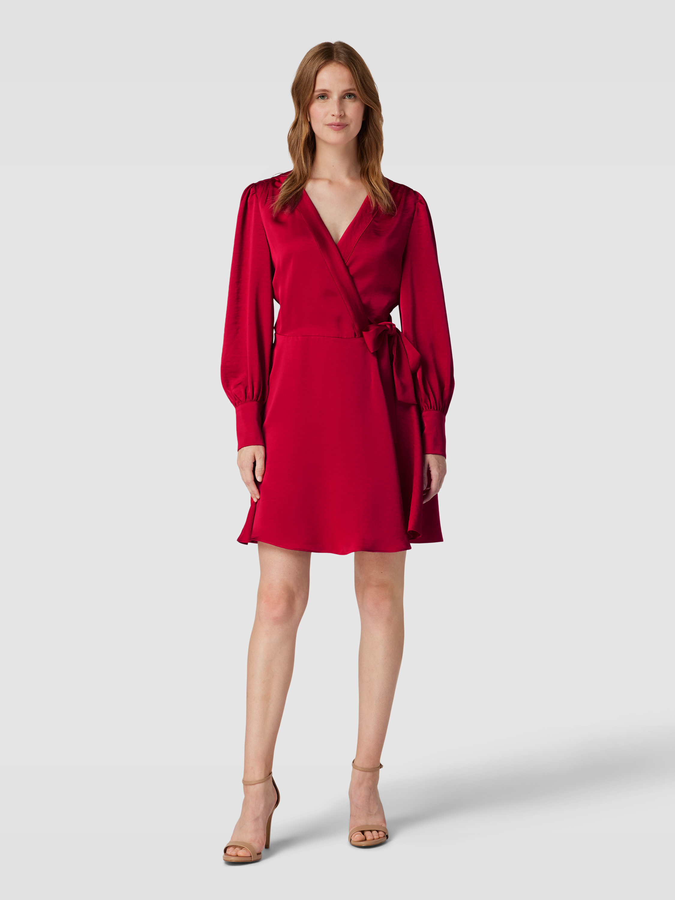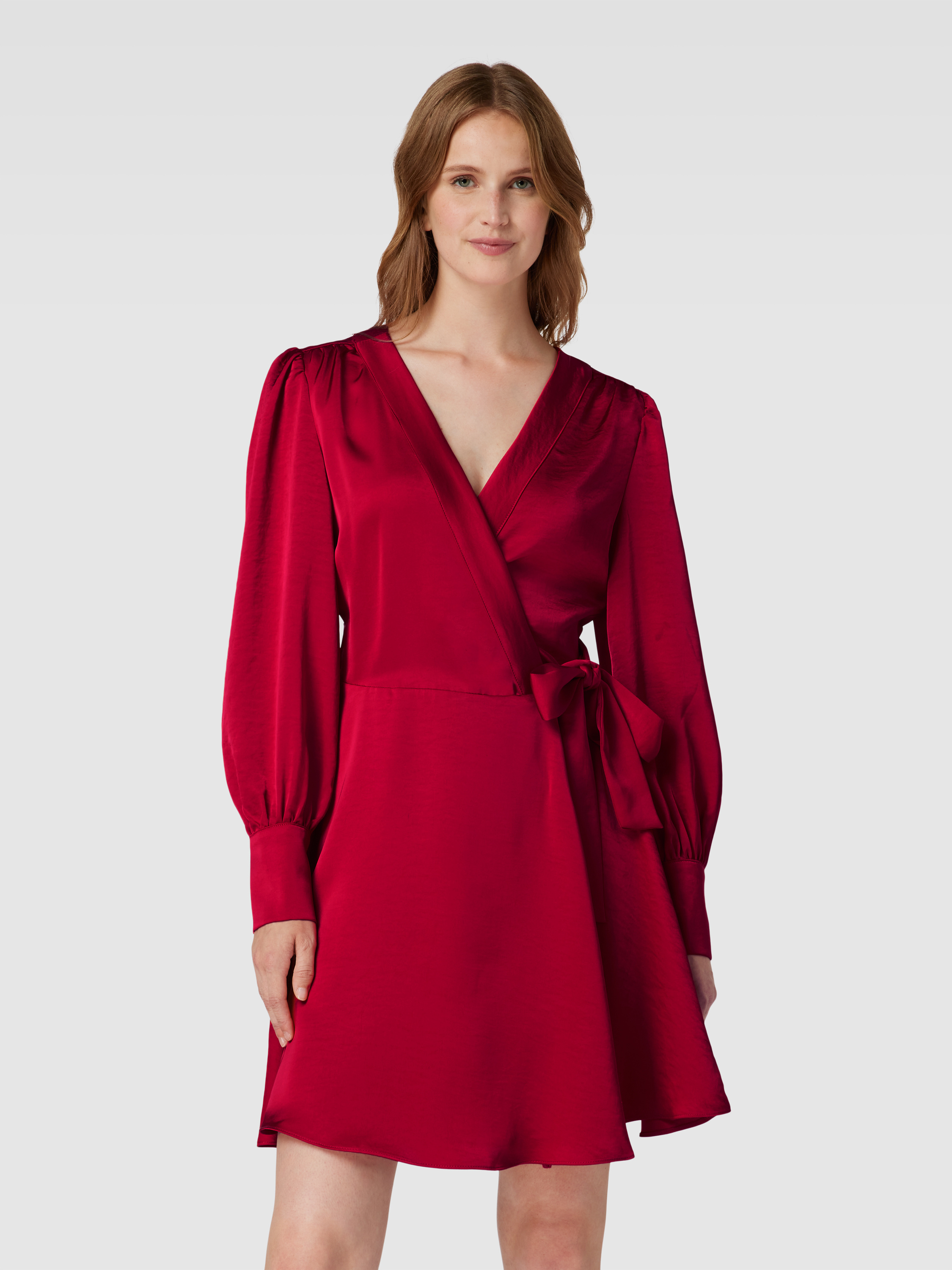 Sukienka kopertowa z bufiastymi rękawami — NovaLanaLove x P&C* - wiśniowy