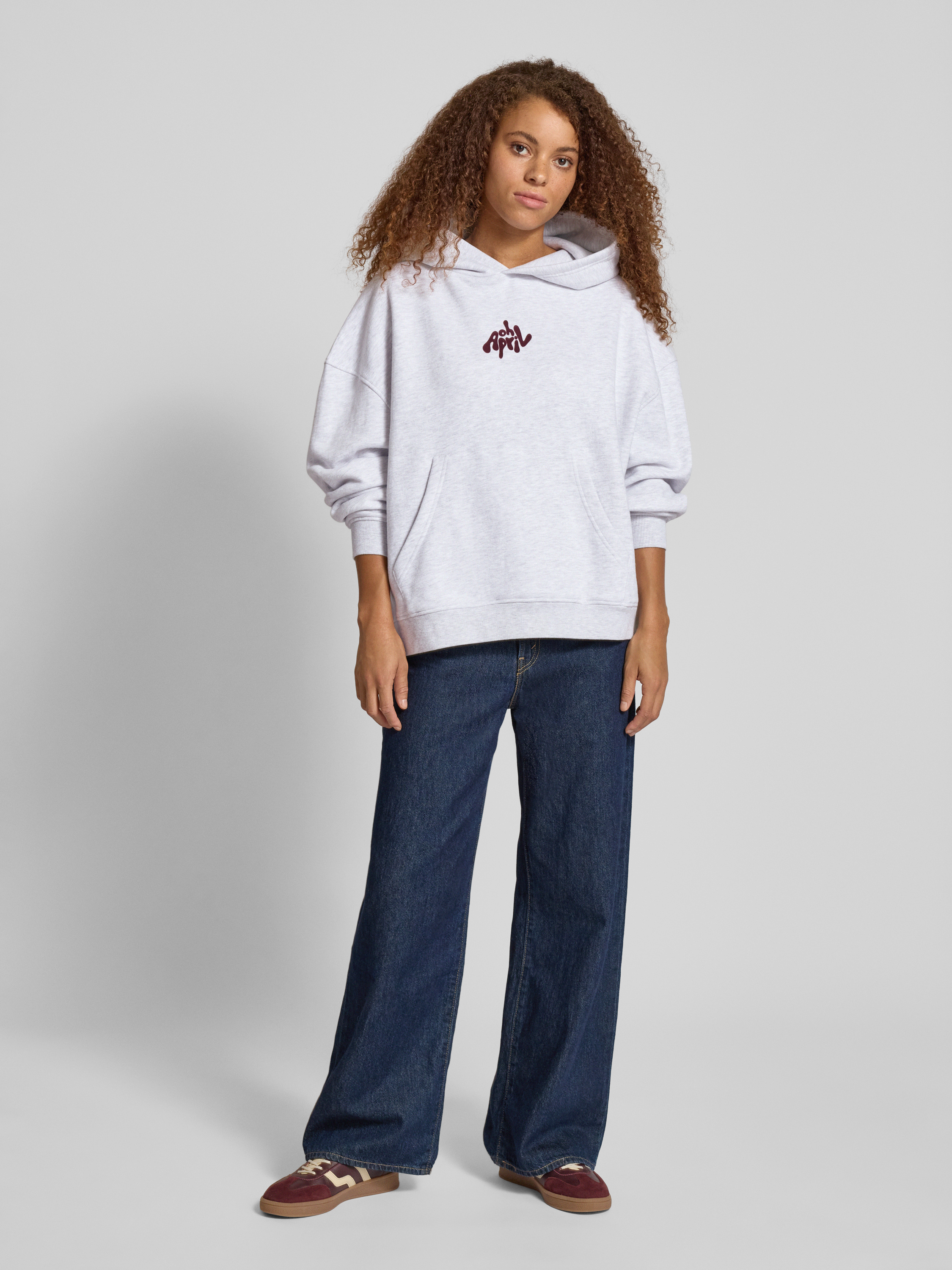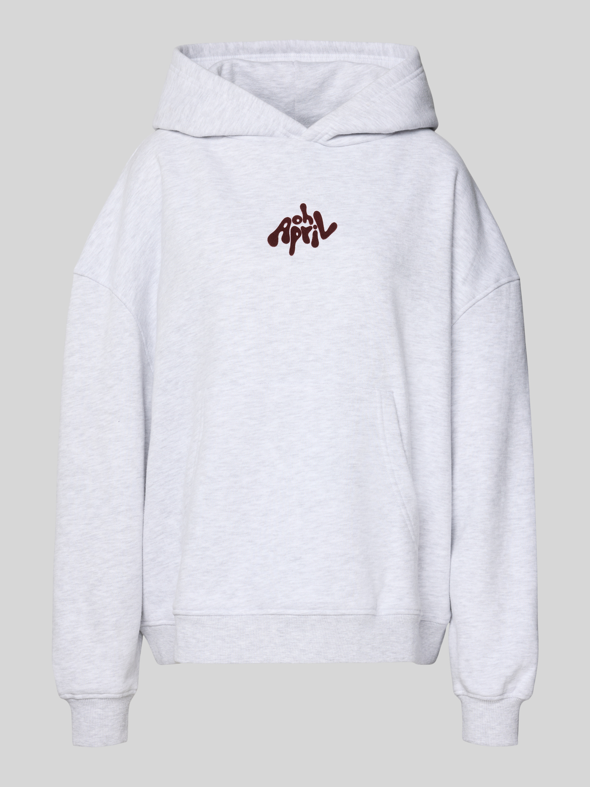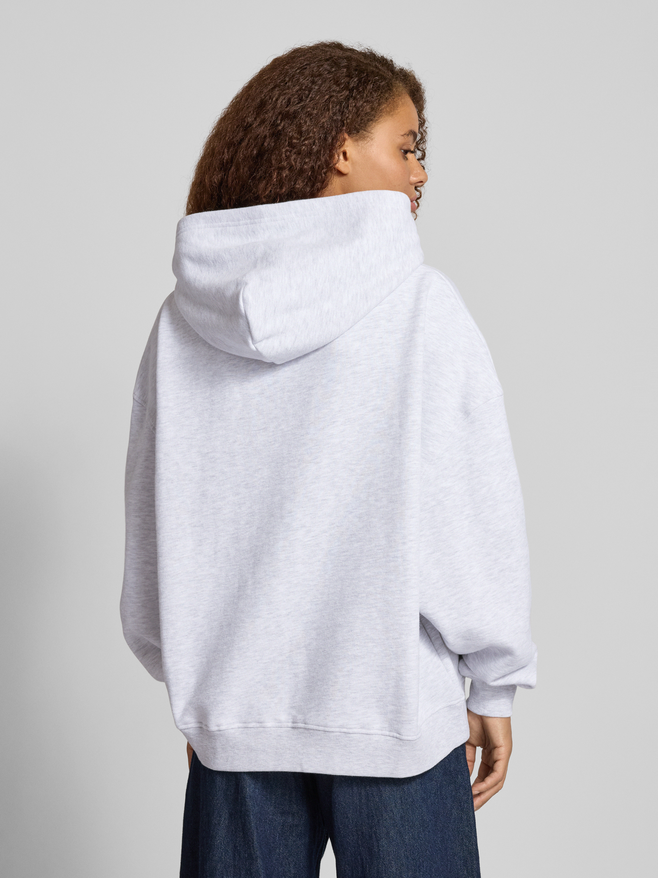 Bluza o kroju boyfriend z kapturem i kieszenią kangurką model ‘Fluffy’ - jasnoszary melanż