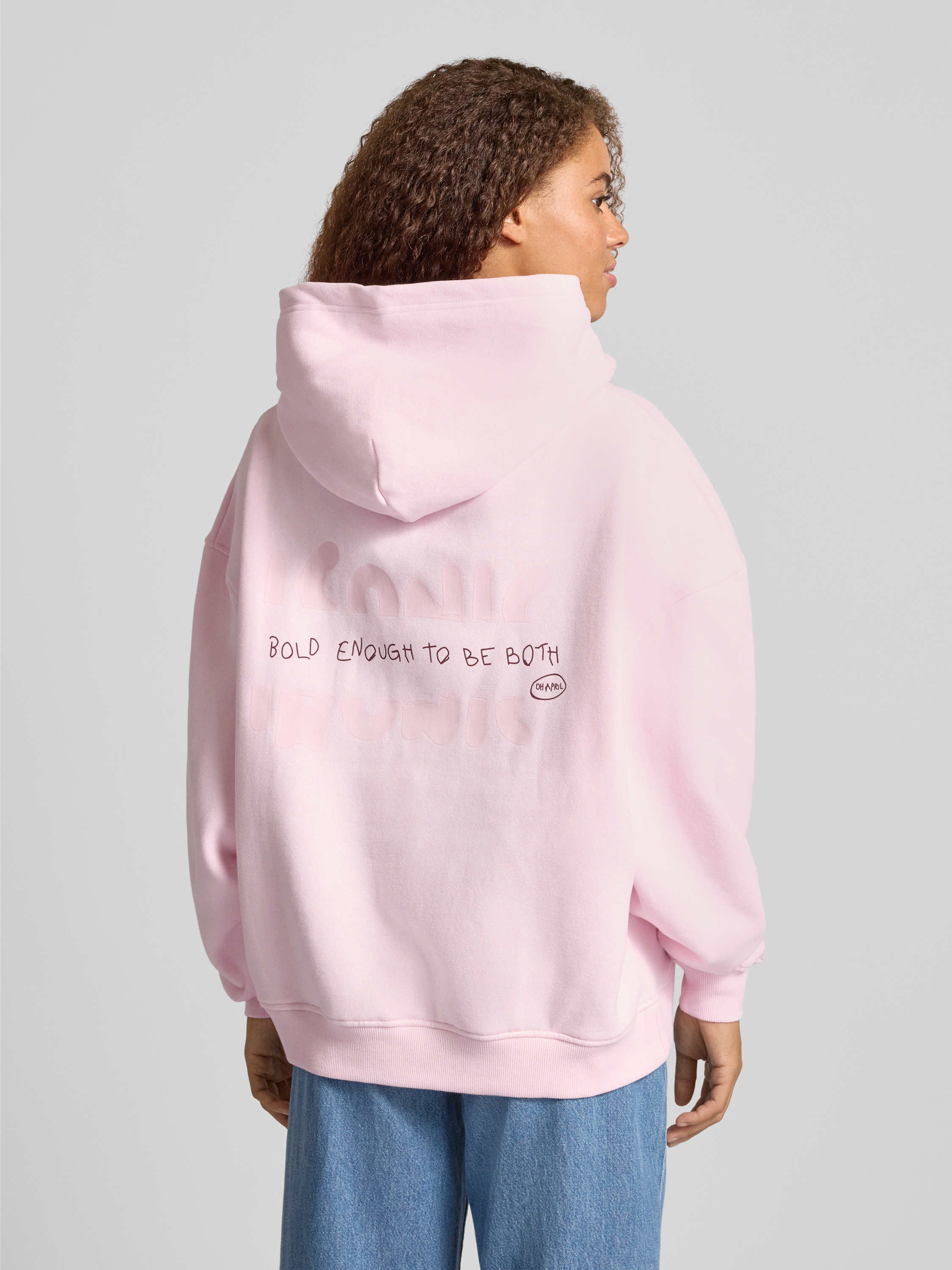 Bluza o kroju boyfriend z kapturem i kieszenią kangurką model ‘Iconic’ - mocnoróżowy
