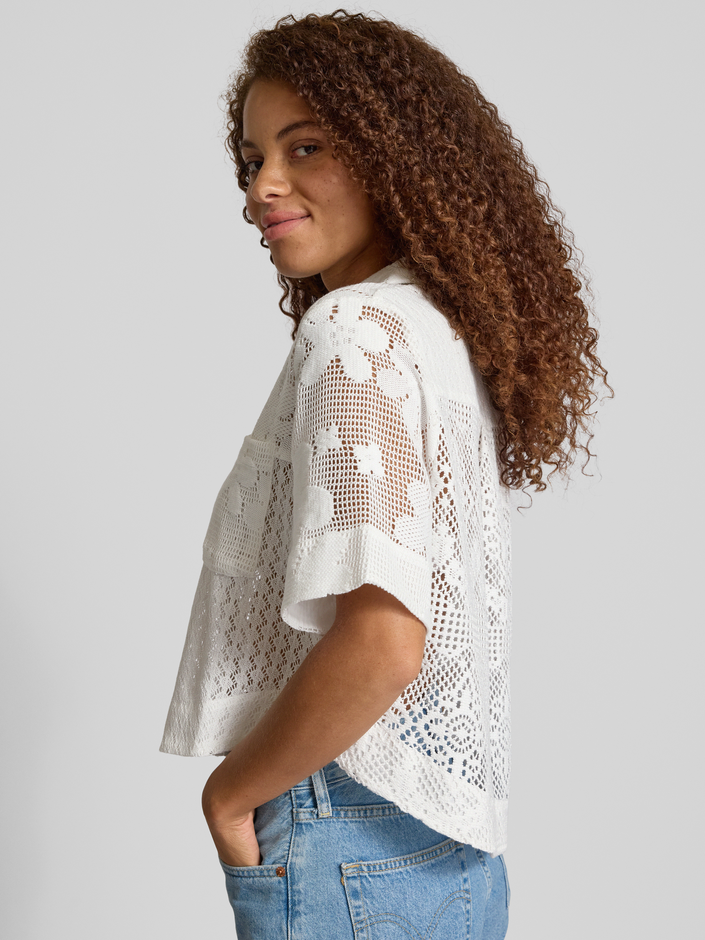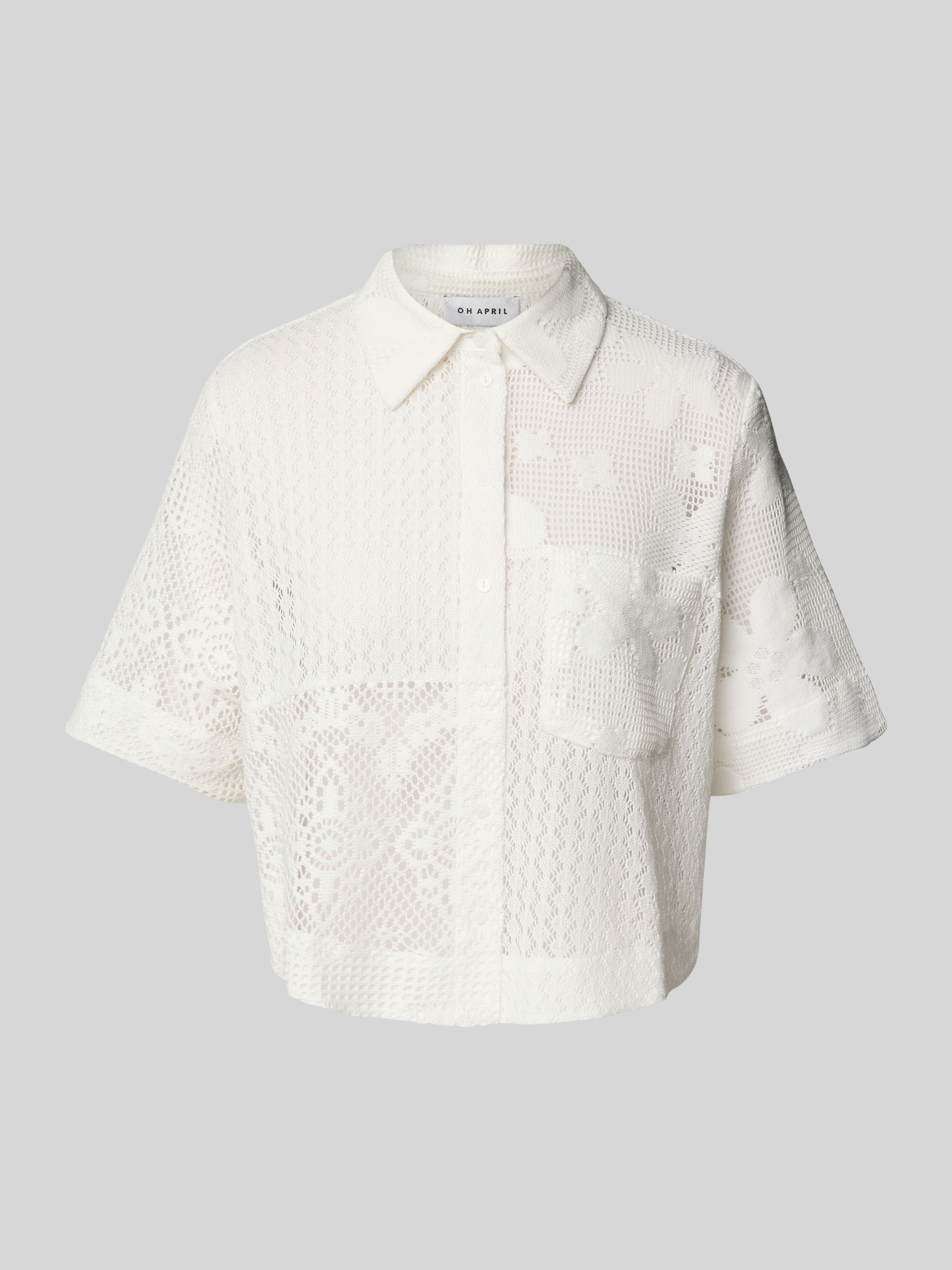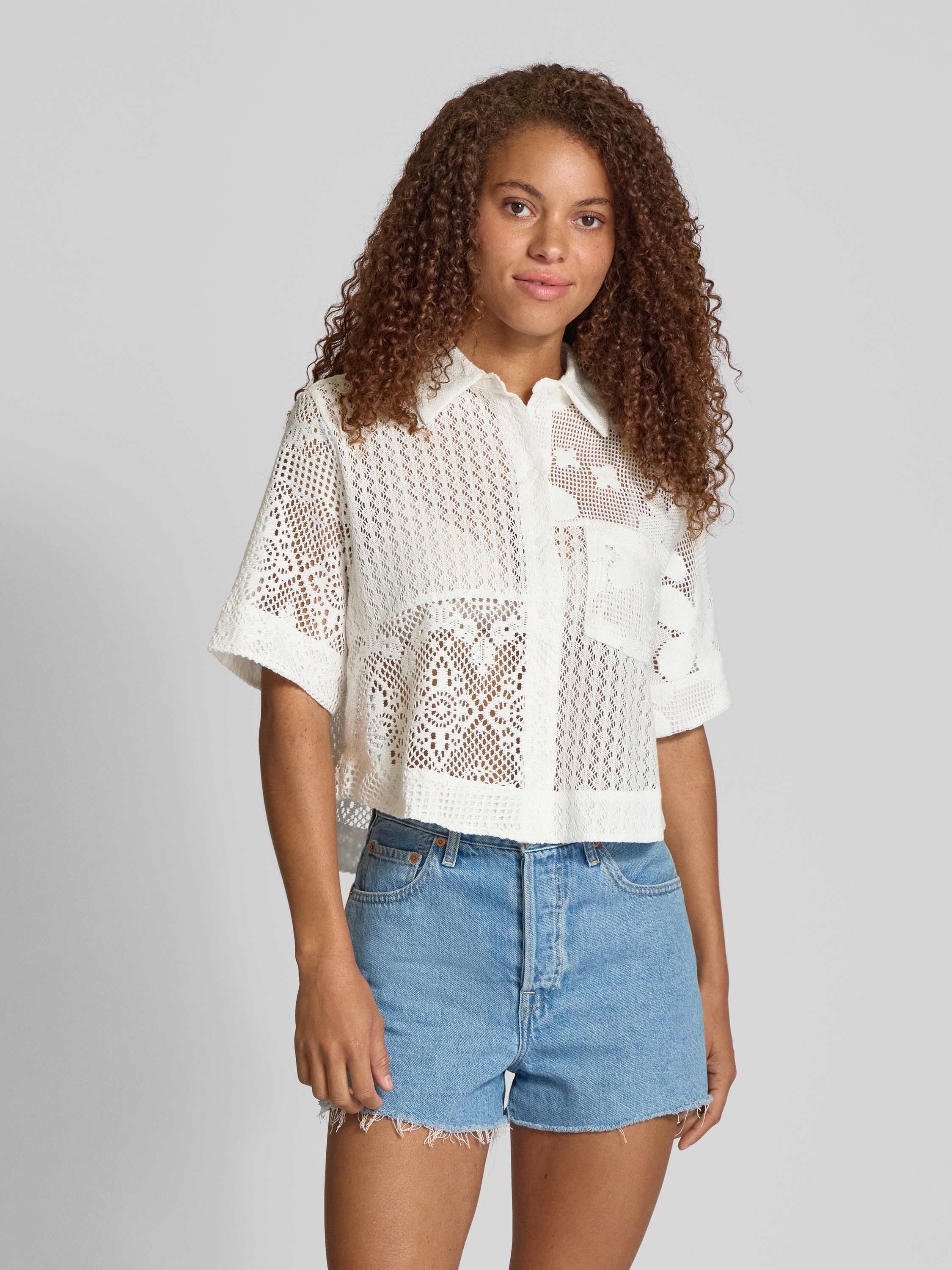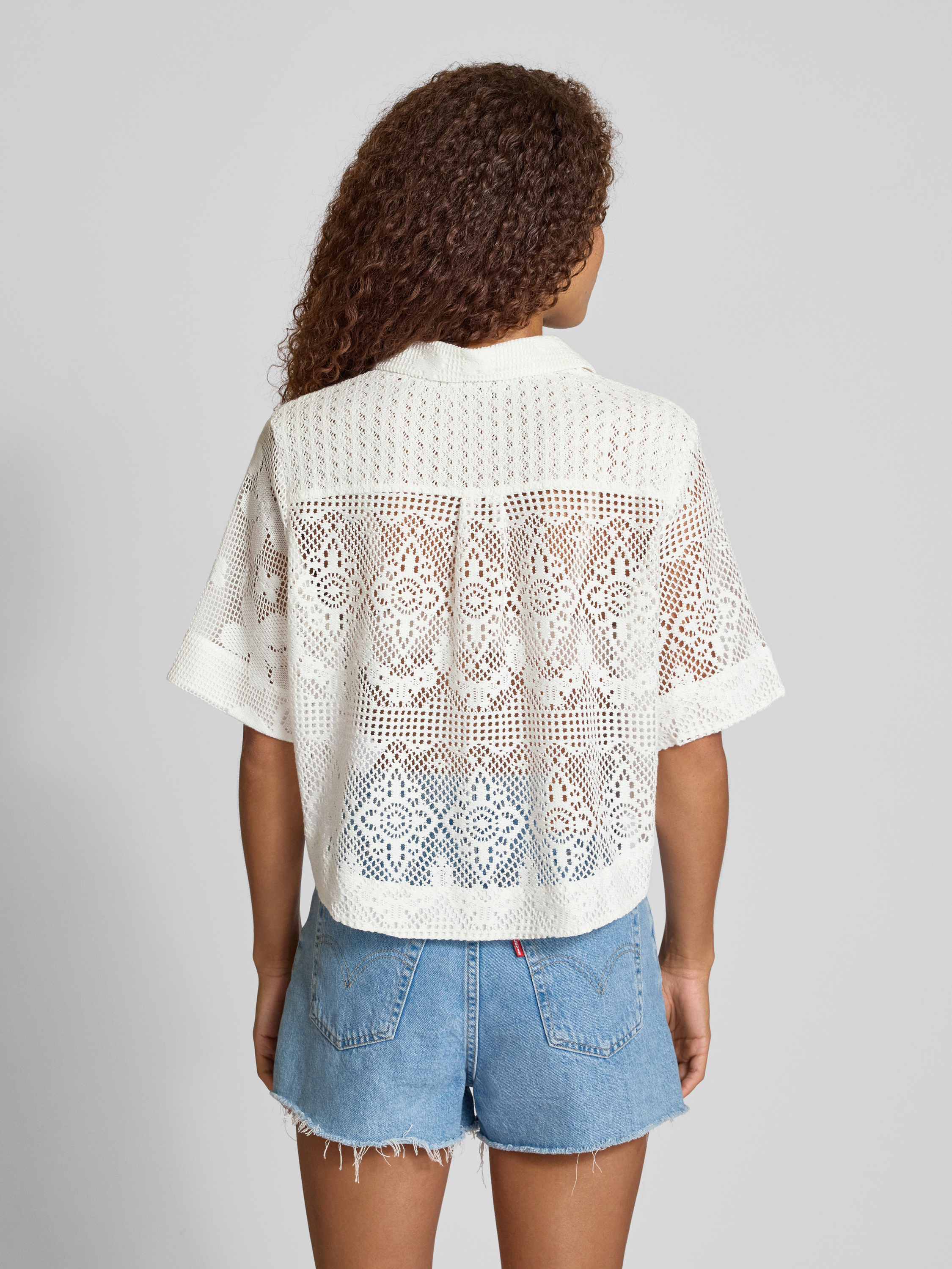 Bluzka o pudełkowym kroju z koronki szydełkowej model ‘Cempedak’ - złamany biały
