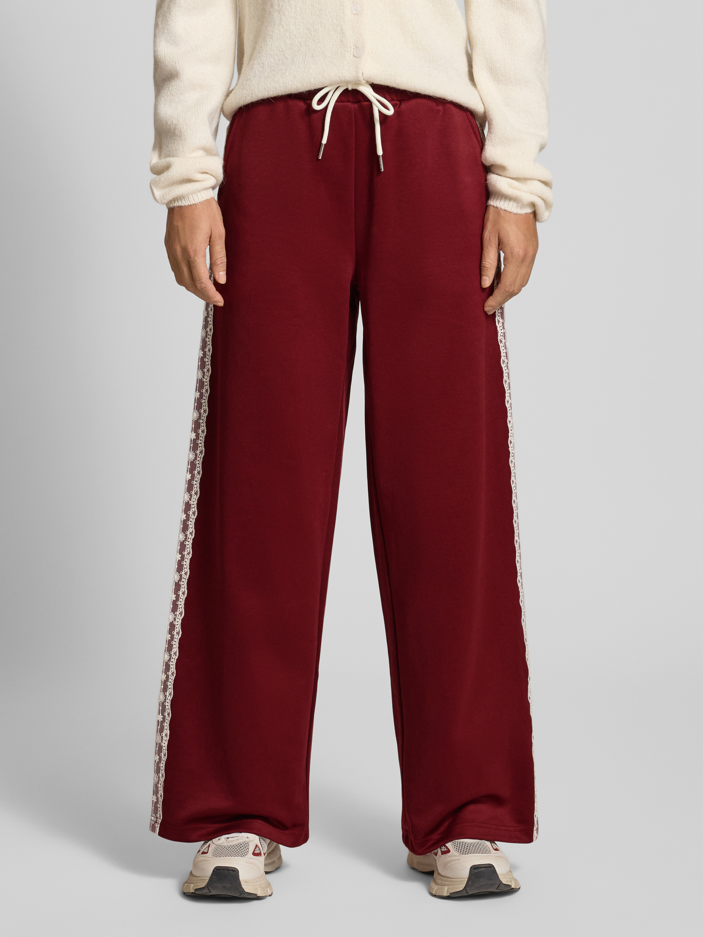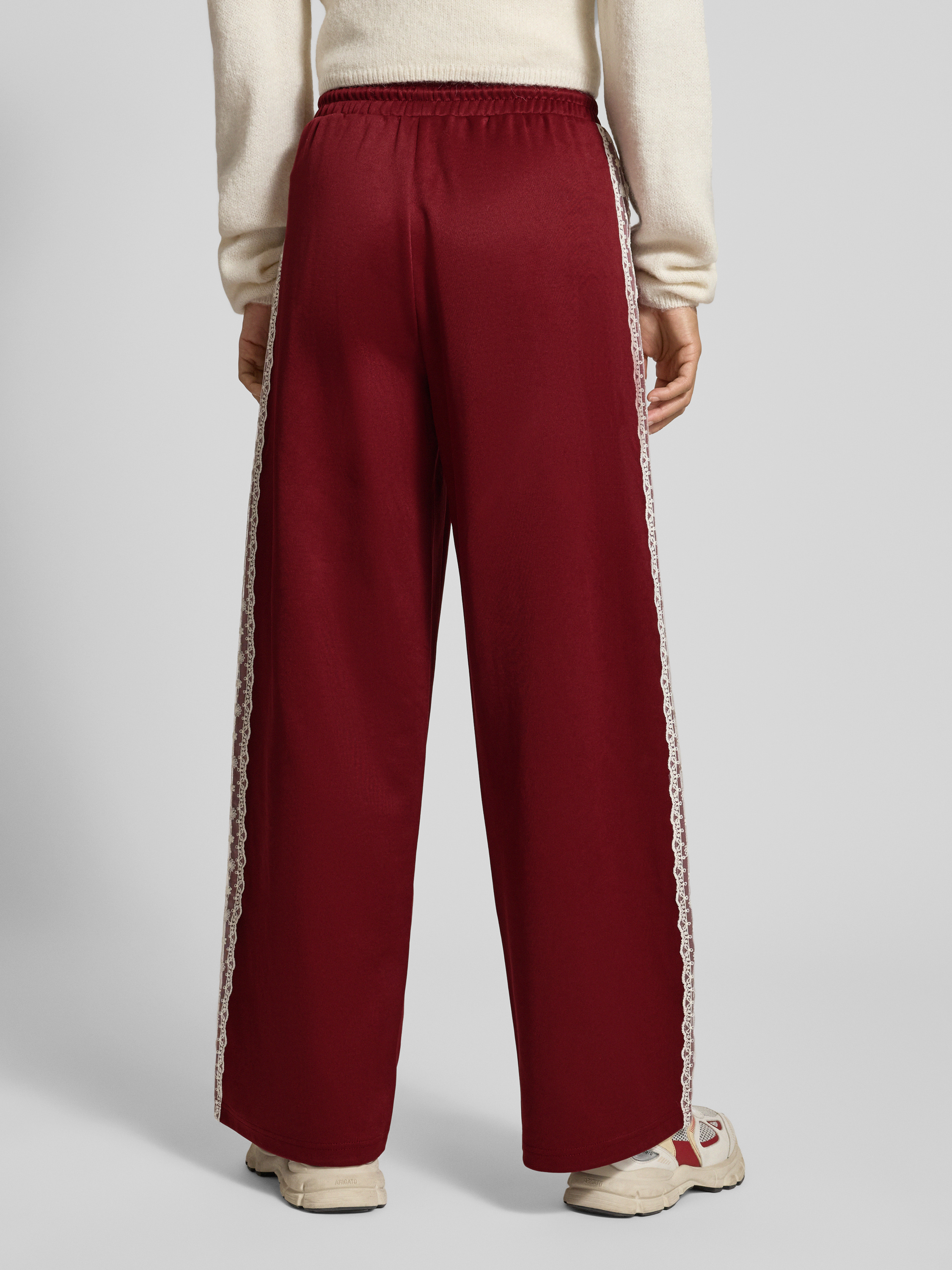 Spodnie dresowe z obszyciem koronką model ‘Kael’ - ciemnoczerwony