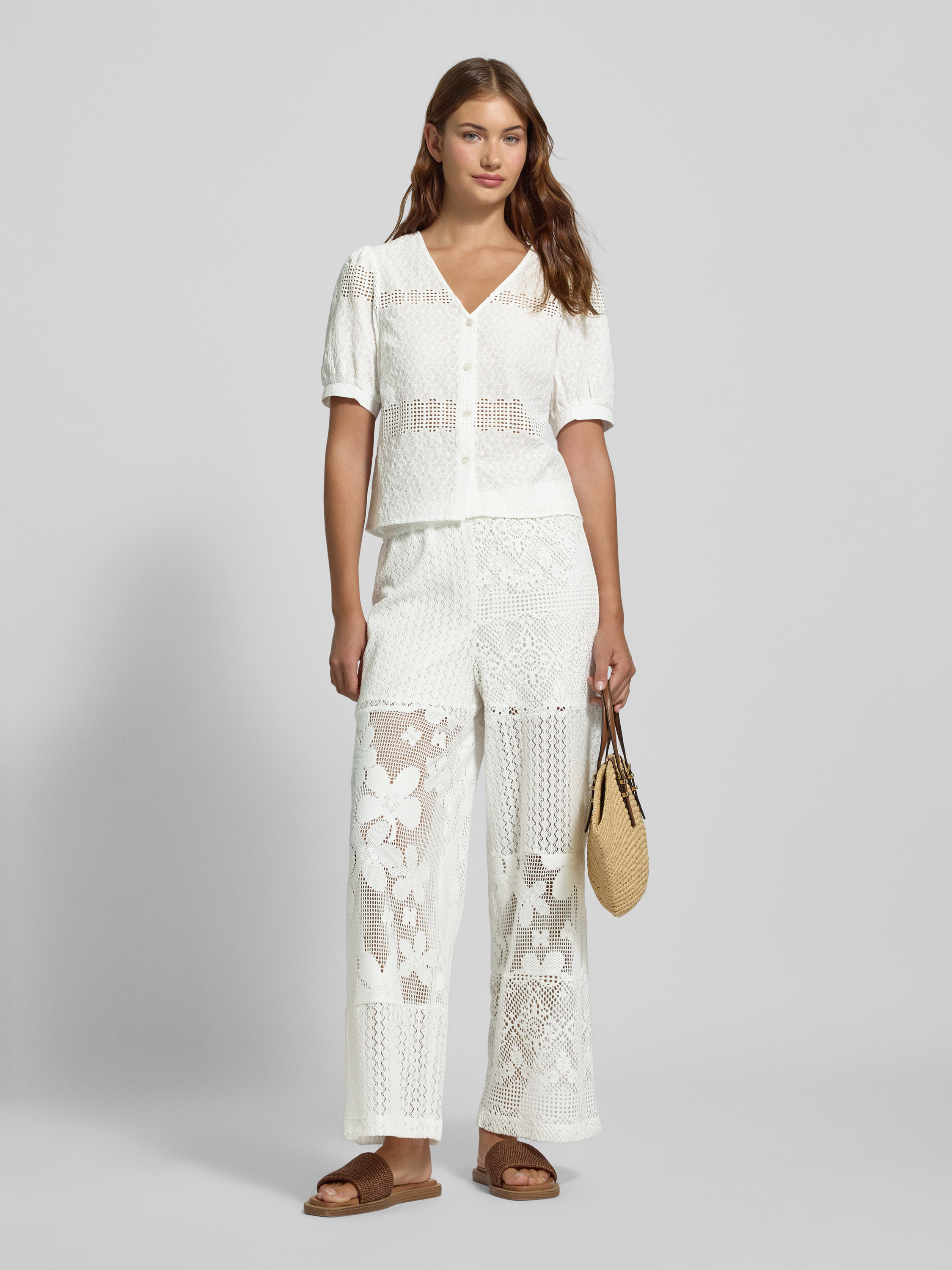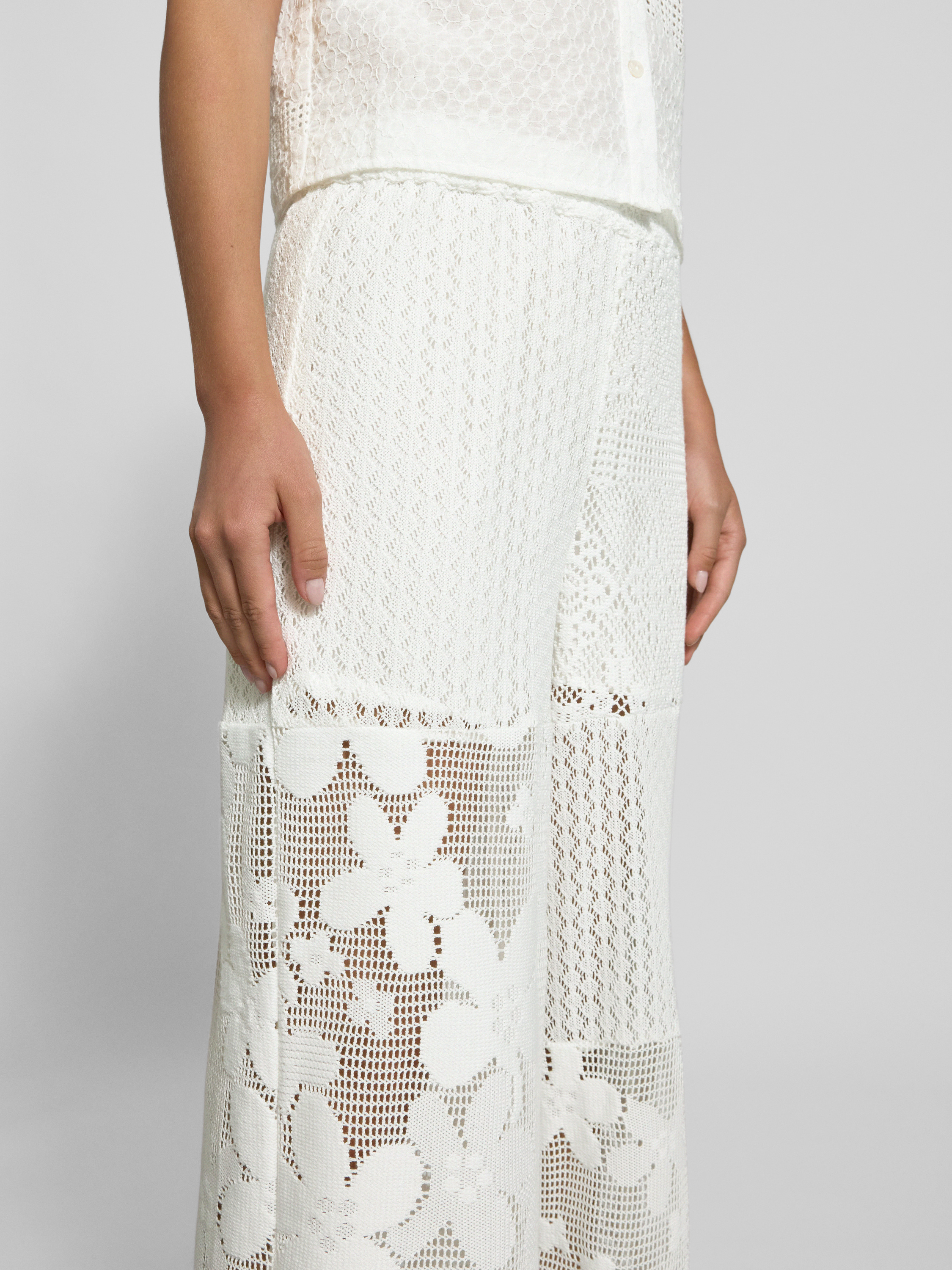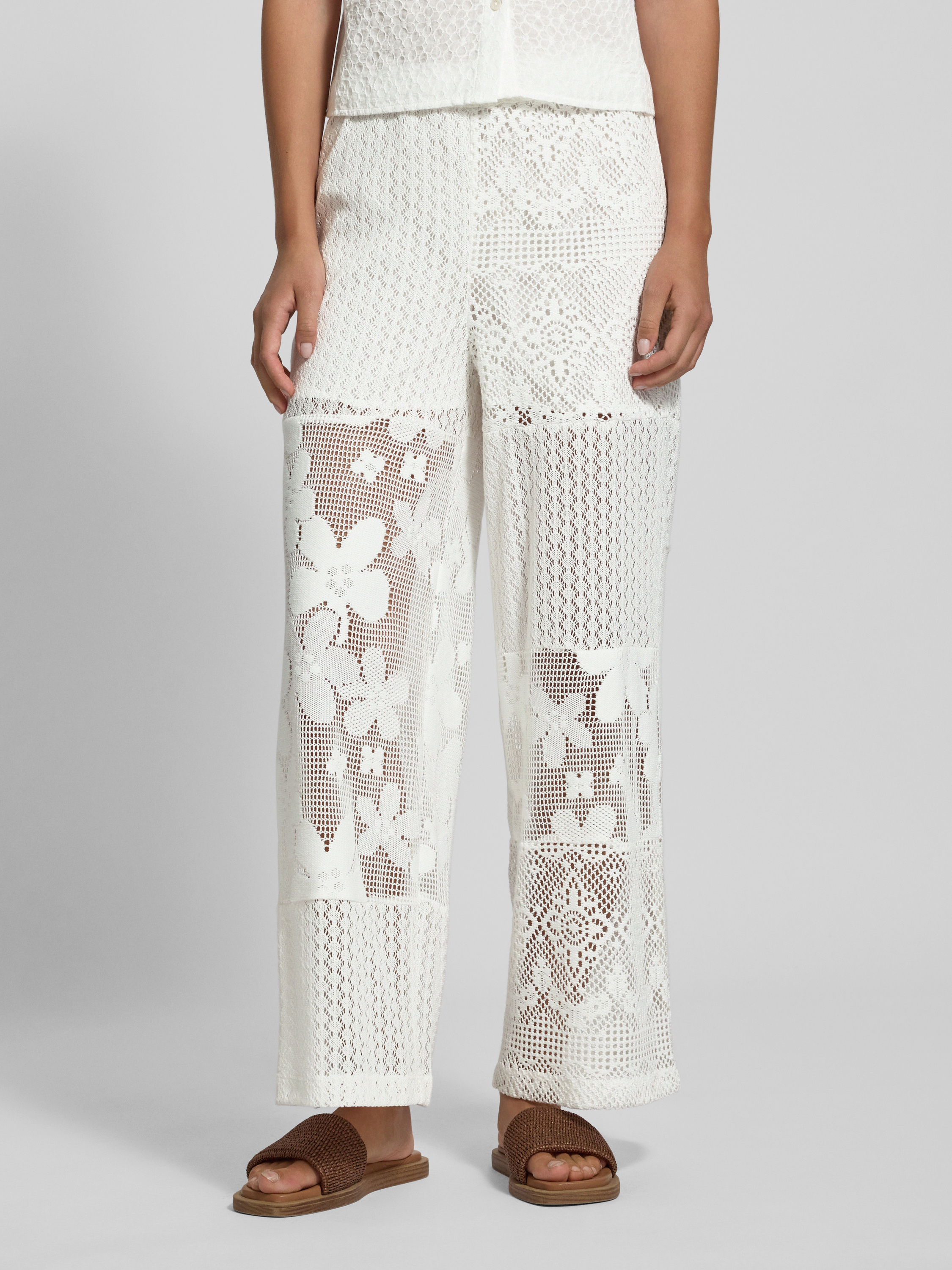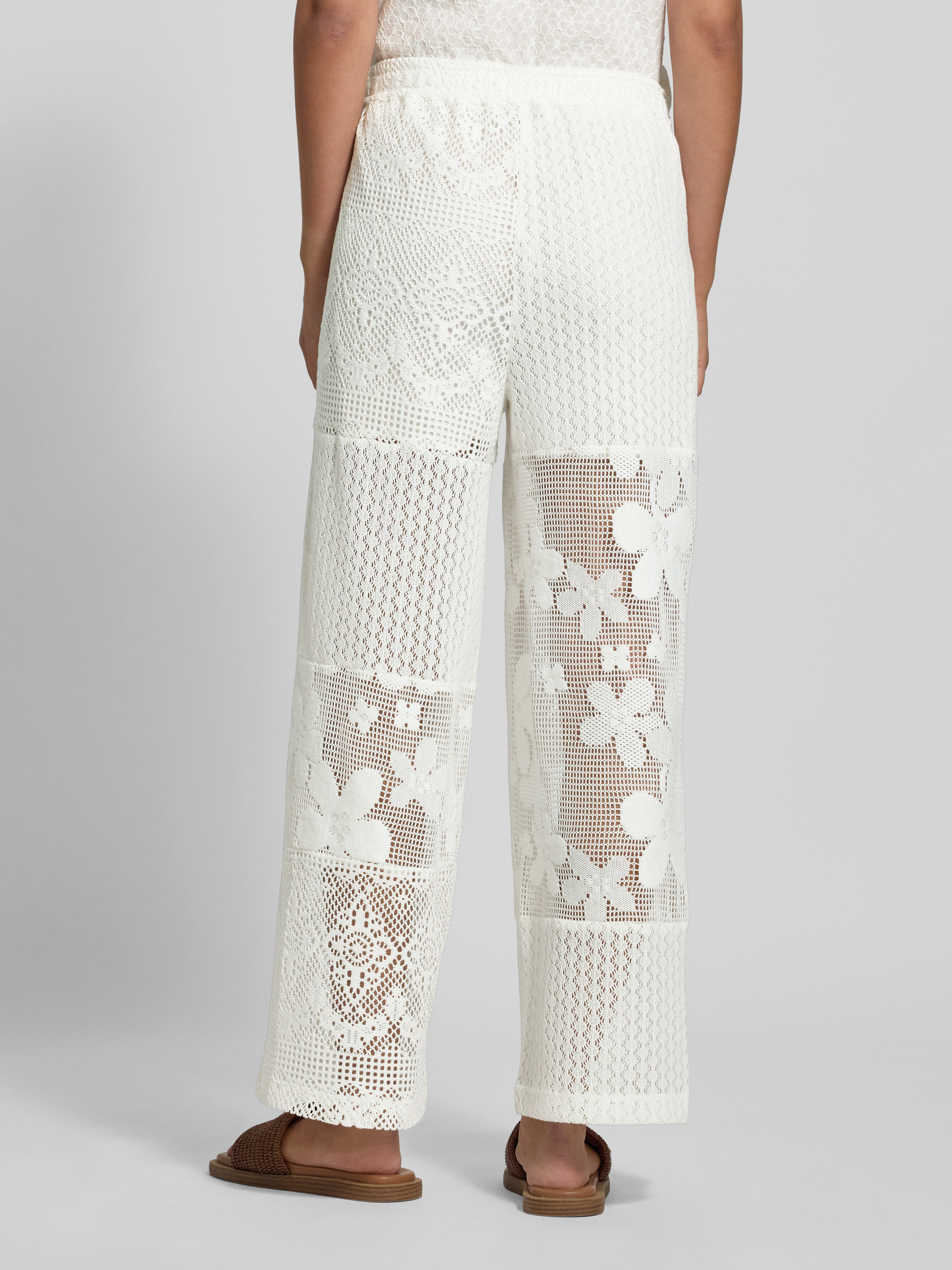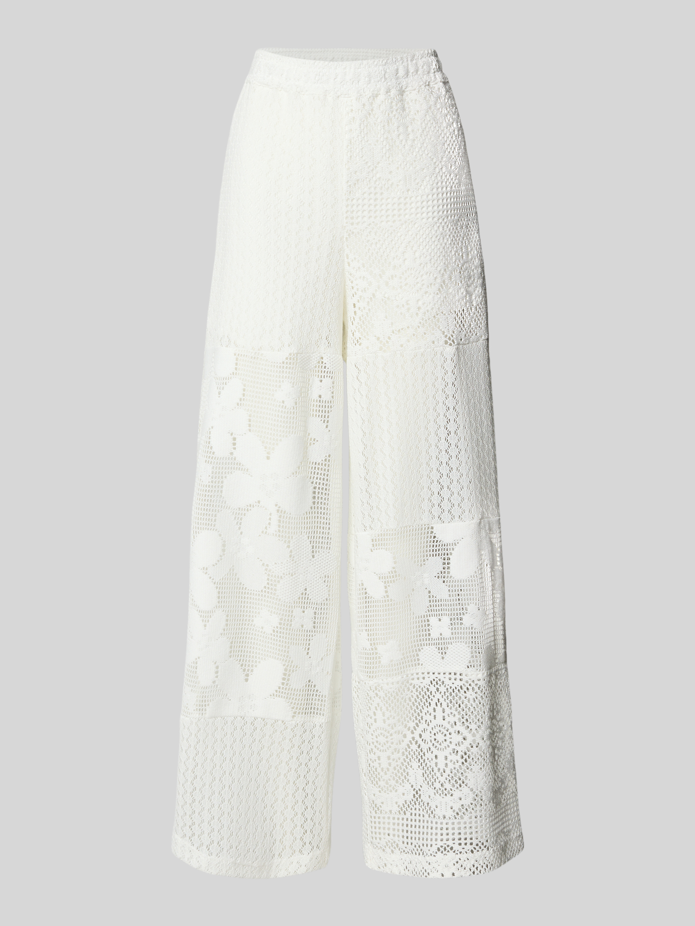 Spodnie z koronki szydełkowej z elastycznym pasem - złamany biały