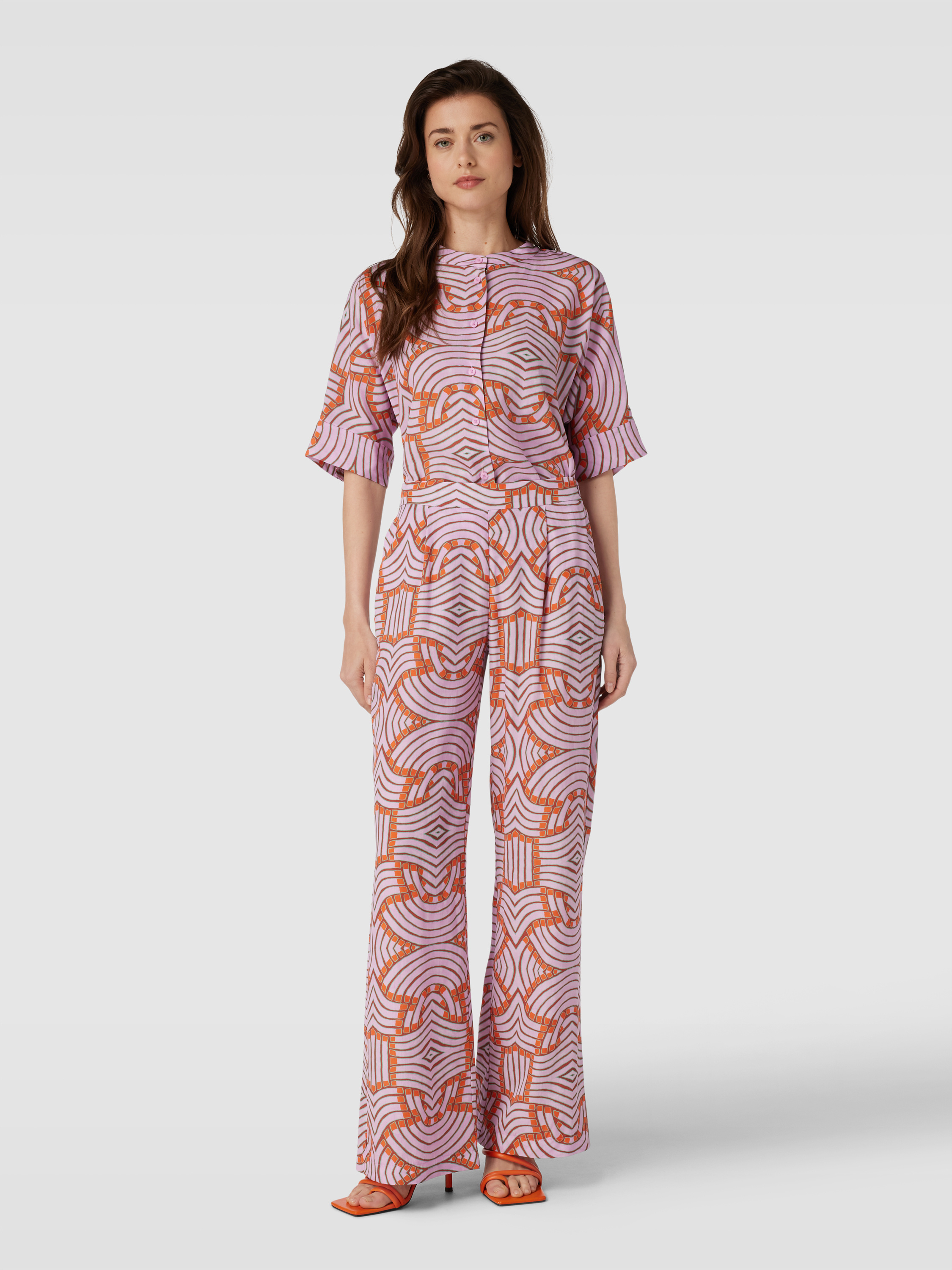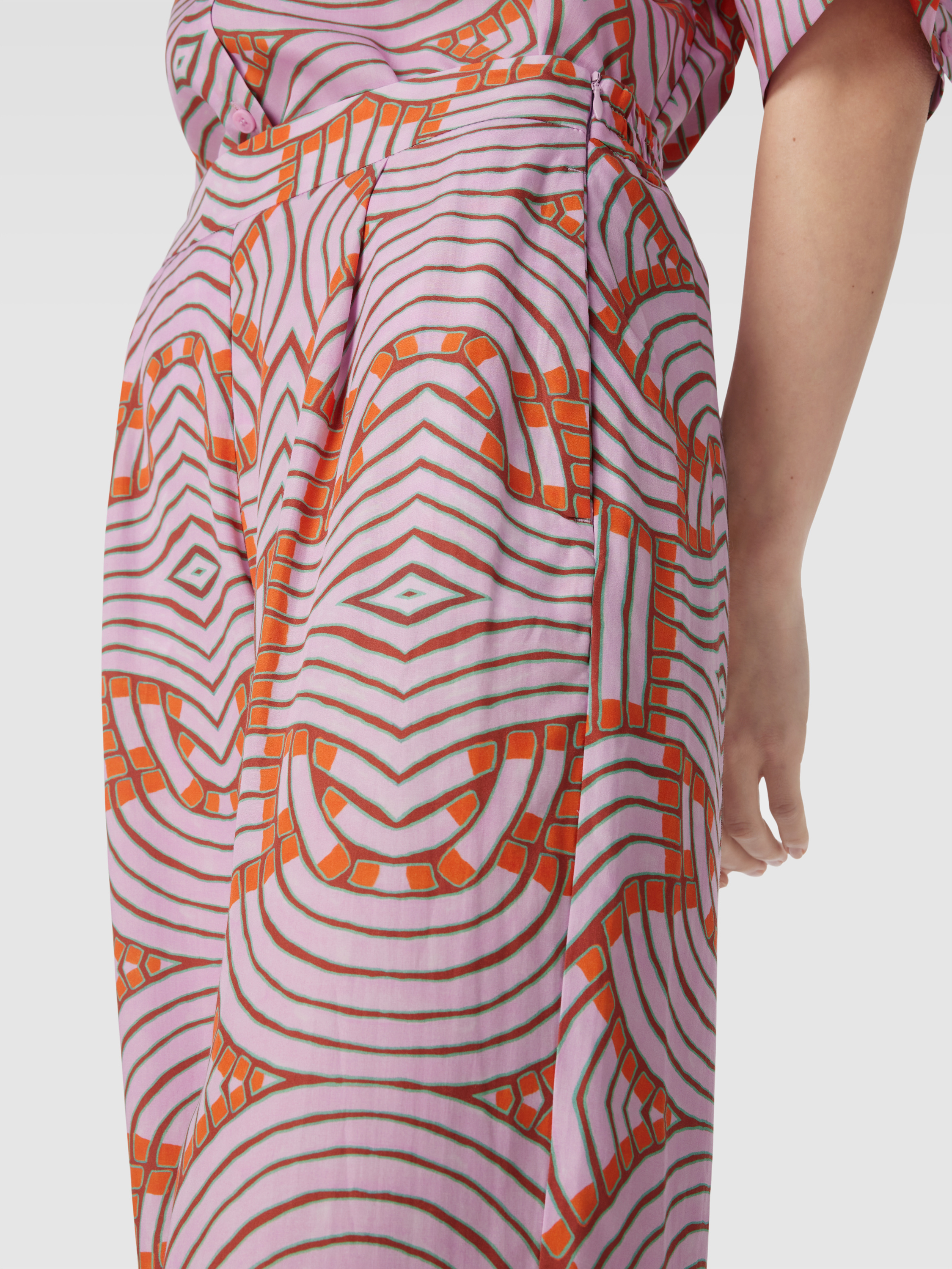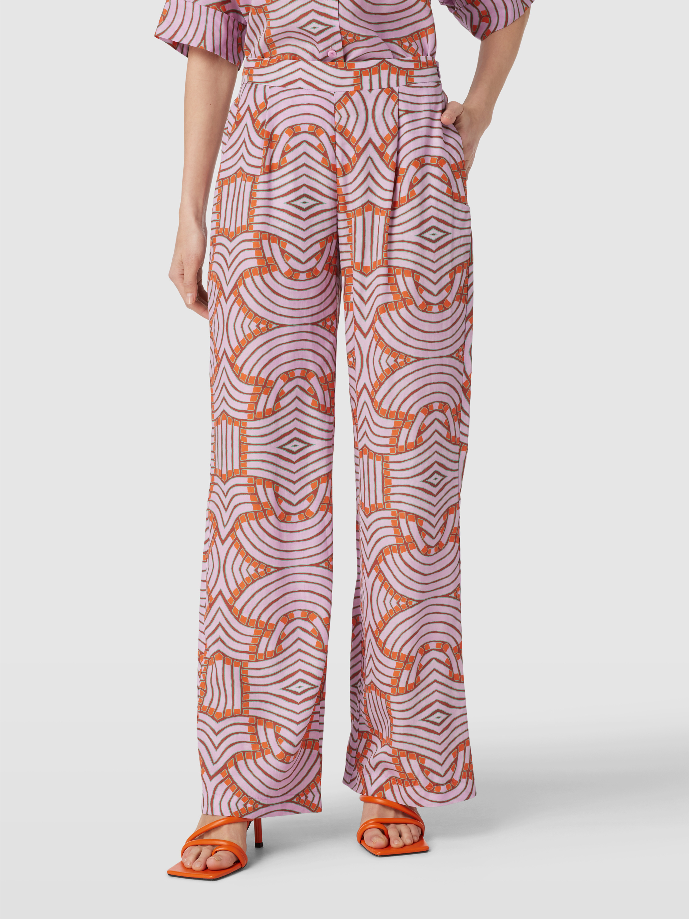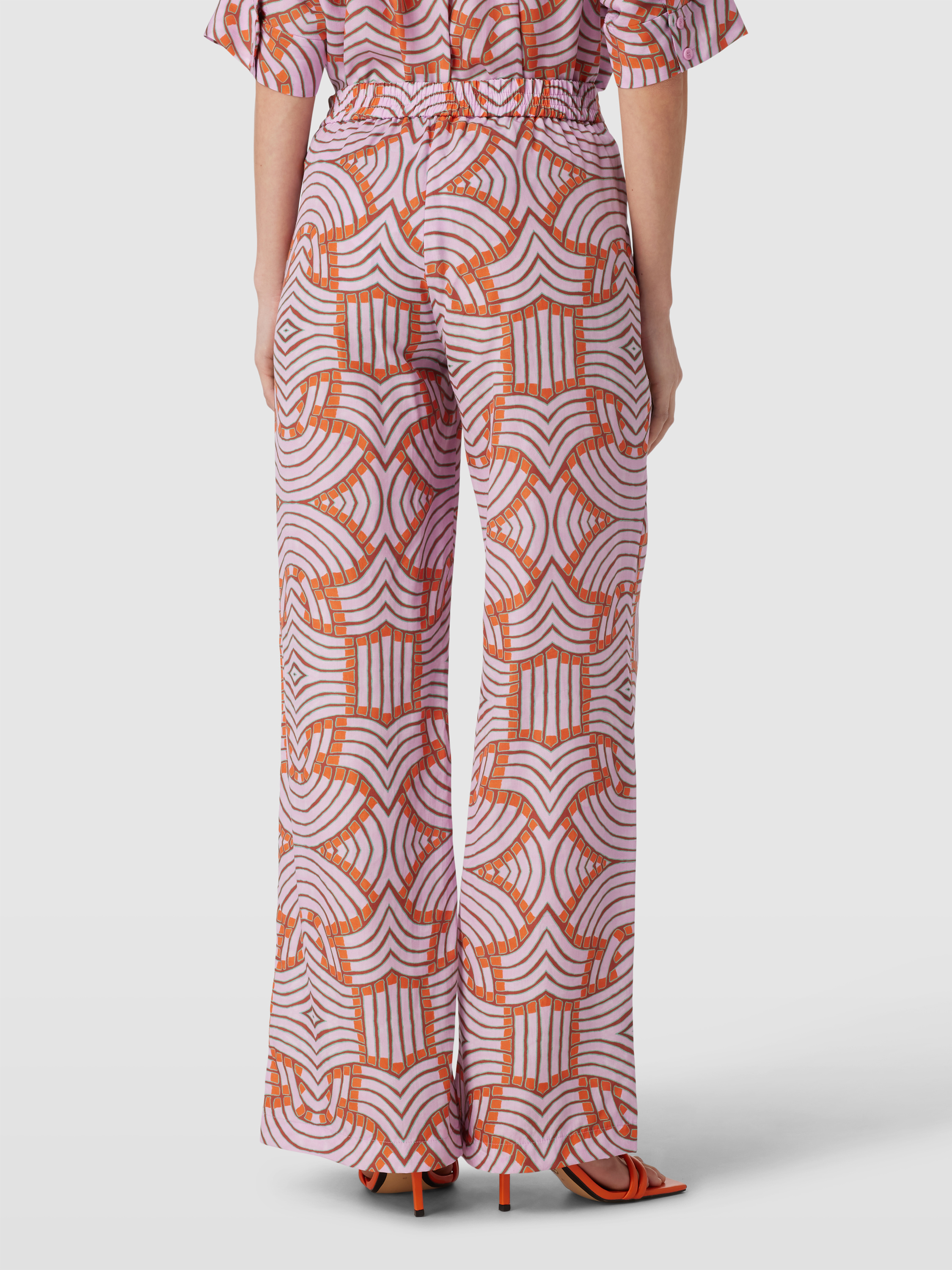 Spodnie materiałowe z szeroką nogawką i graficznym wzorem model ‘POLLOCK’ - jasnofioletowy