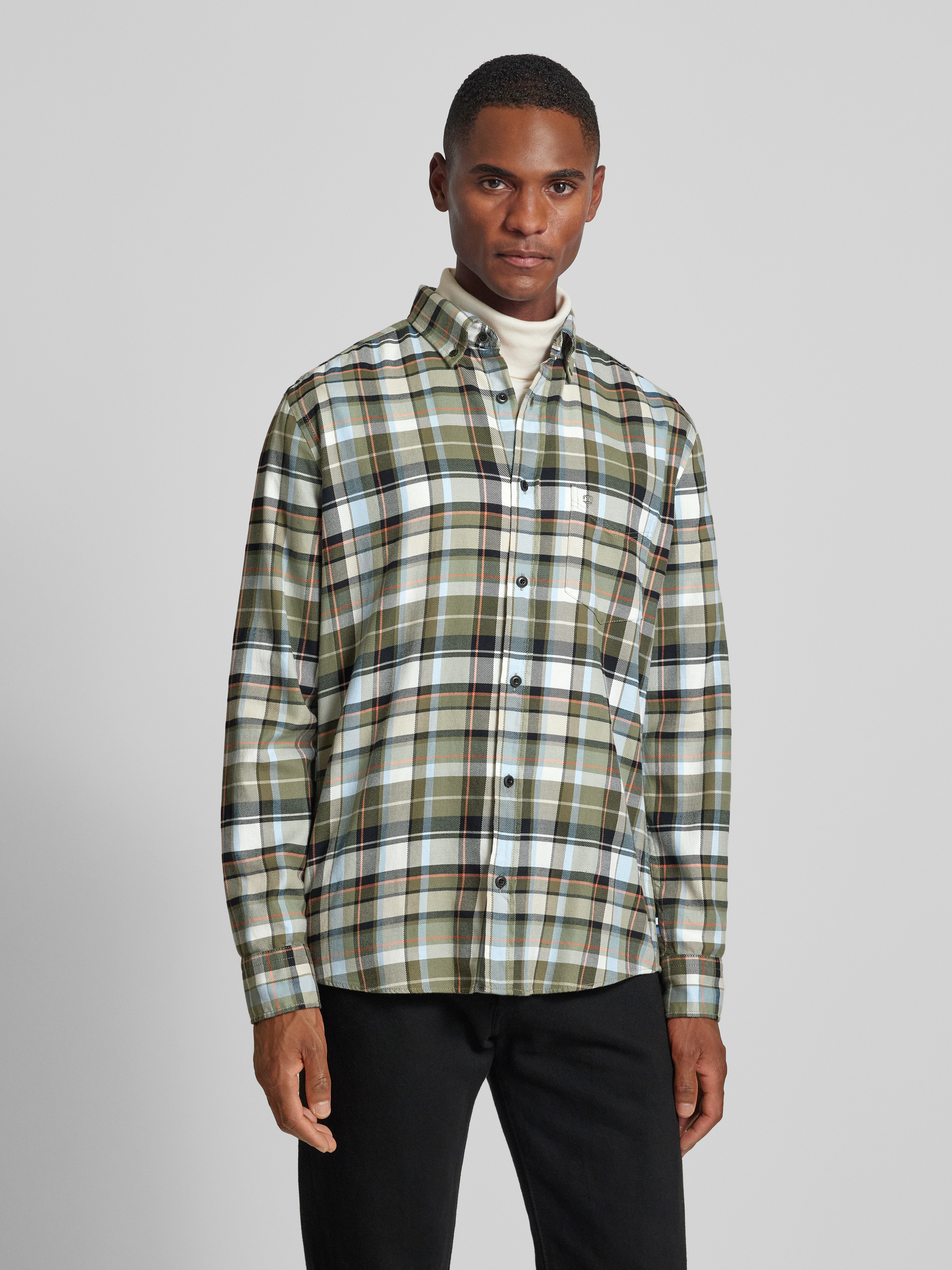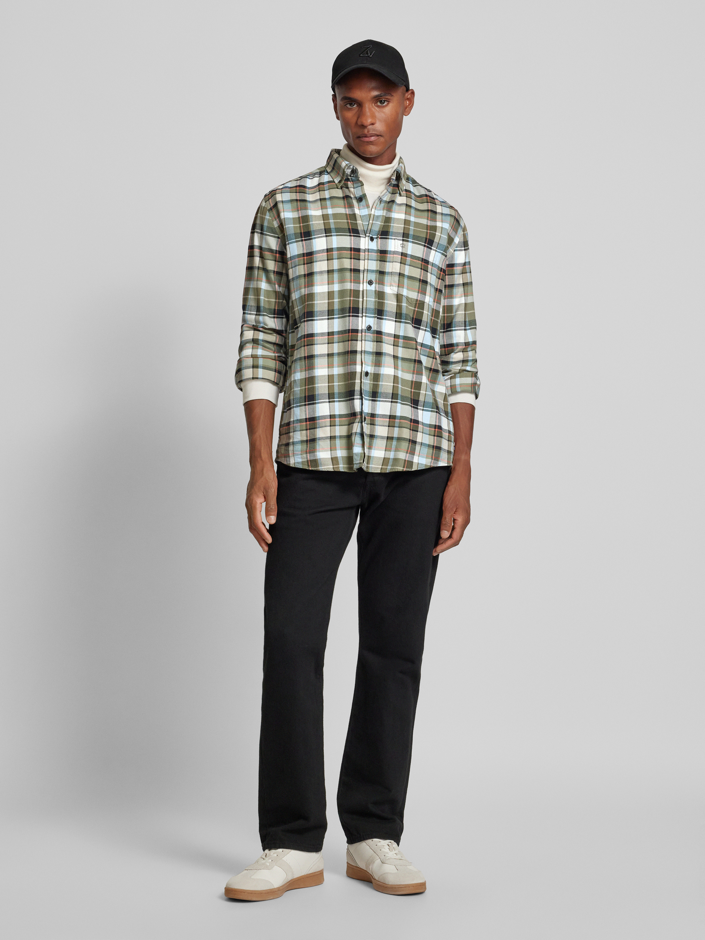 Koszula casualowa o kroju regular fit z kołnierzykiem typu button down - oliwkowy