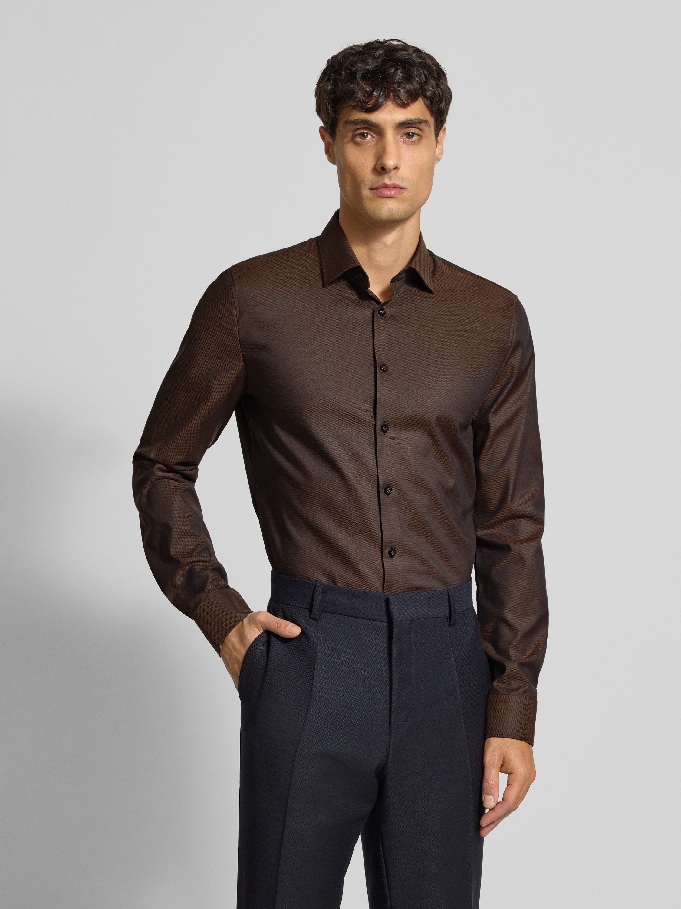 OLYMP No. SixKoszula biznesowa o kroju Super Slim Fit z kołnierzykiem typu kent - średniobrązowy
