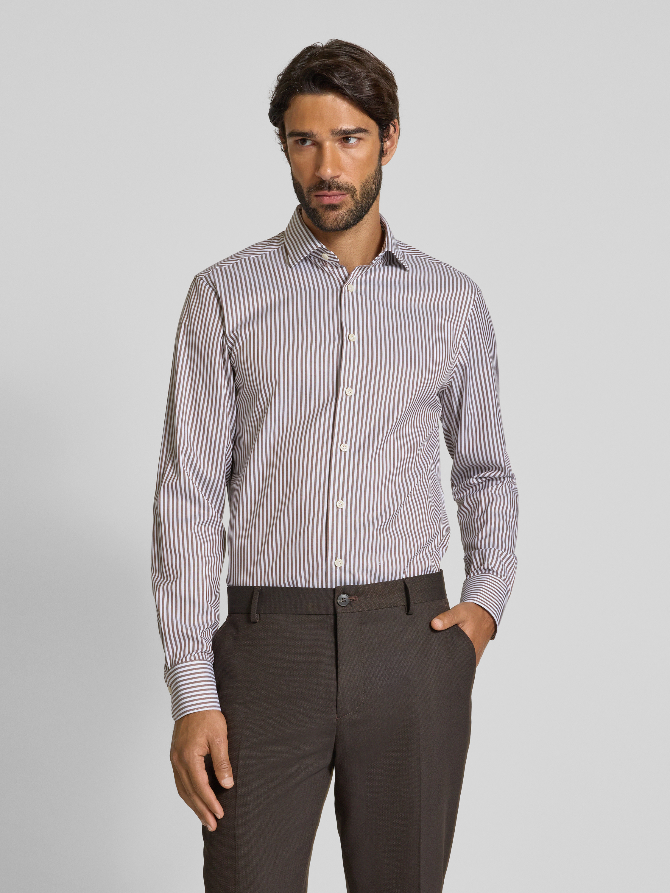 OLYMP SIGNATURE SLIM FITKoszula casualowa o kroju slim fit z kołnierzykiem typu kent model ‘Namur’ - średniobrązowy