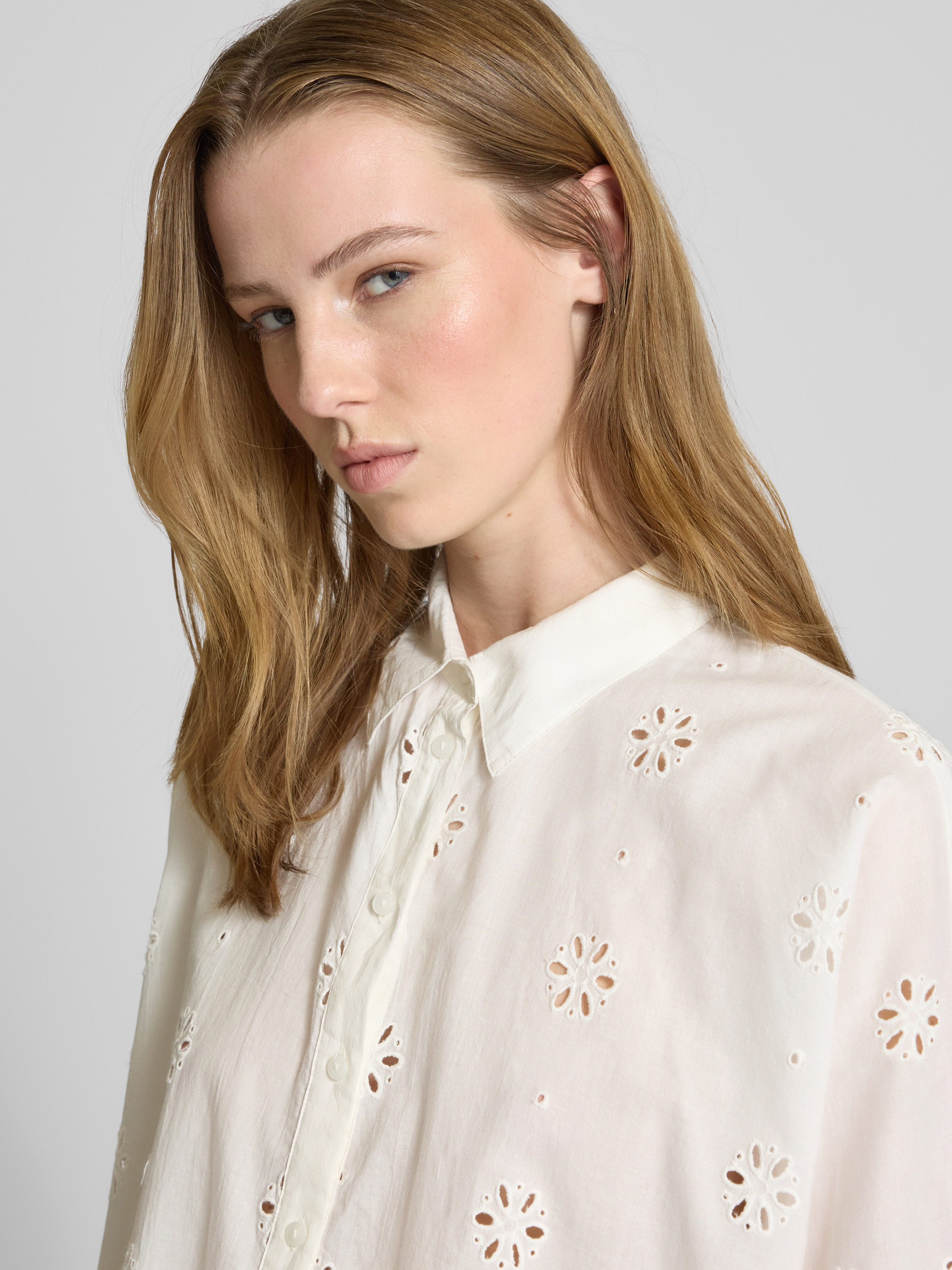 Bluzka koszulowa o kroju body fit z czystej bawełny model ‘NEW LINA GRACE’ - biały