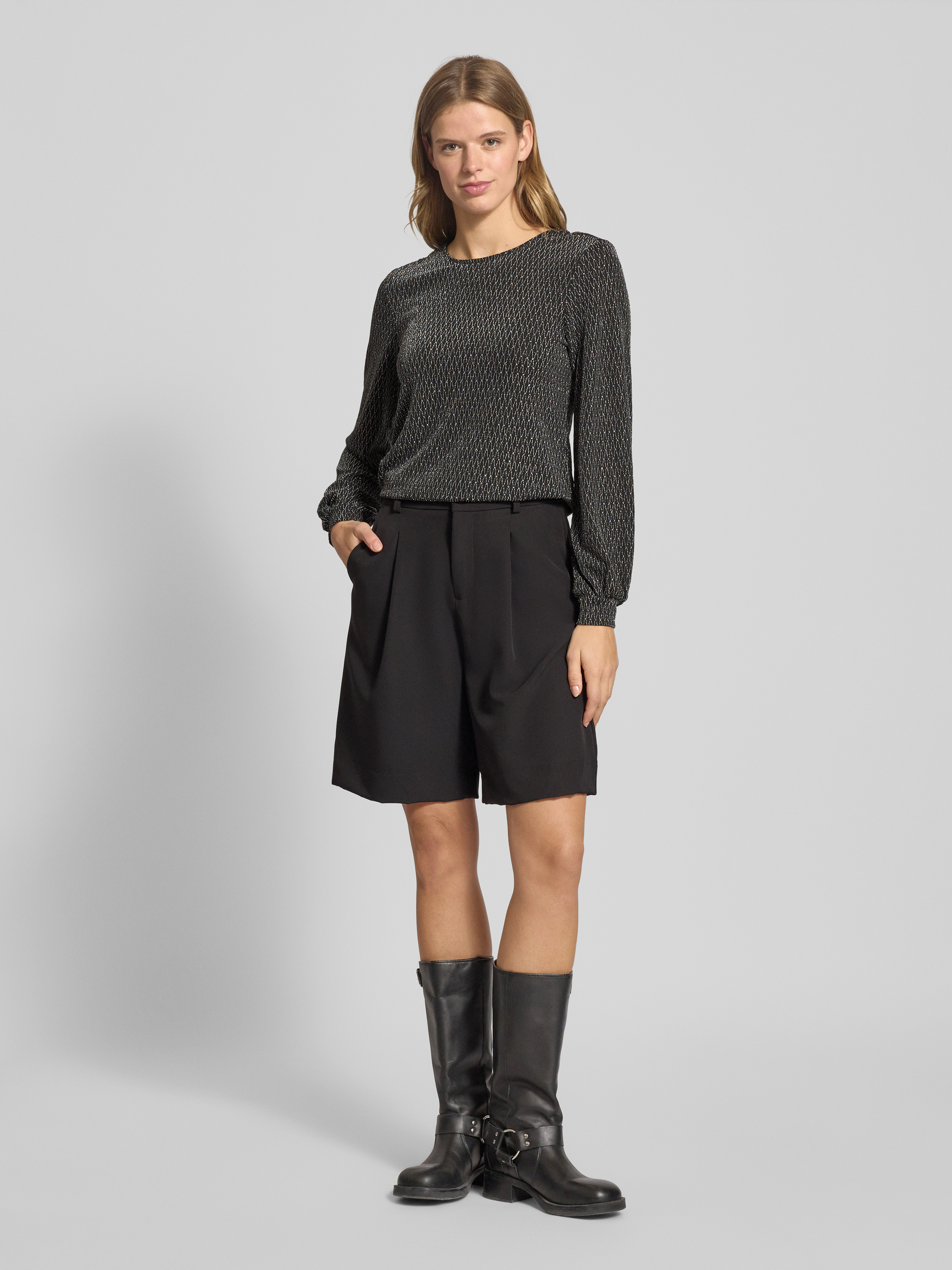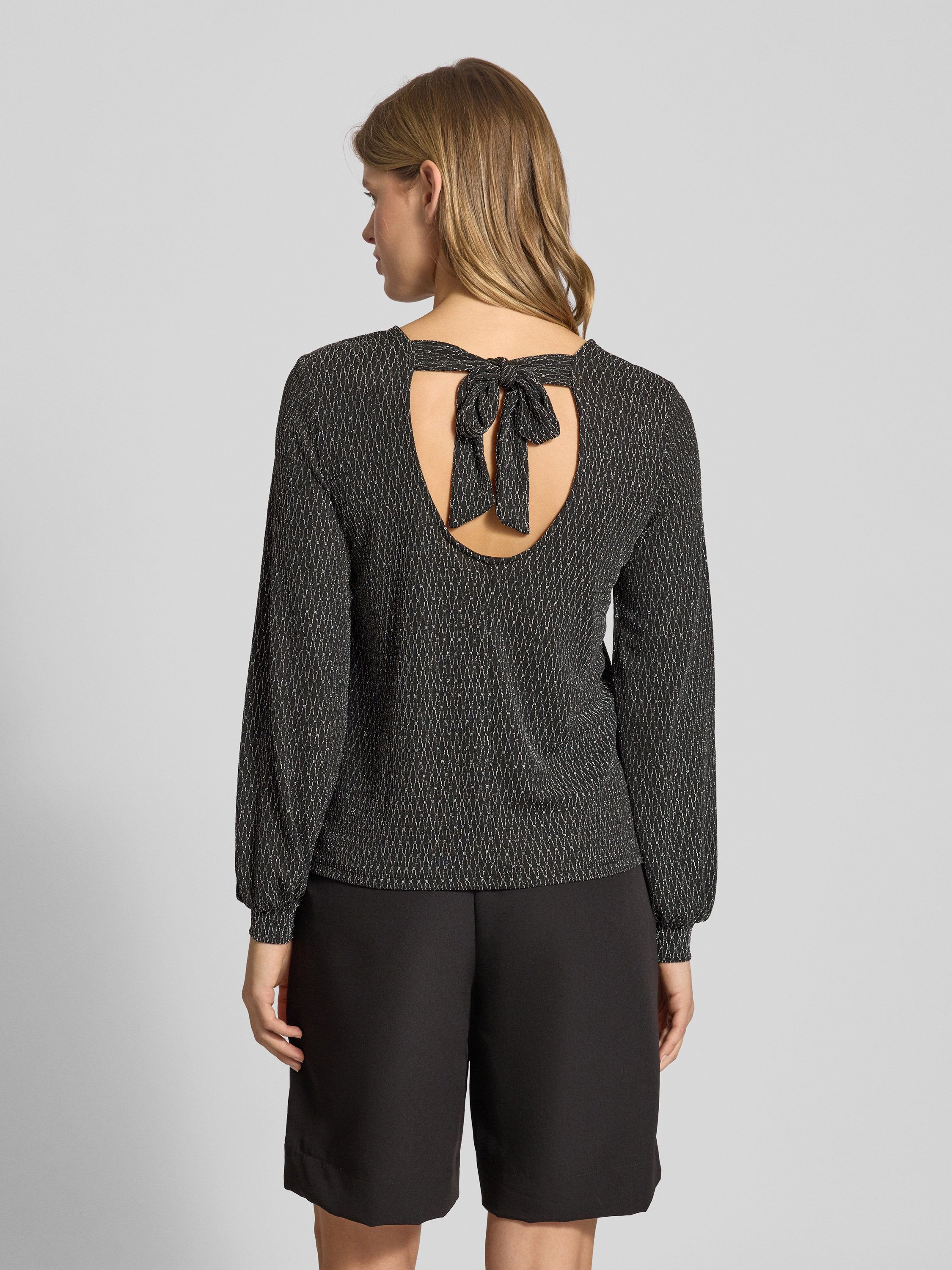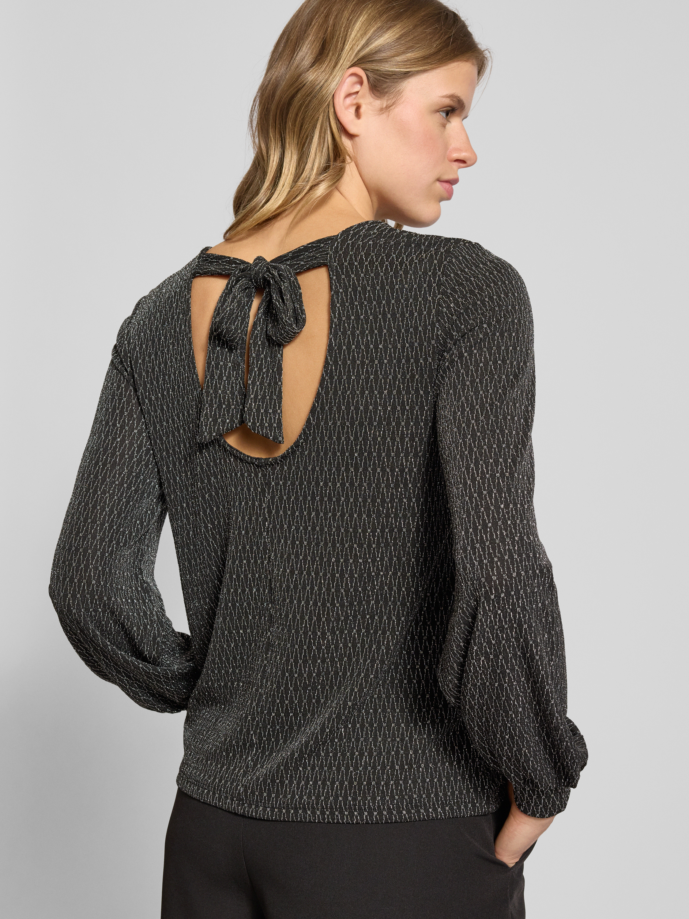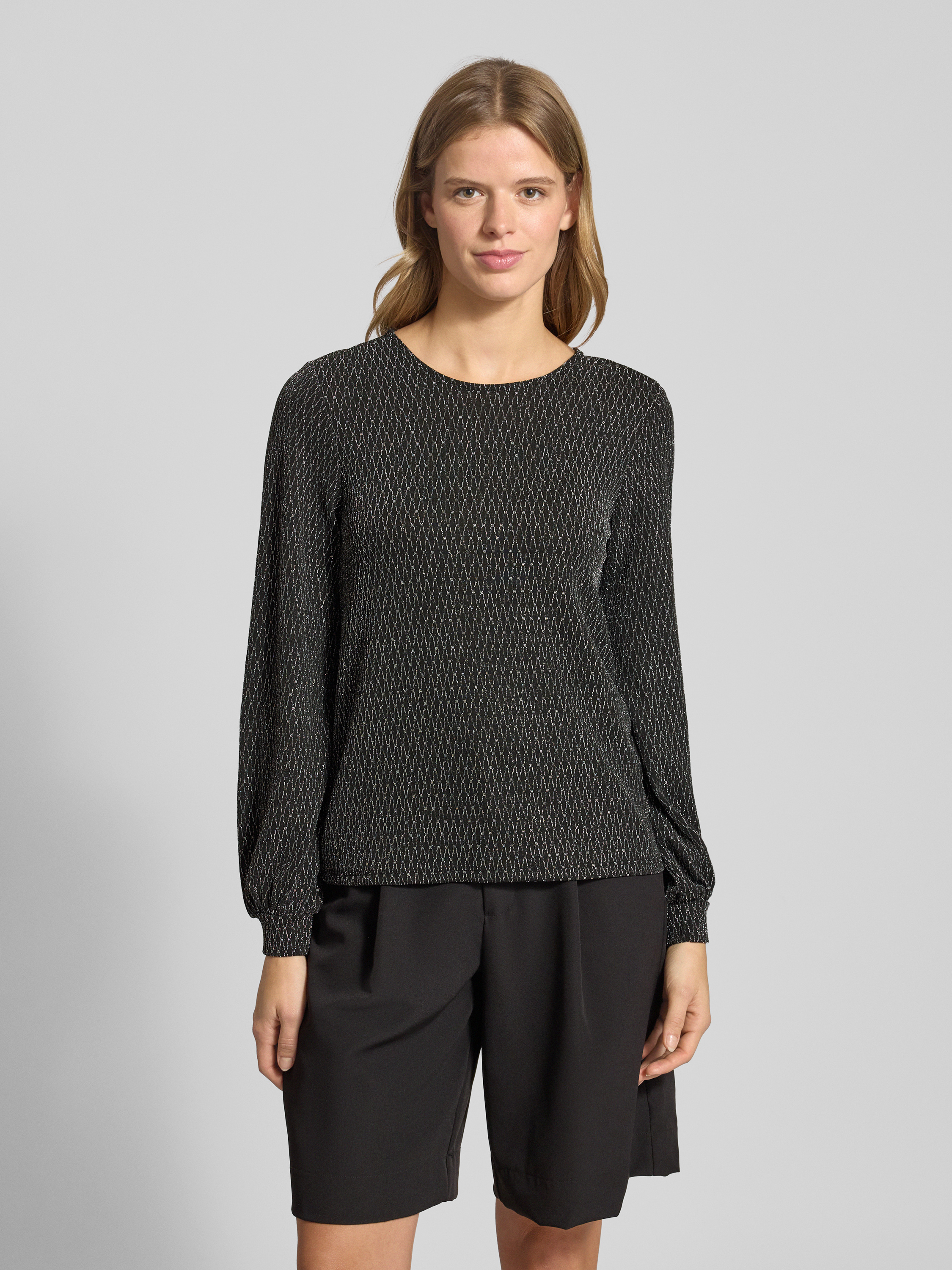 Bluzka o kroju regular fit z długim rękawem i odznaczającym się, metalicznym wzorem na całej powierzchni model ‘CAROL’ - metaliczny czarny