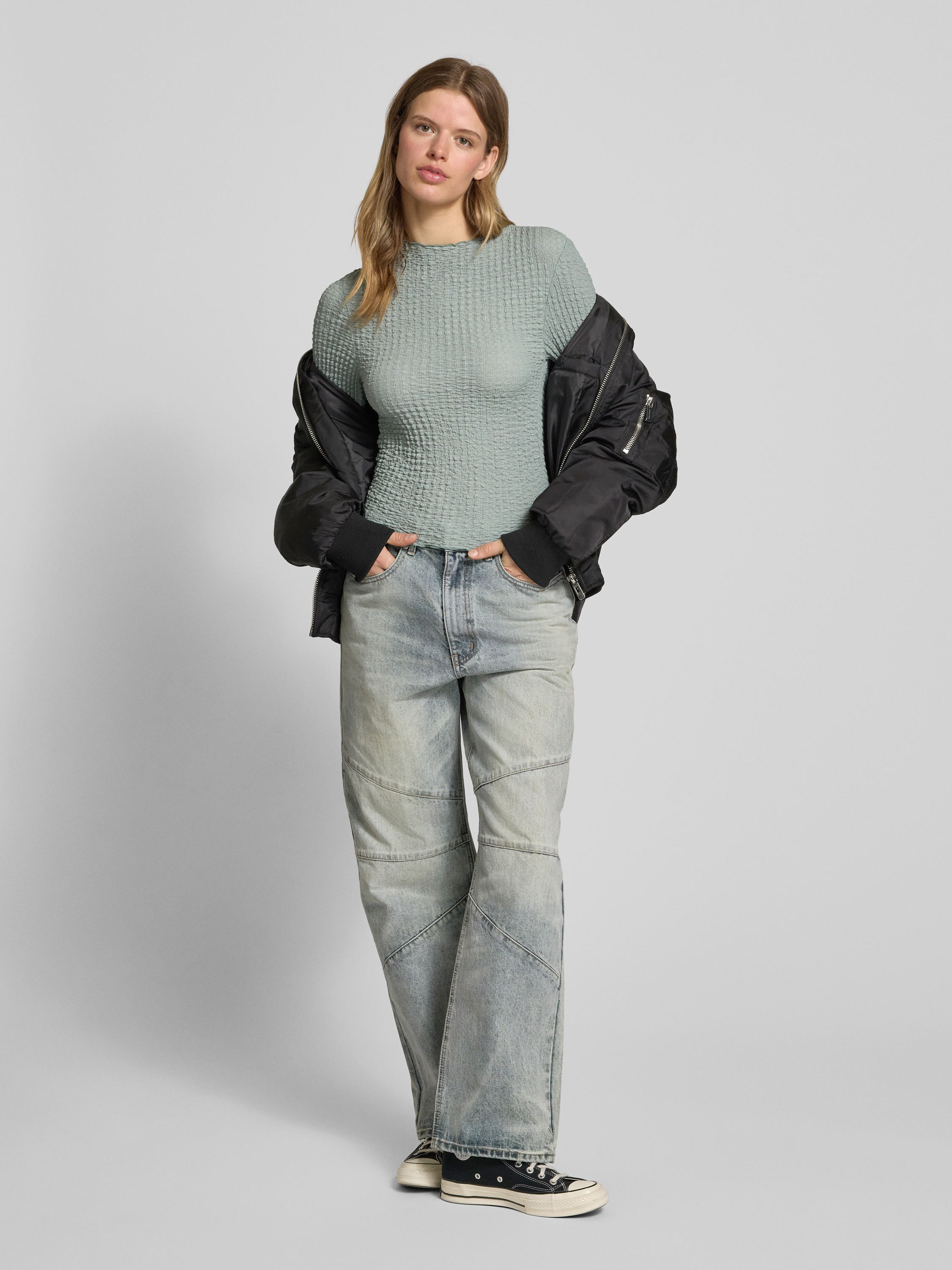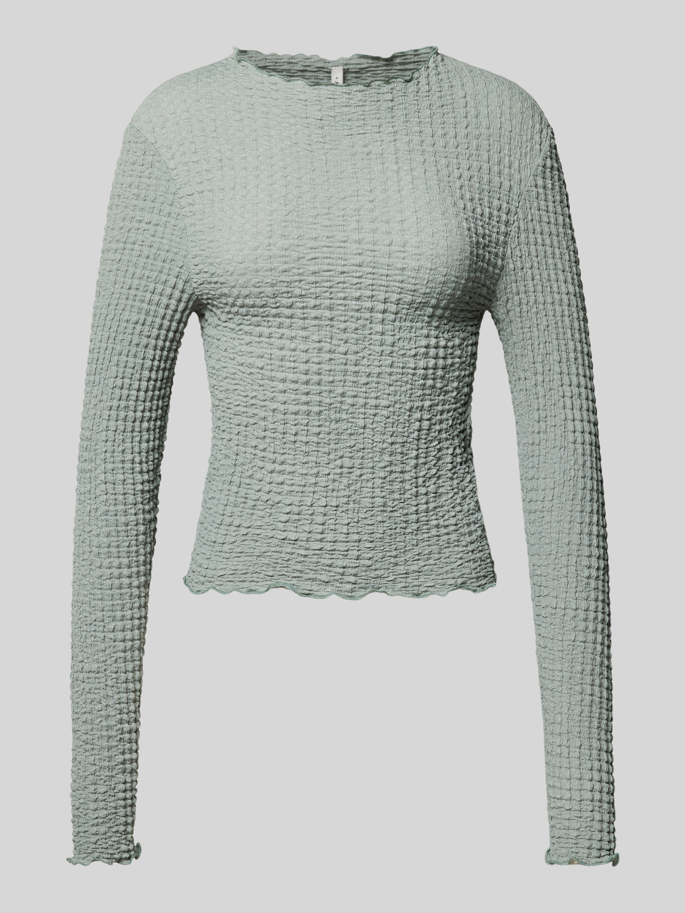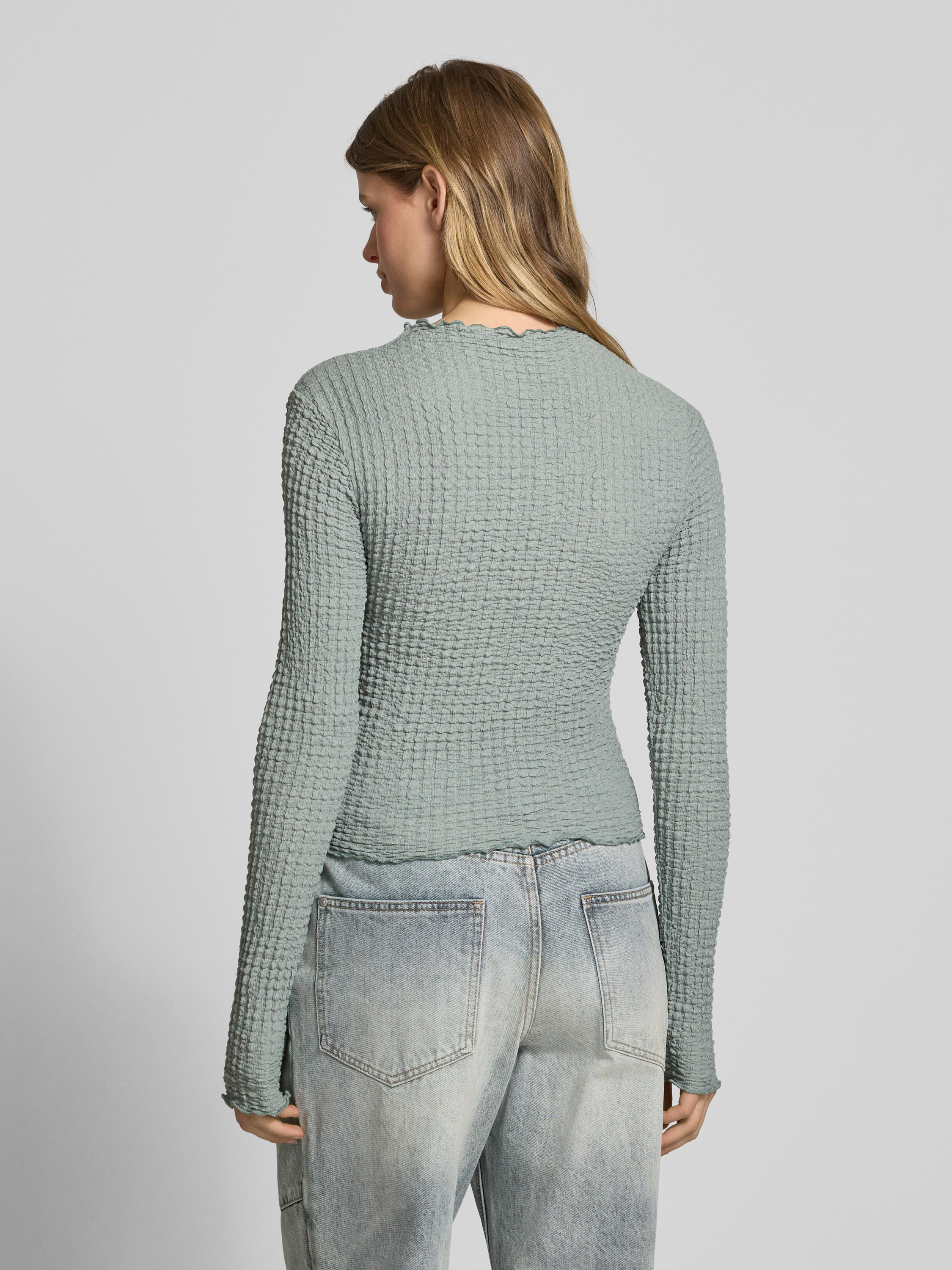 Bluzka z długim rękawem o kroju slim fit z efektem seersucker model ‘LENA’ - trzcinowy