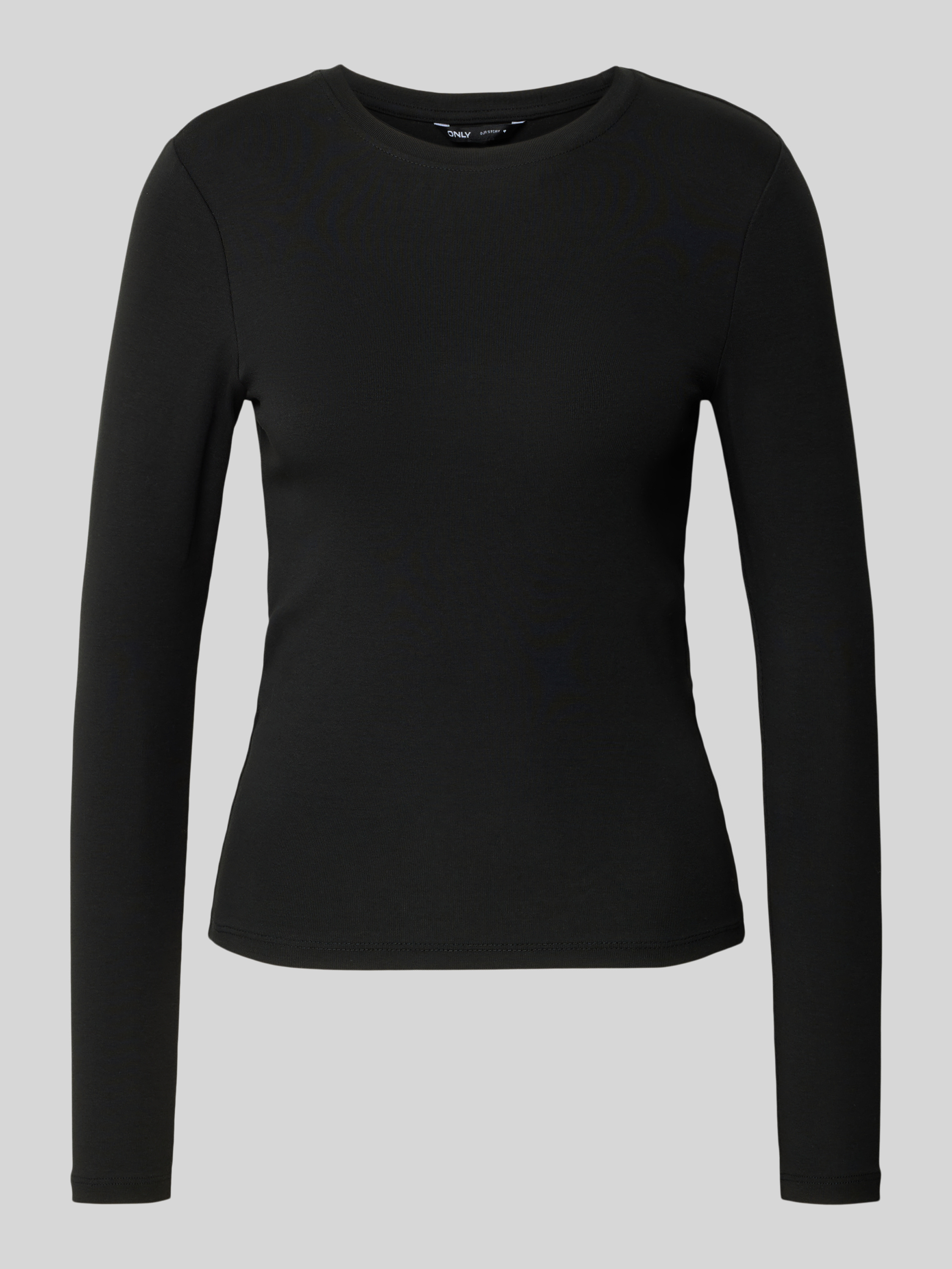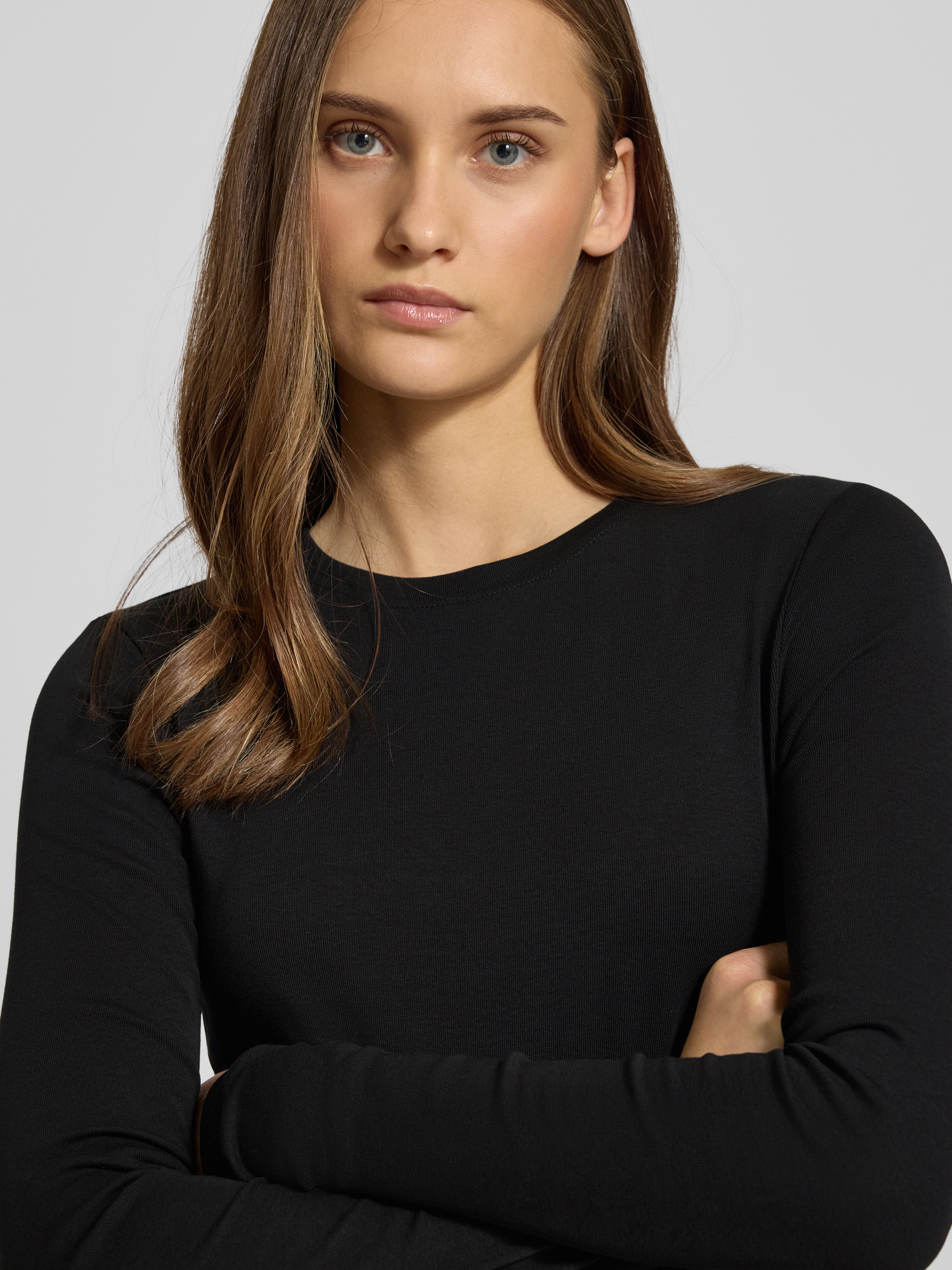 Bluzka z długim rękawem o kroju slim fit z mieszanki bawełny model ‘RILEY’ - czarny