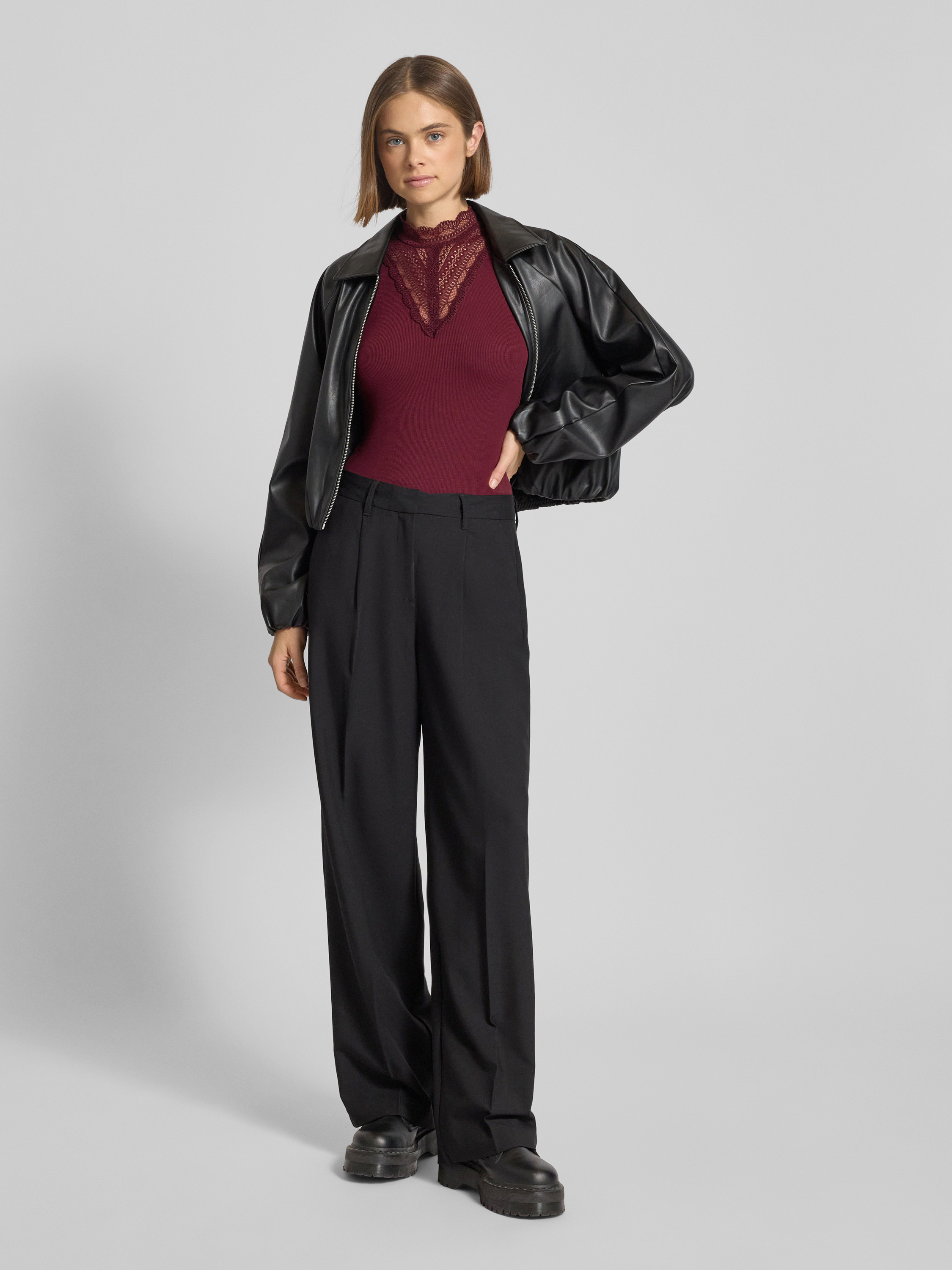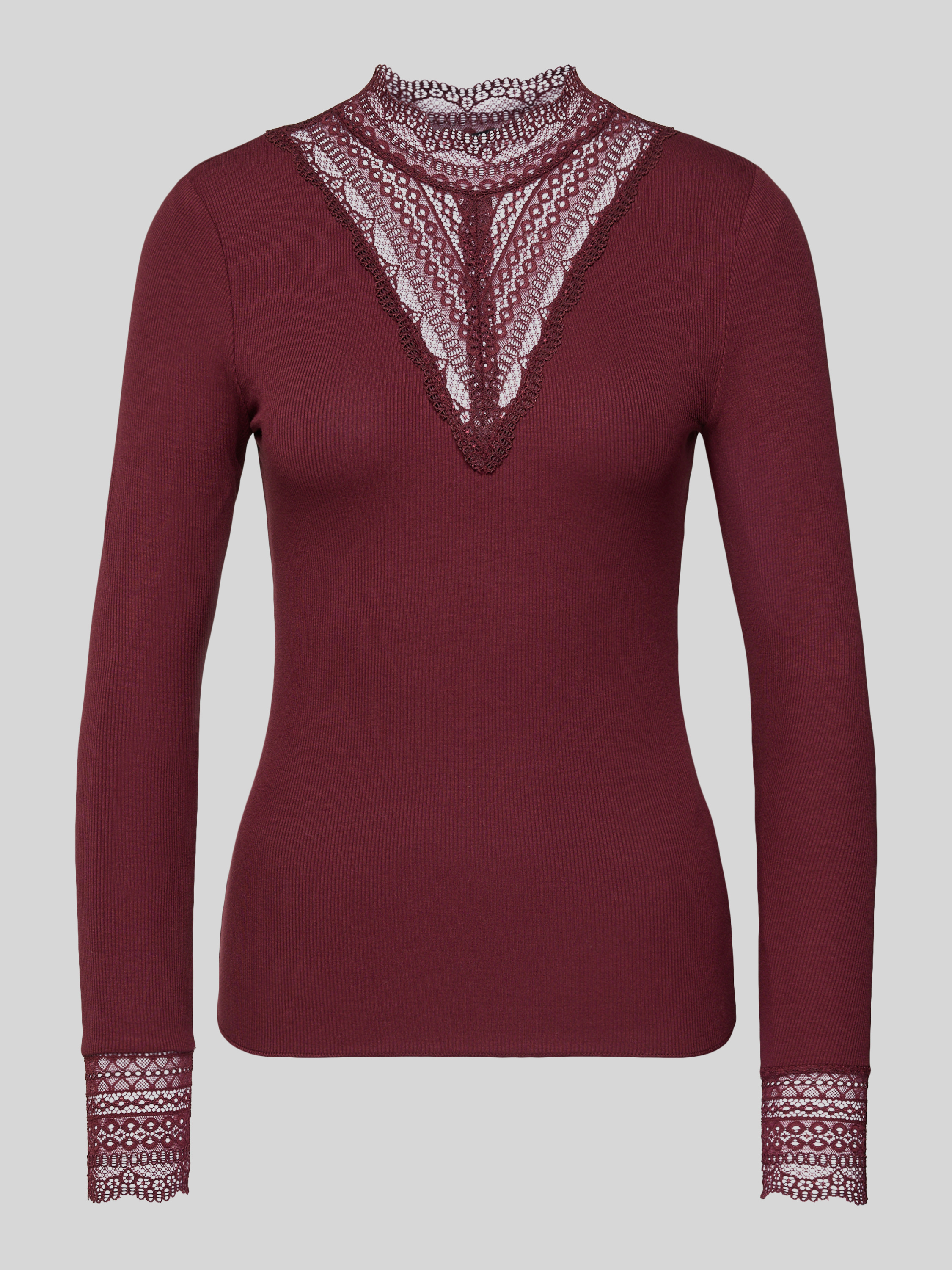 Bluzka z długim rękawem o kroju slim fit z mieszanki wiskozy model ‘TILDE’ - bordowy