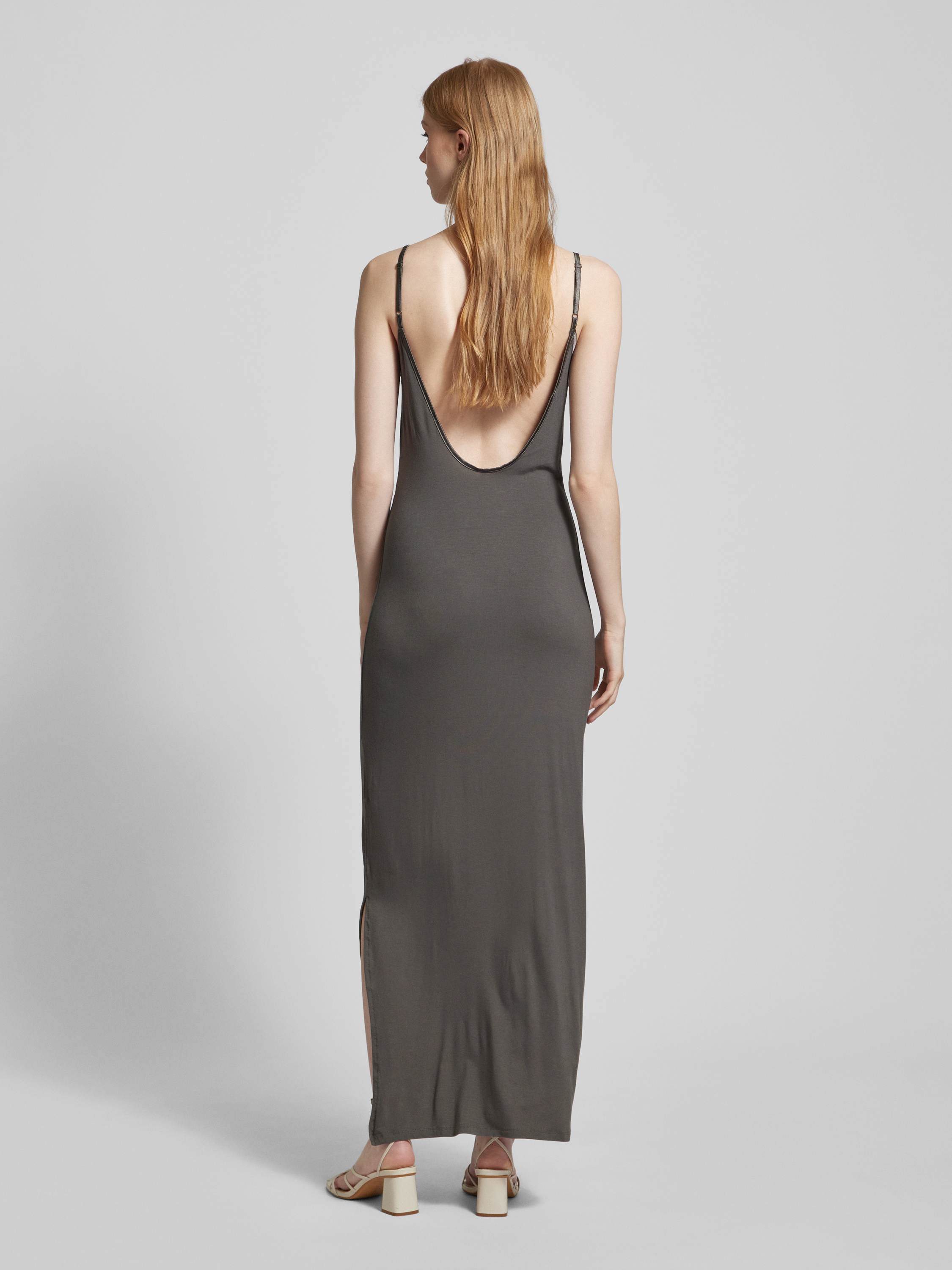 Długa sukienka z mieszanki wiskozy model ‘Amelia’ - antracytowy