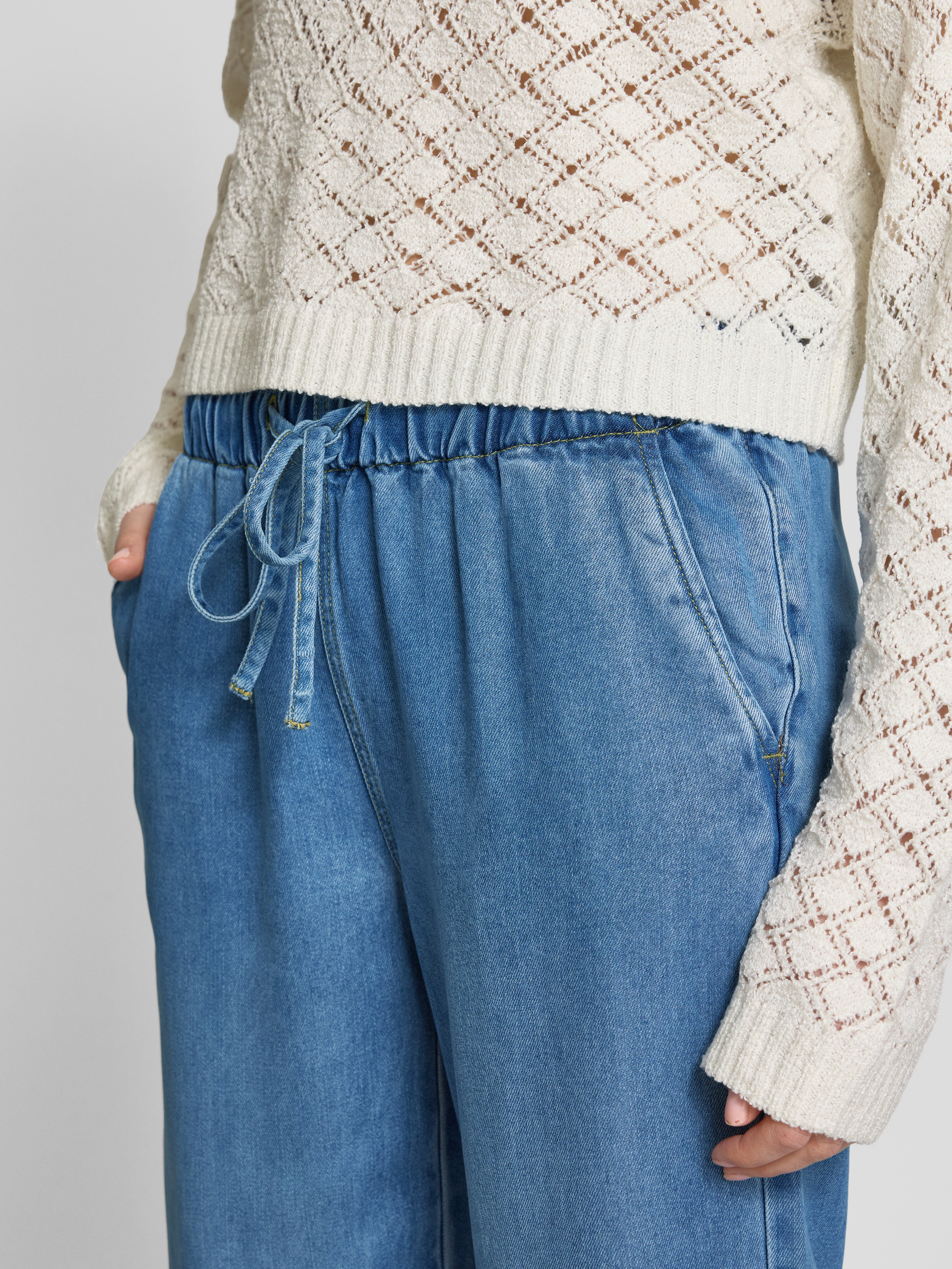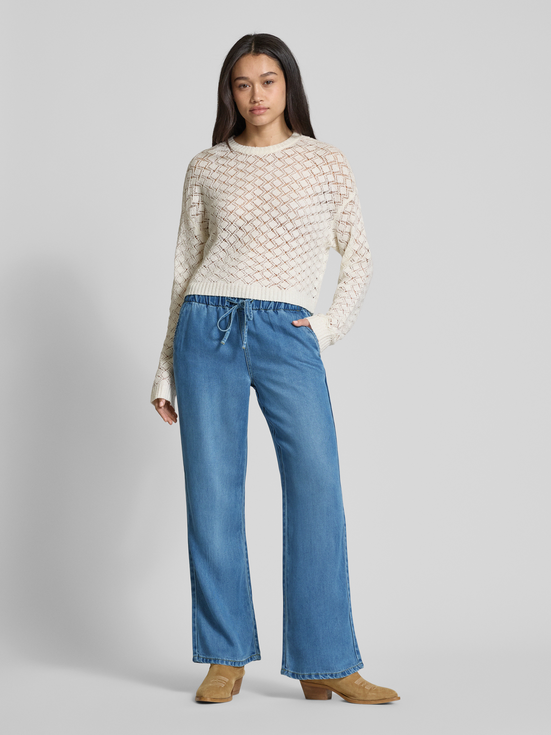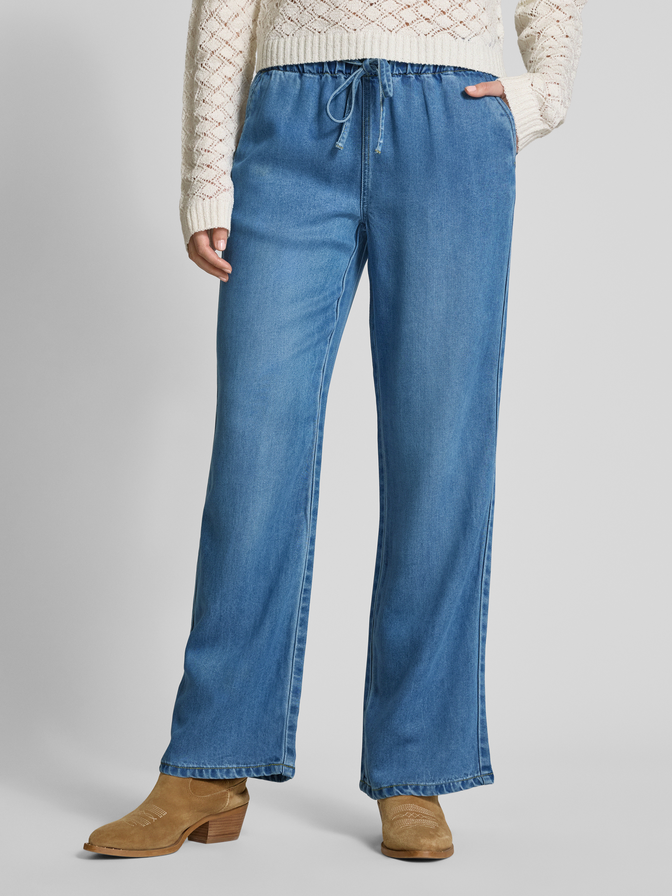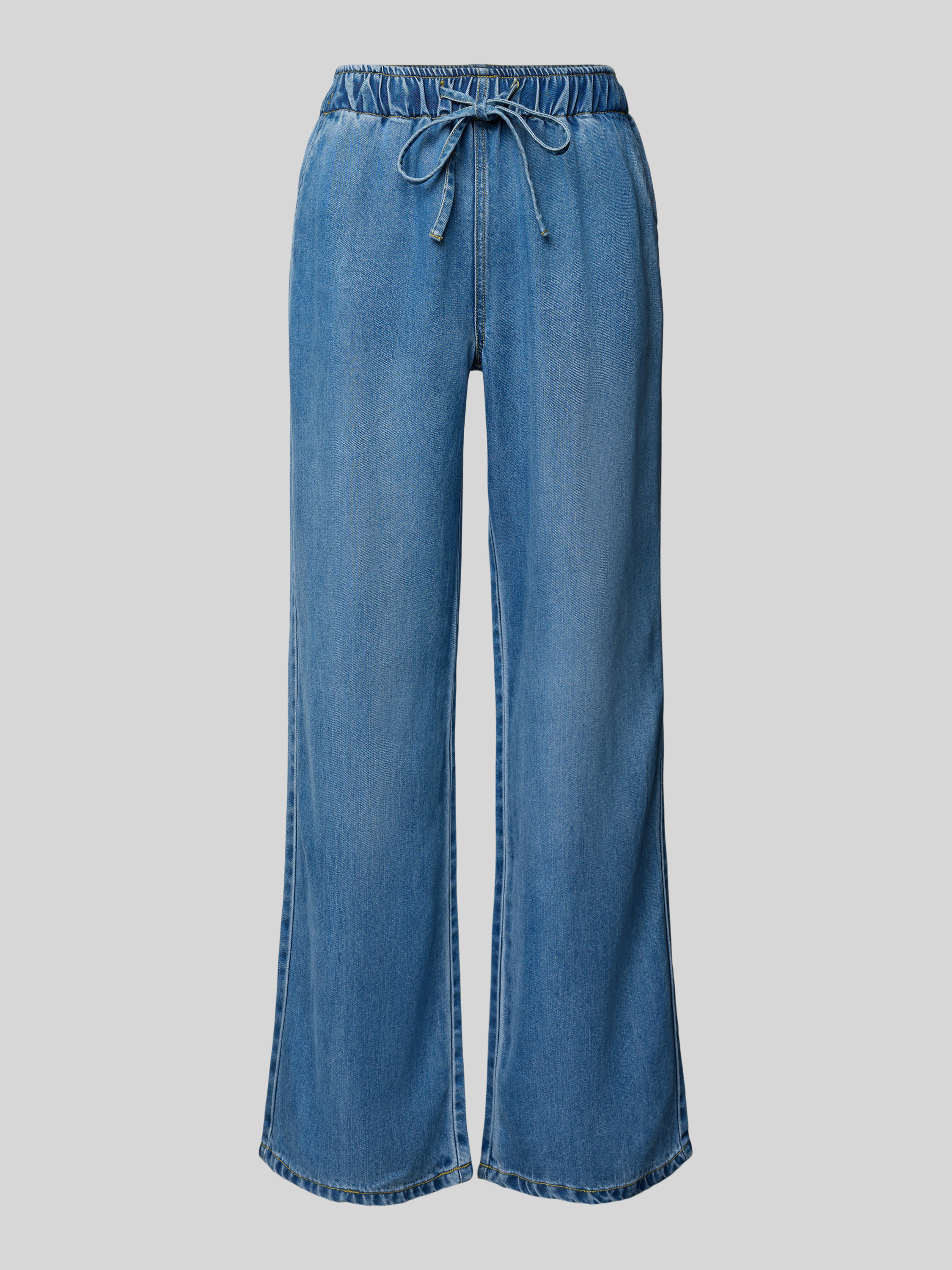 Jeansy o kroju regular fit z szeroką nogawką i elastycznym pasem model ‘GRETA’ - jeansowy niebieski melanż