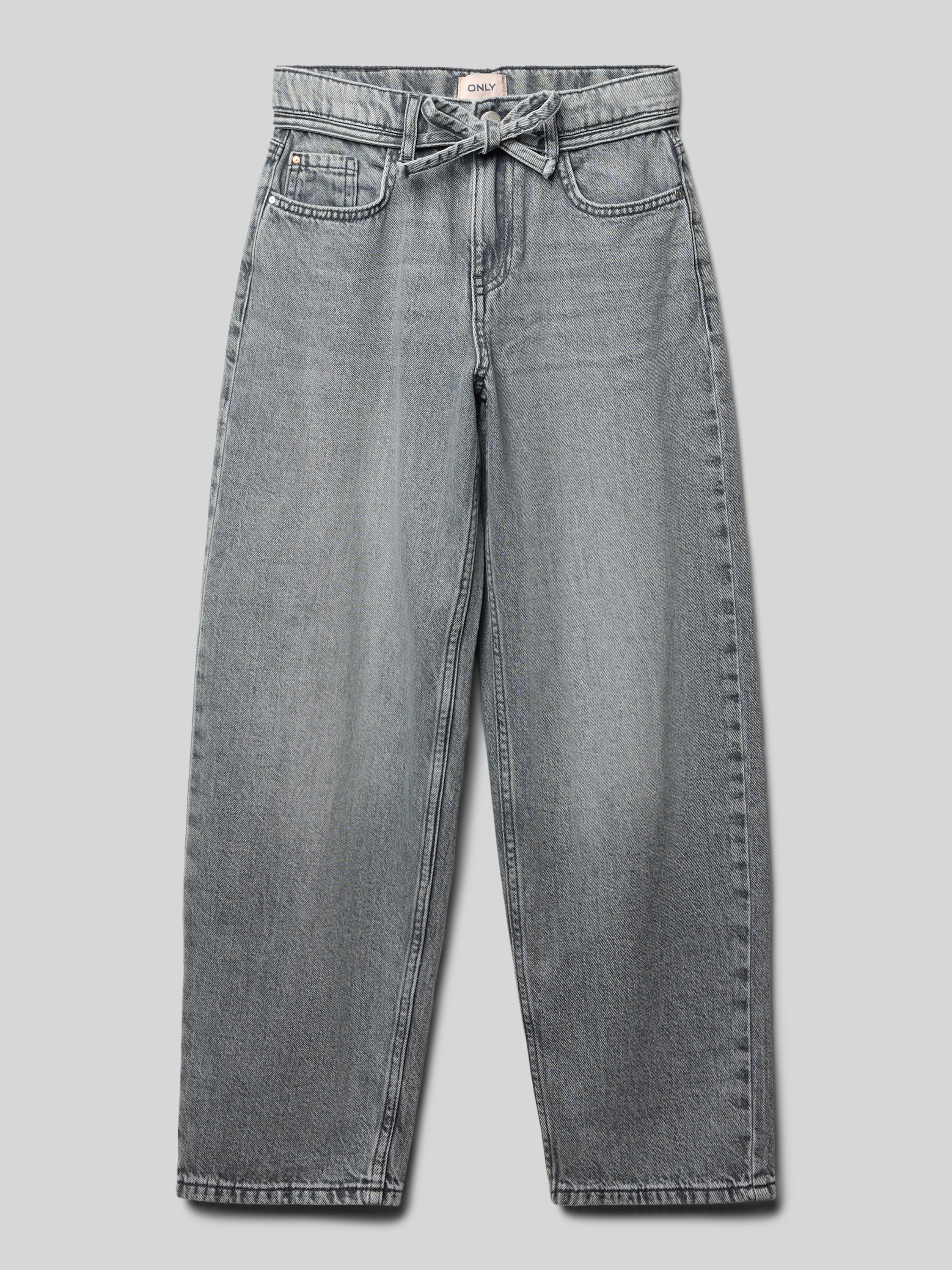 Jeansy o kroju straight fit z czystej bawełny model ‘GIANNA’ - średnioszary melanż