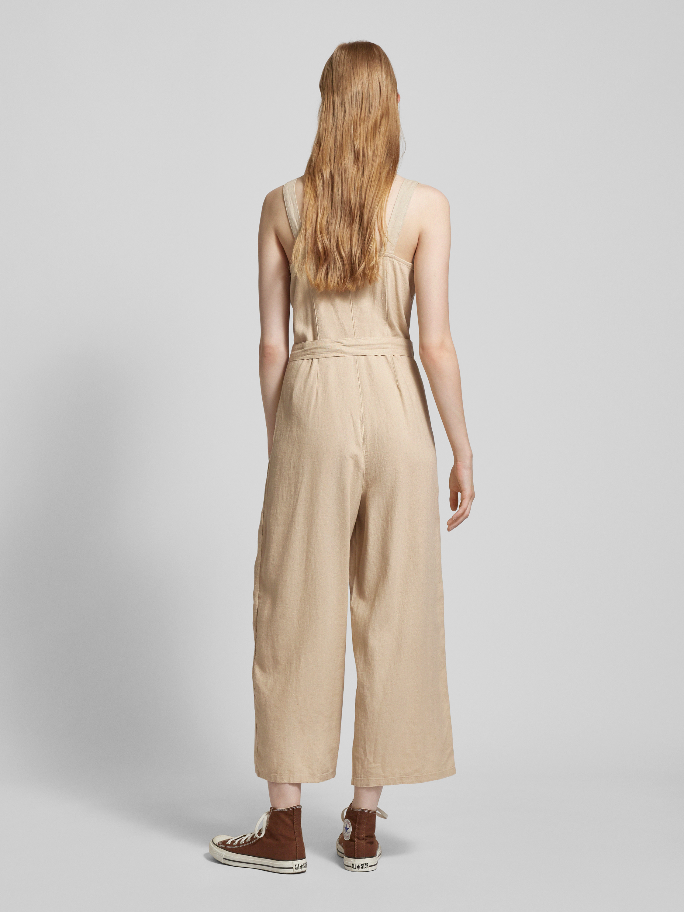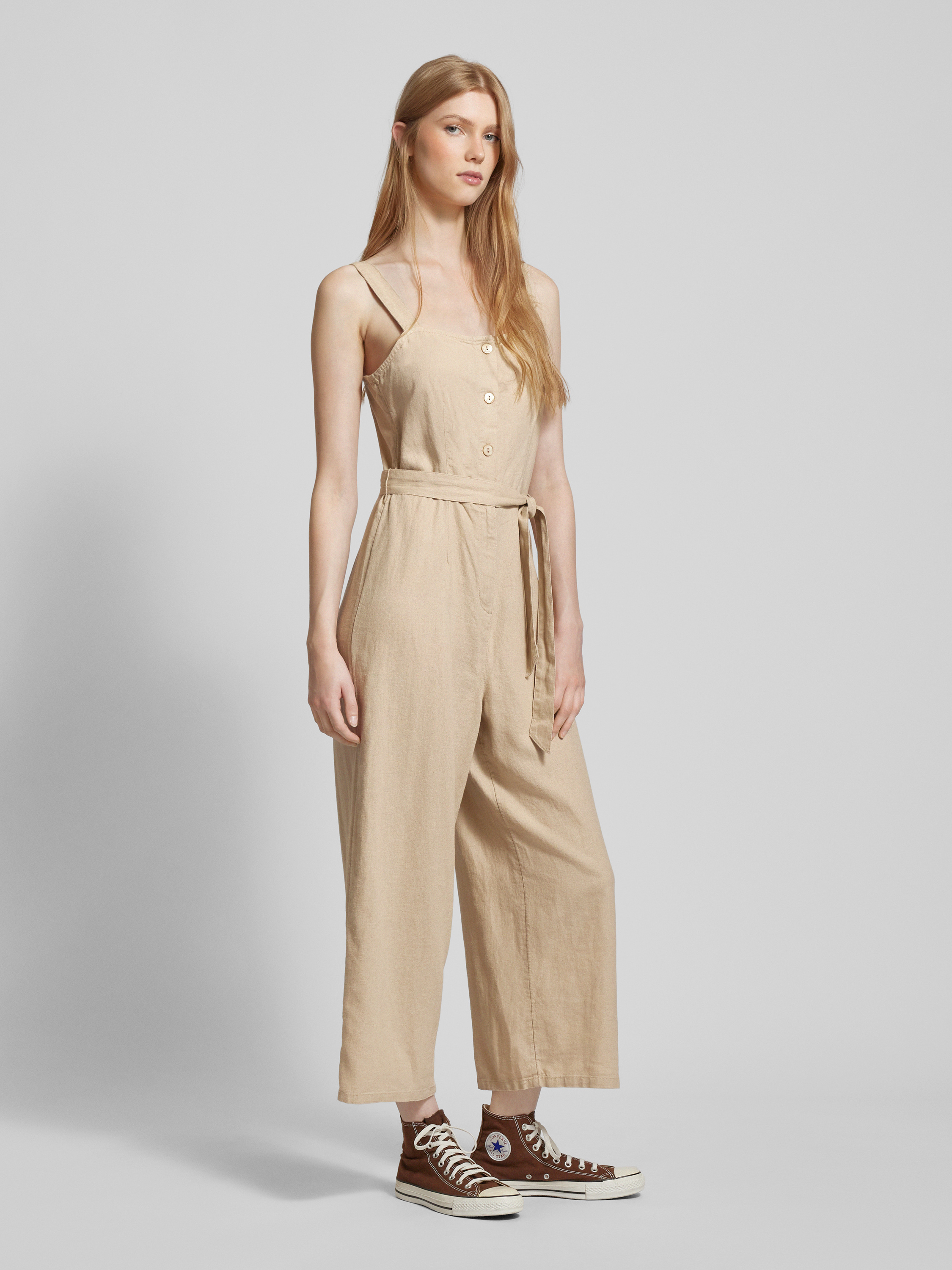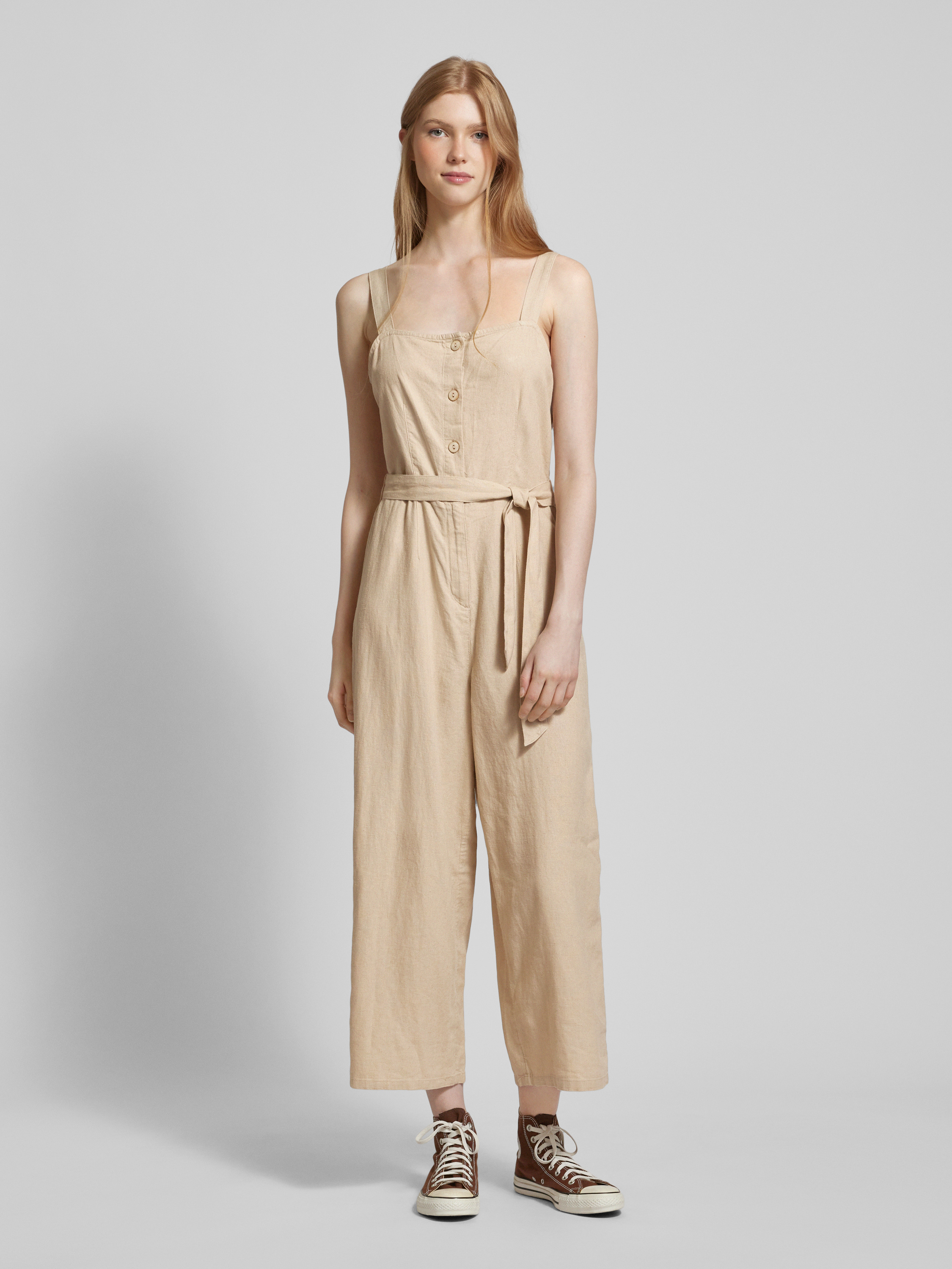 Kombinezon o kroju regular fit z mieszanki lnu i wiskozy model ‘CARO’ - beżowy