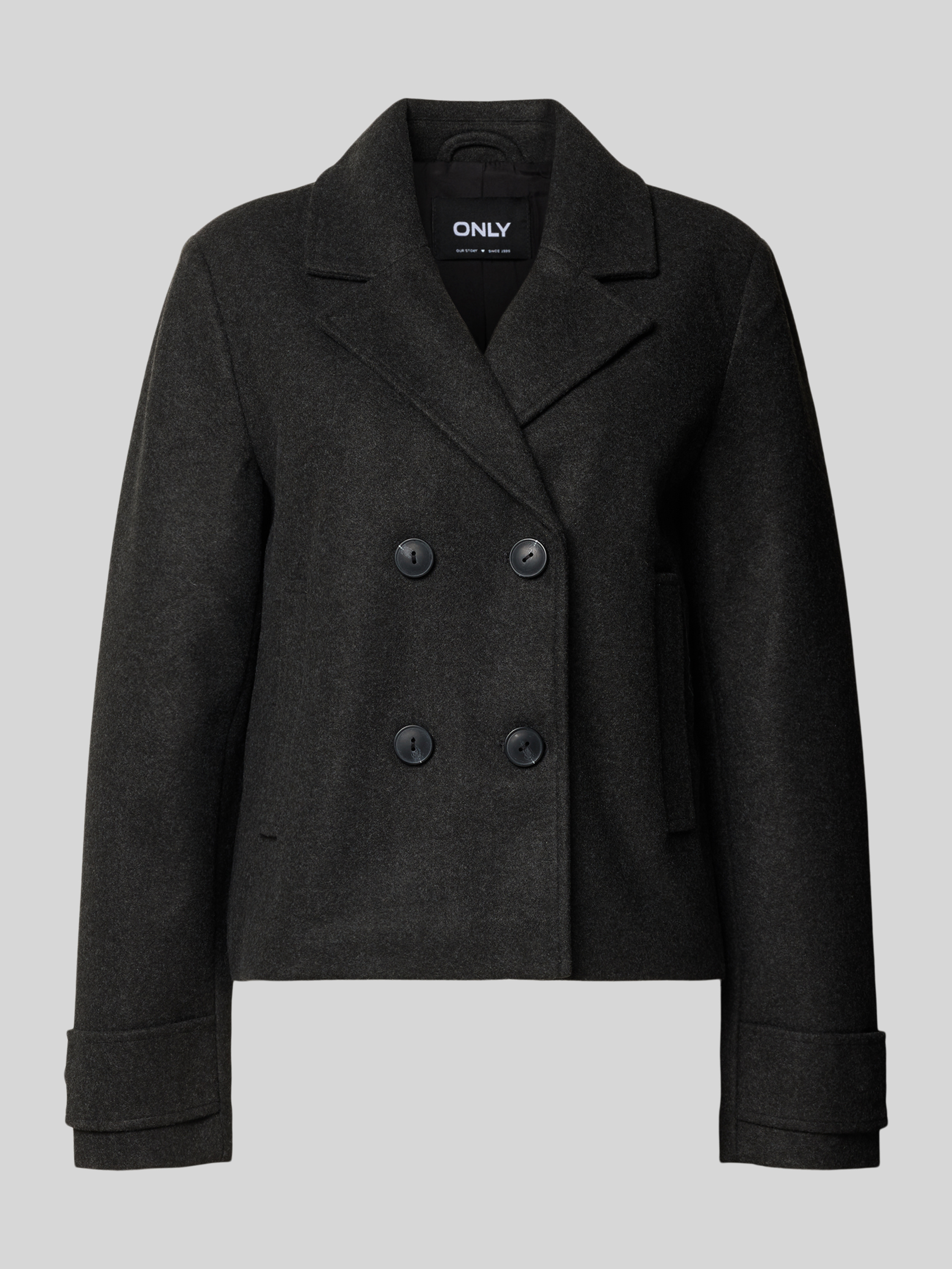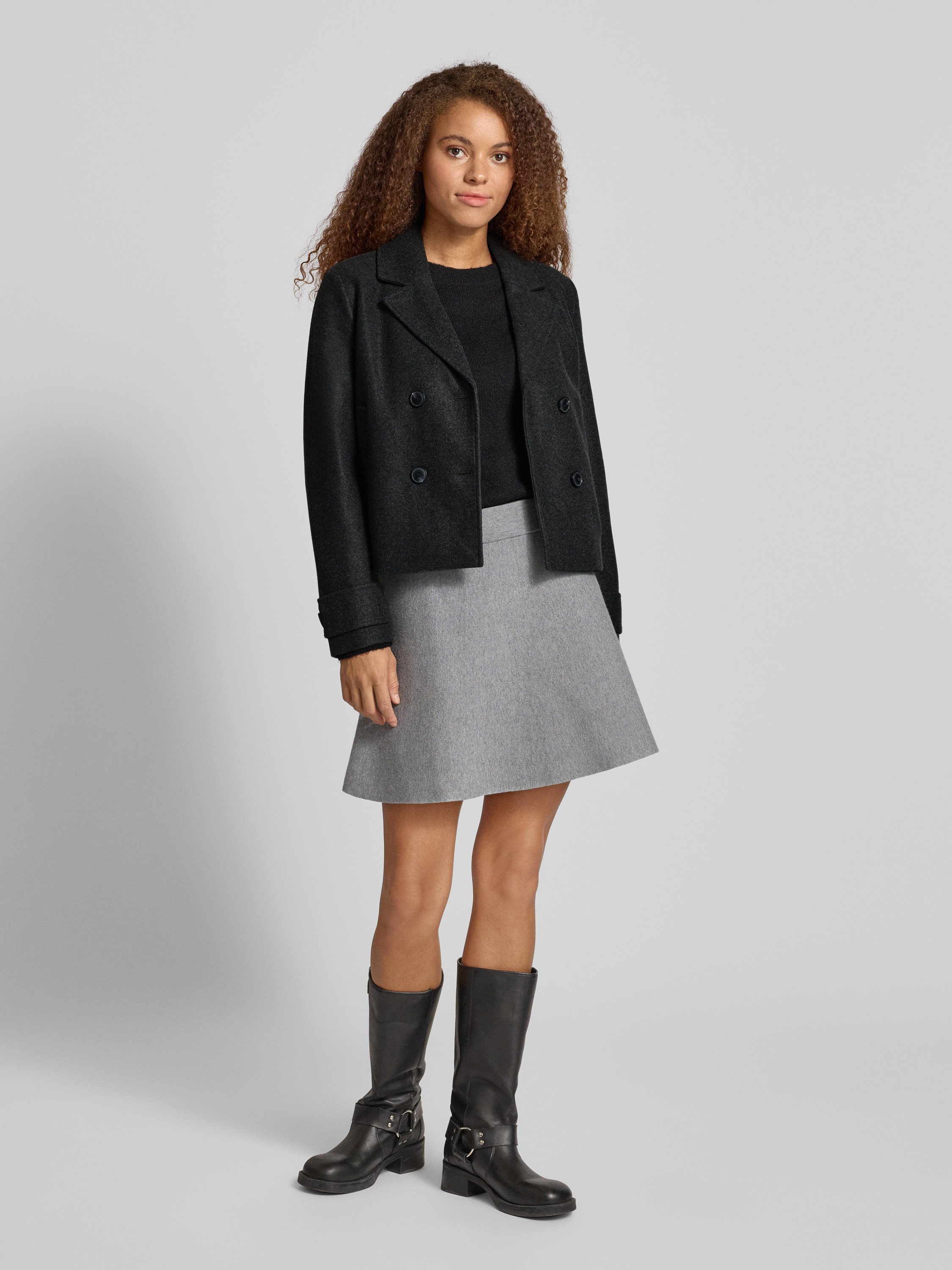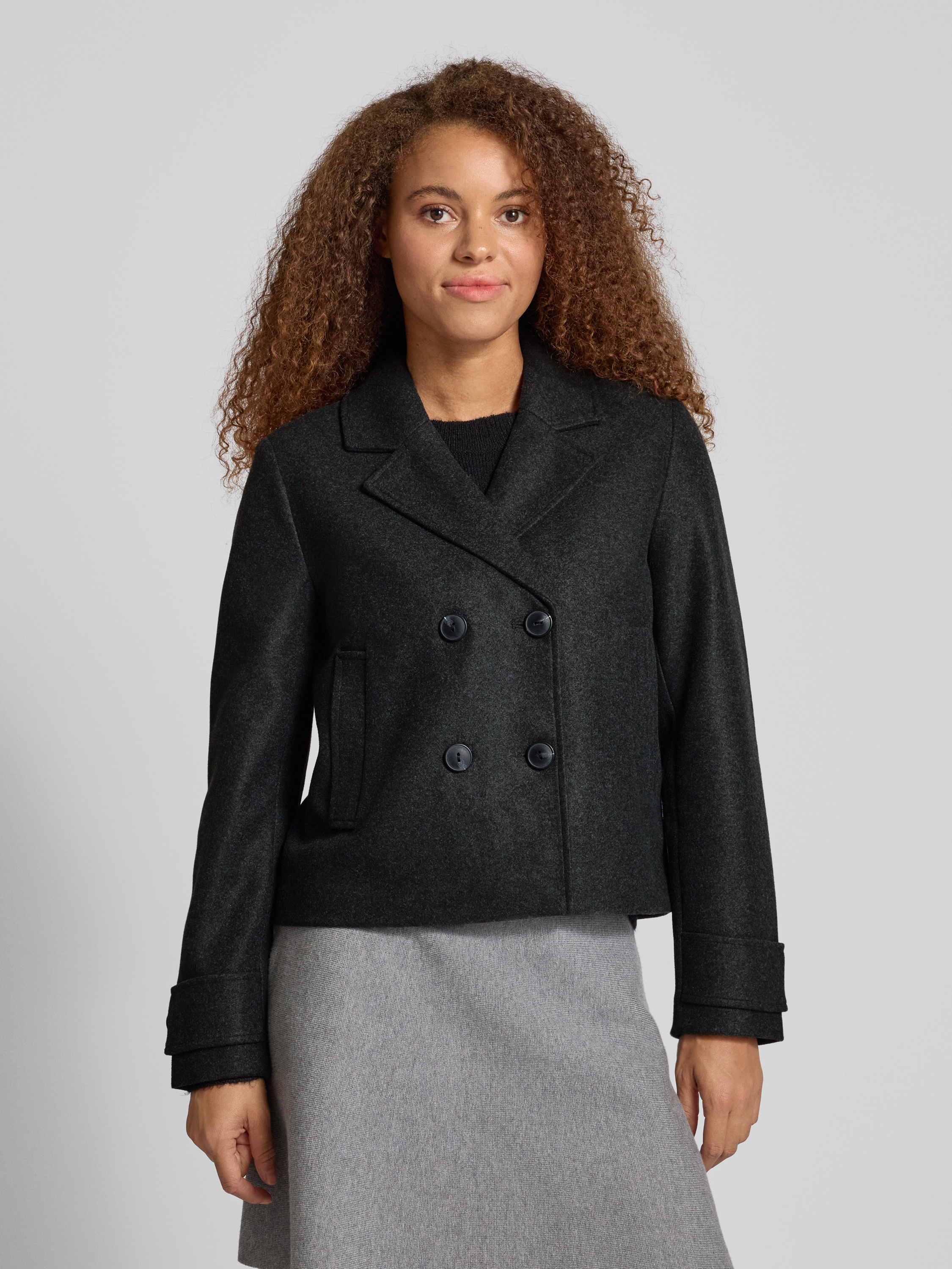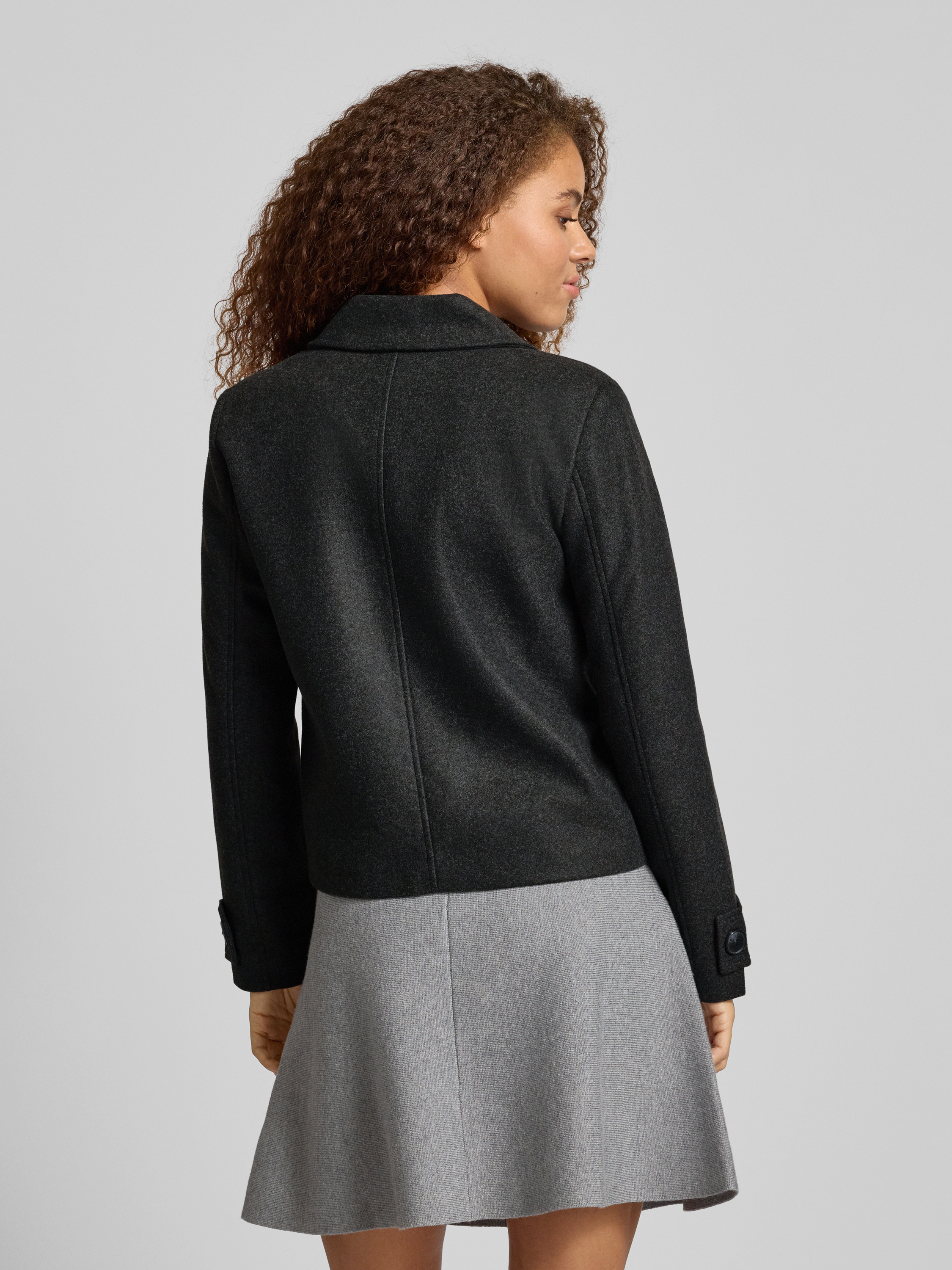 Krótki trencz z kołnierzem z połami model ‘FREJA LIFE’ - antracytowy melanż