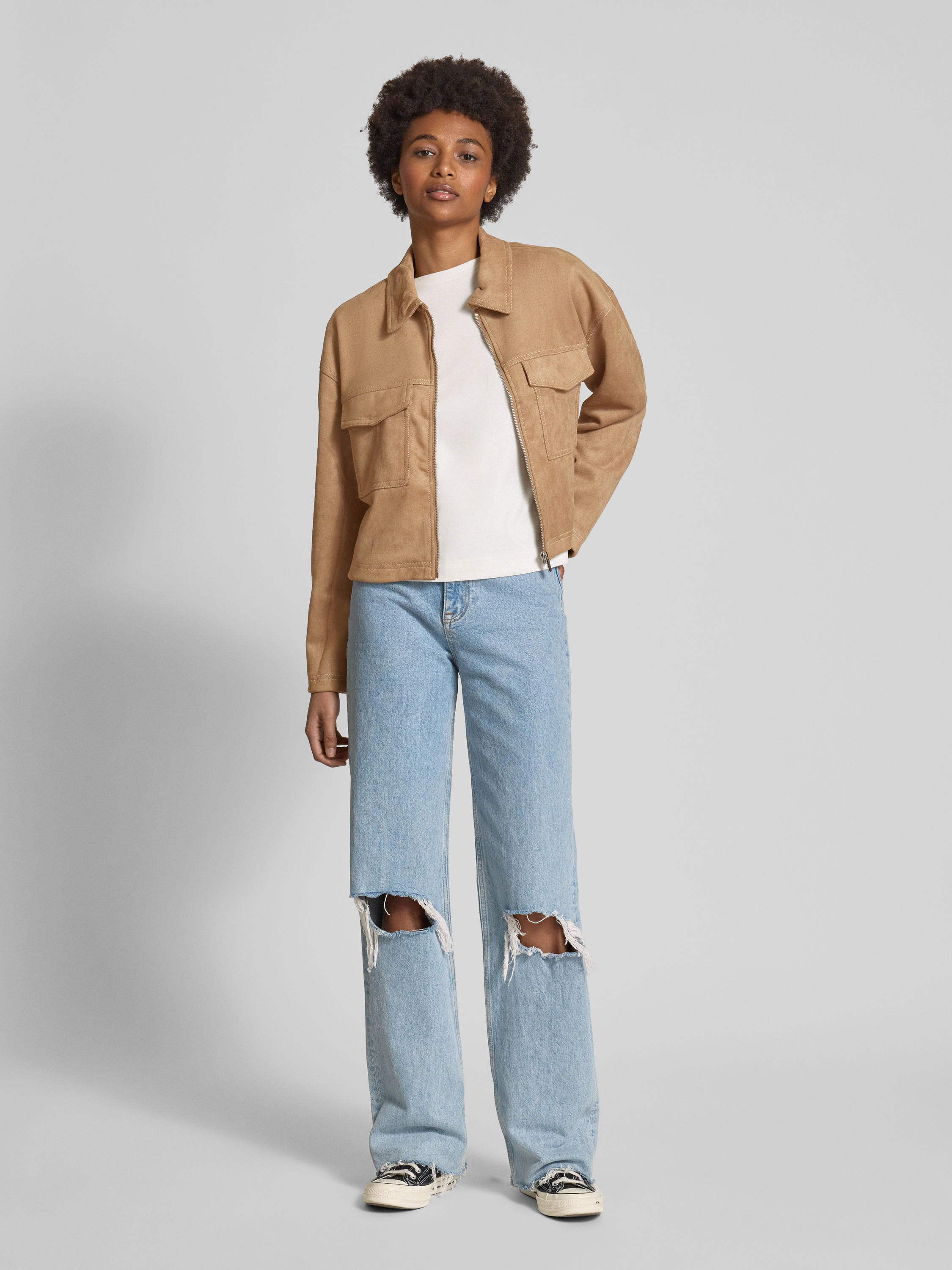 Kurtka o kroju oversized z imitacji zamszu model ‘STINA’ - piaskowy