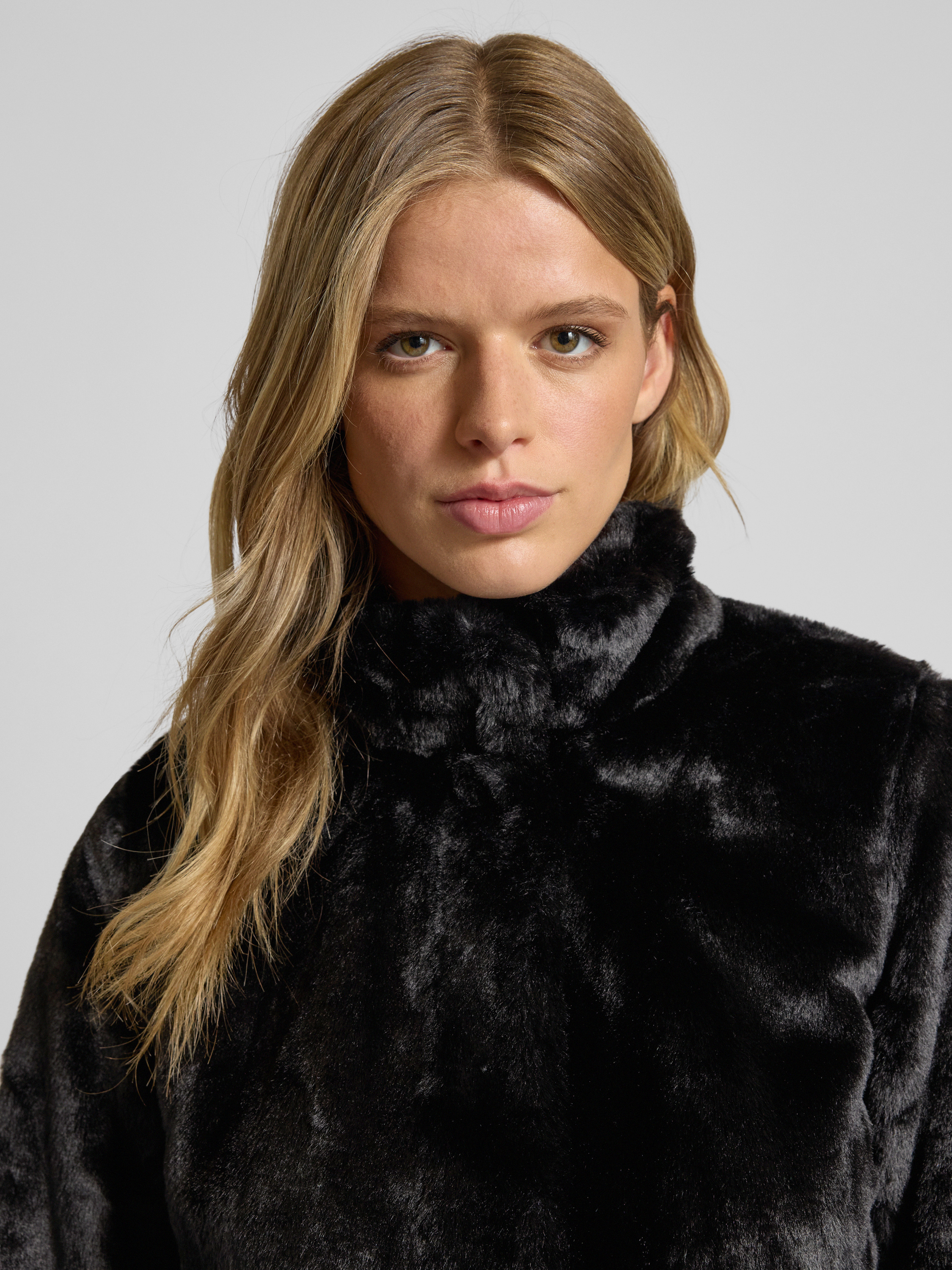 Kurtka o kroju regular fit z imitacji futra model ‘NEWVIDA’ - czarny