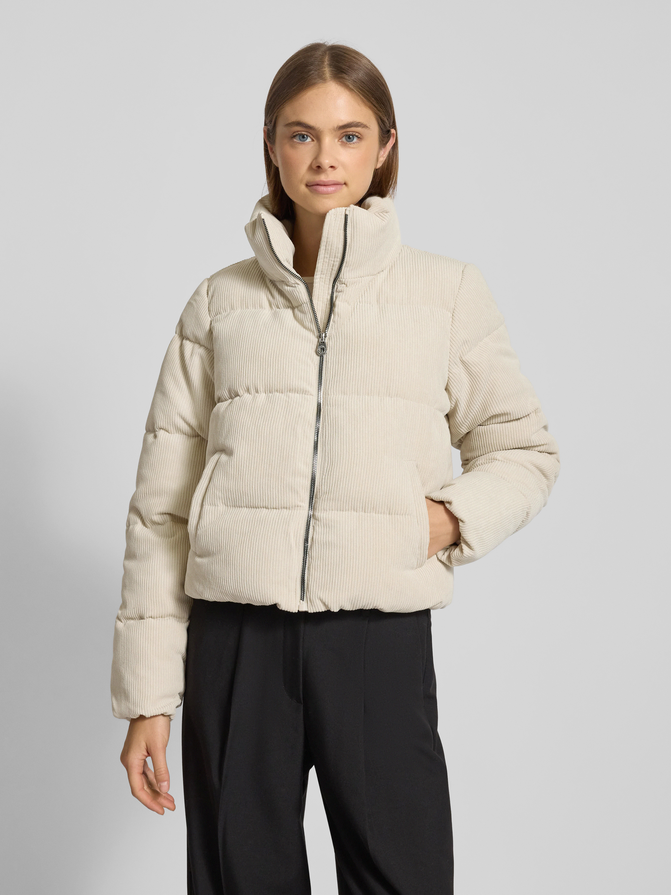 Kurtka pikowana o pudełkowym kroju ze sztruksu model ‘NEWDOLLY’ - écru