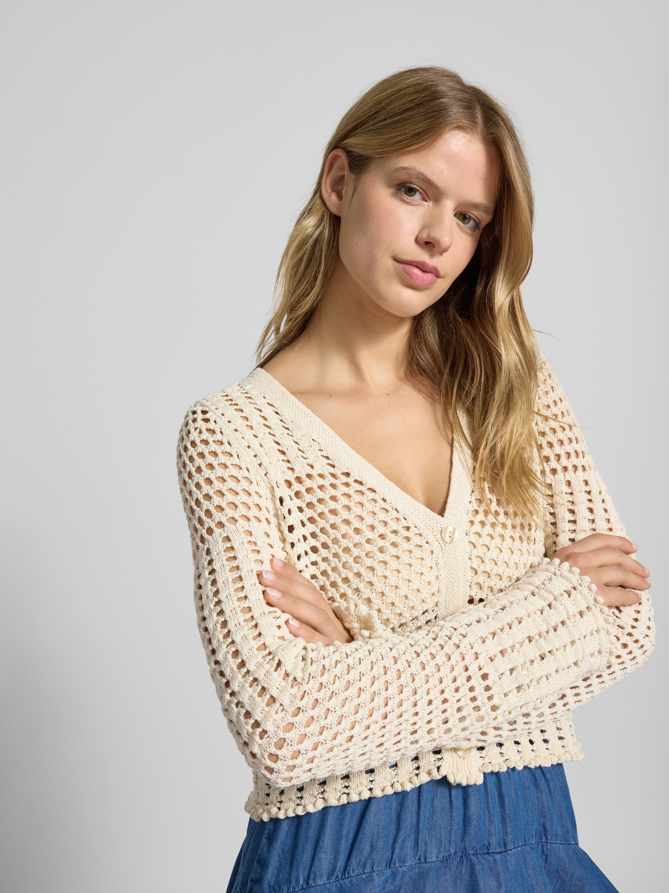 Kurtka z dzianiny o kroju relaxed fit z dodatkiem bawełny model ‘NOLET’ - złamany biały