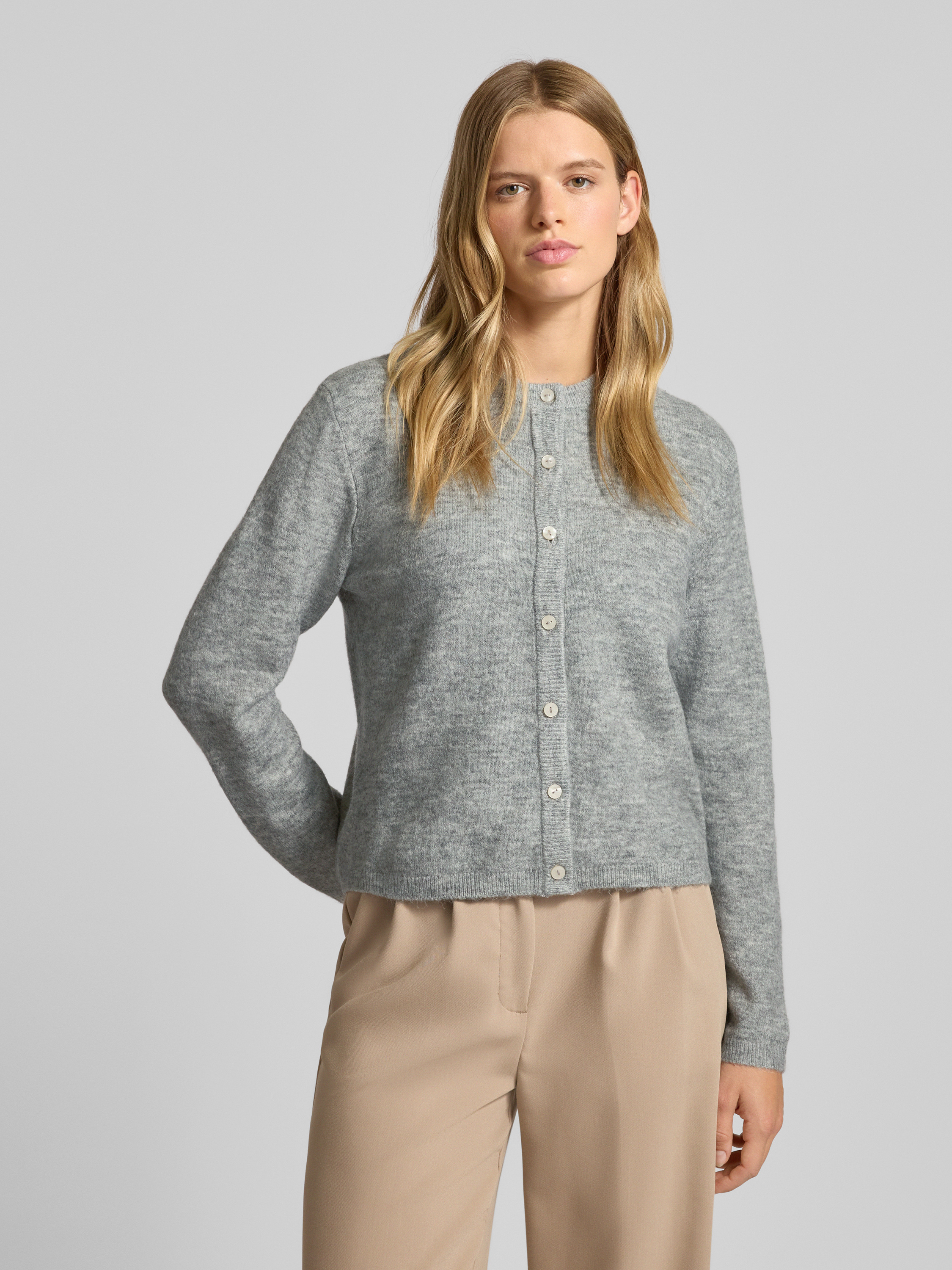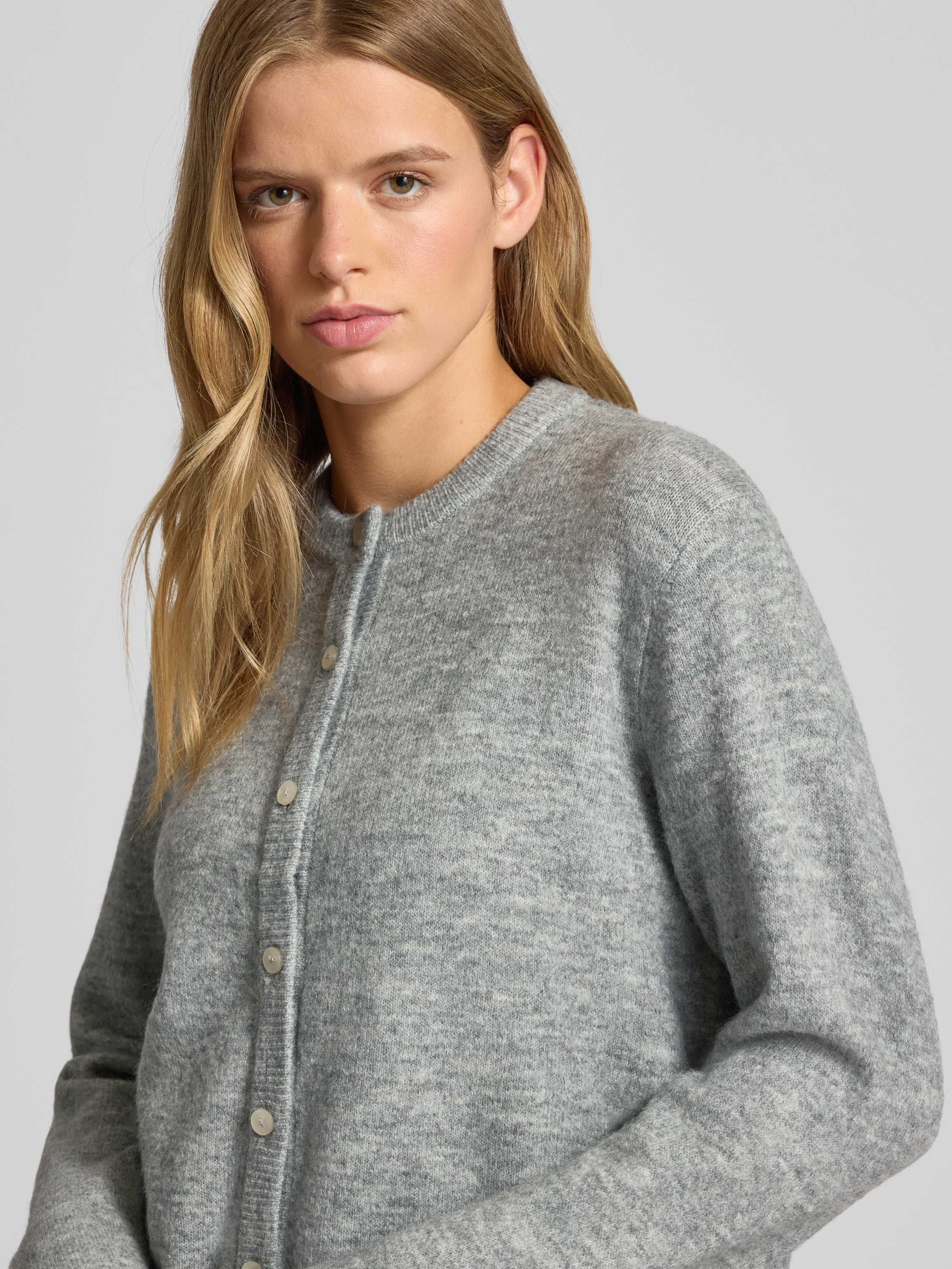 Kurtka z dzianiny o luźnym kroju z listwą guzikową model ‘SIMONI’ - średnioszary melanż