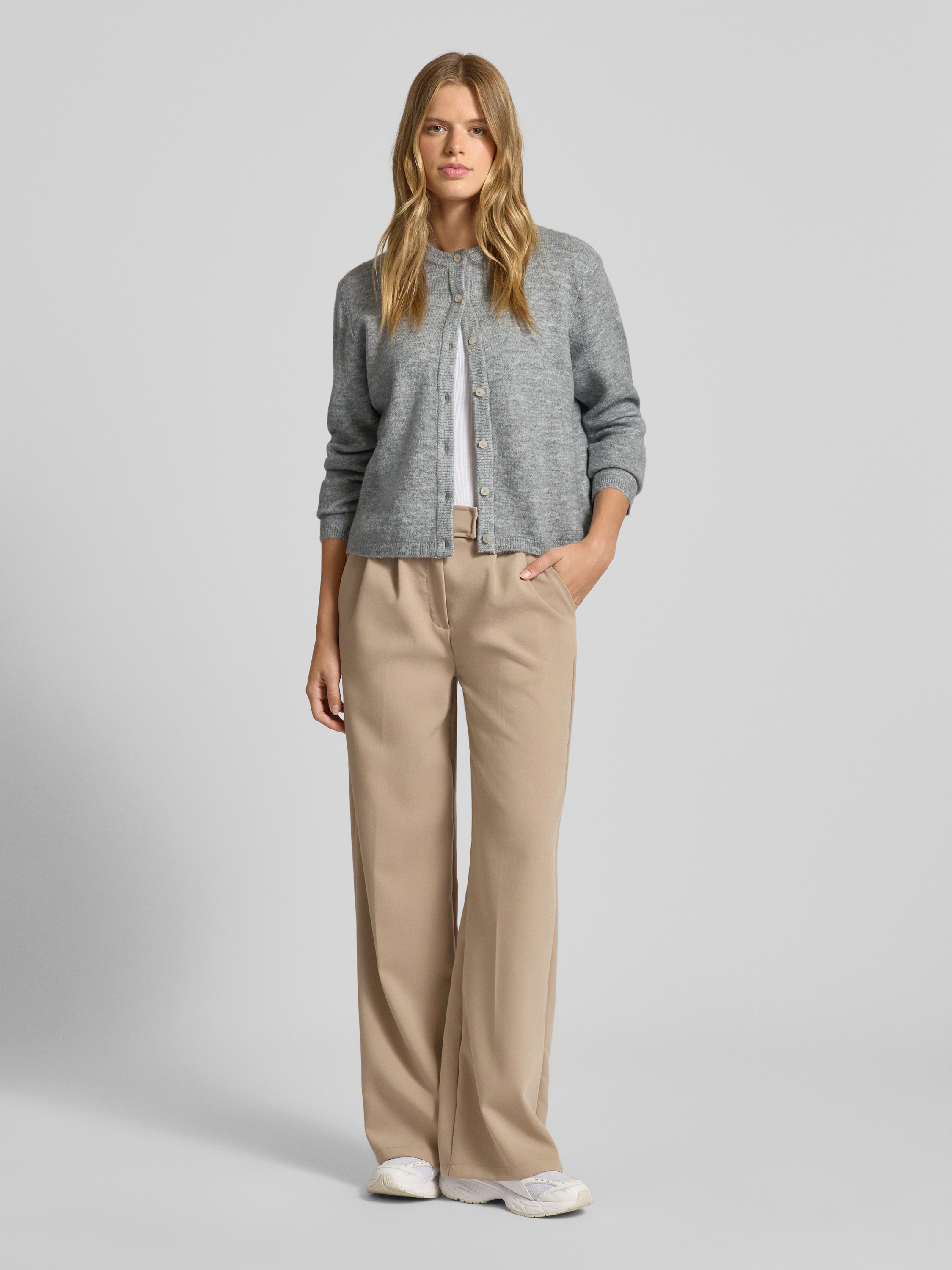 Spodnie materiałowe z szeroką nogawką i zakładkami w pasie