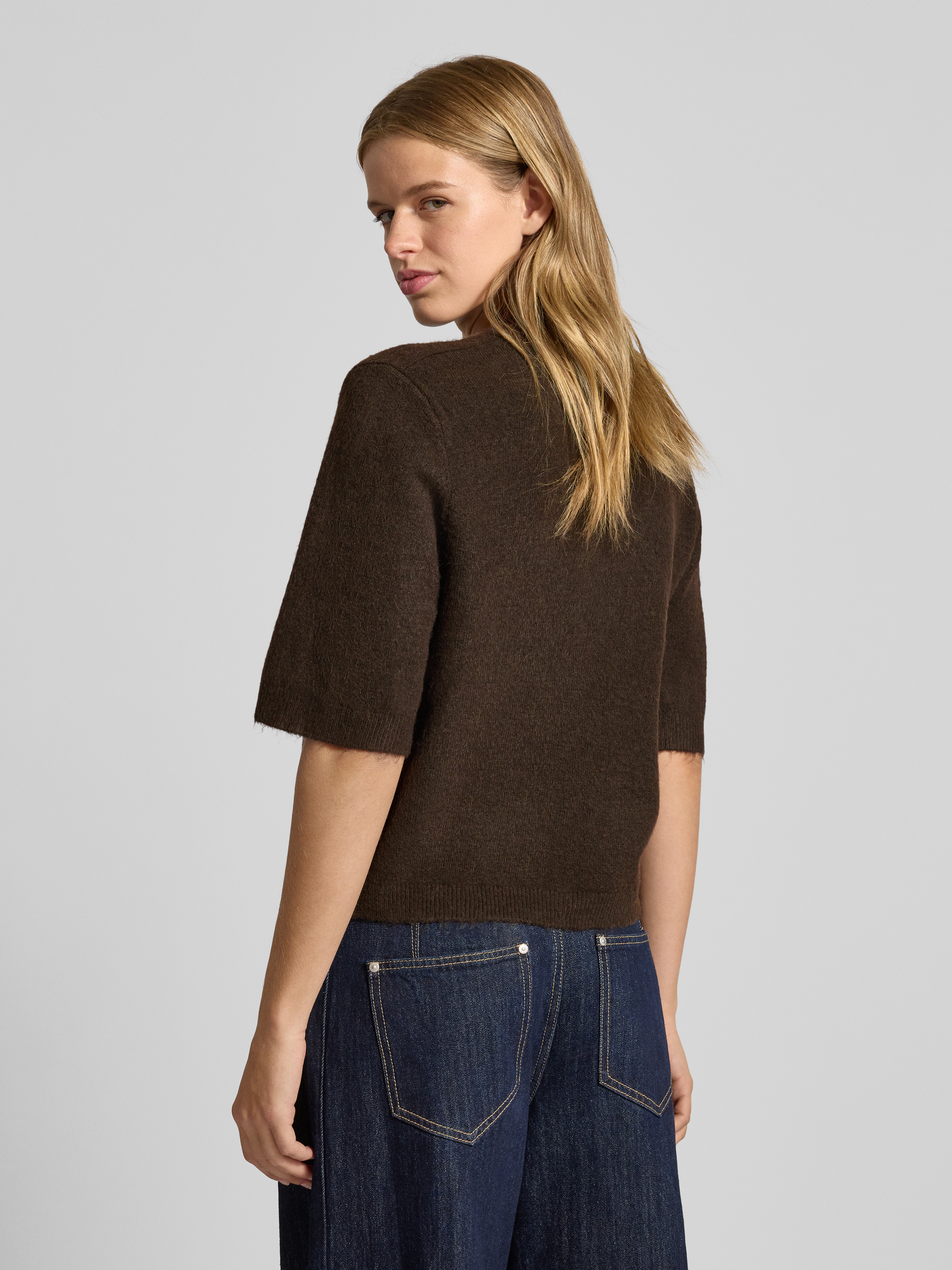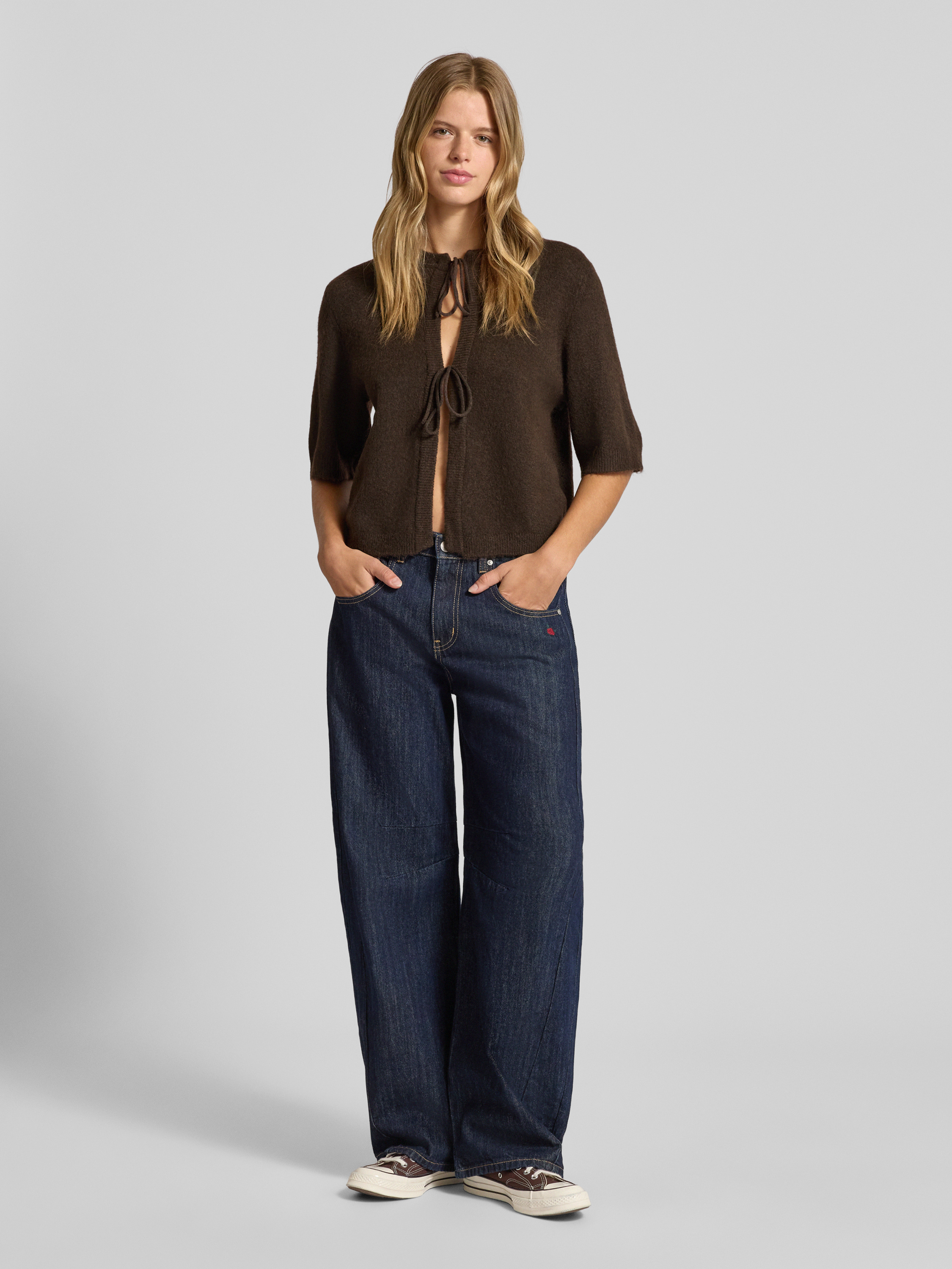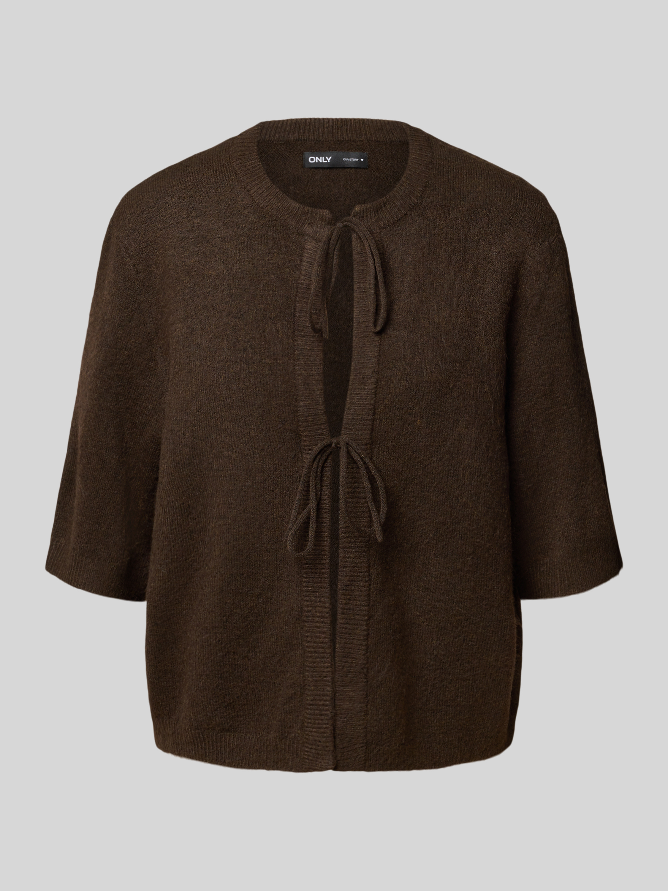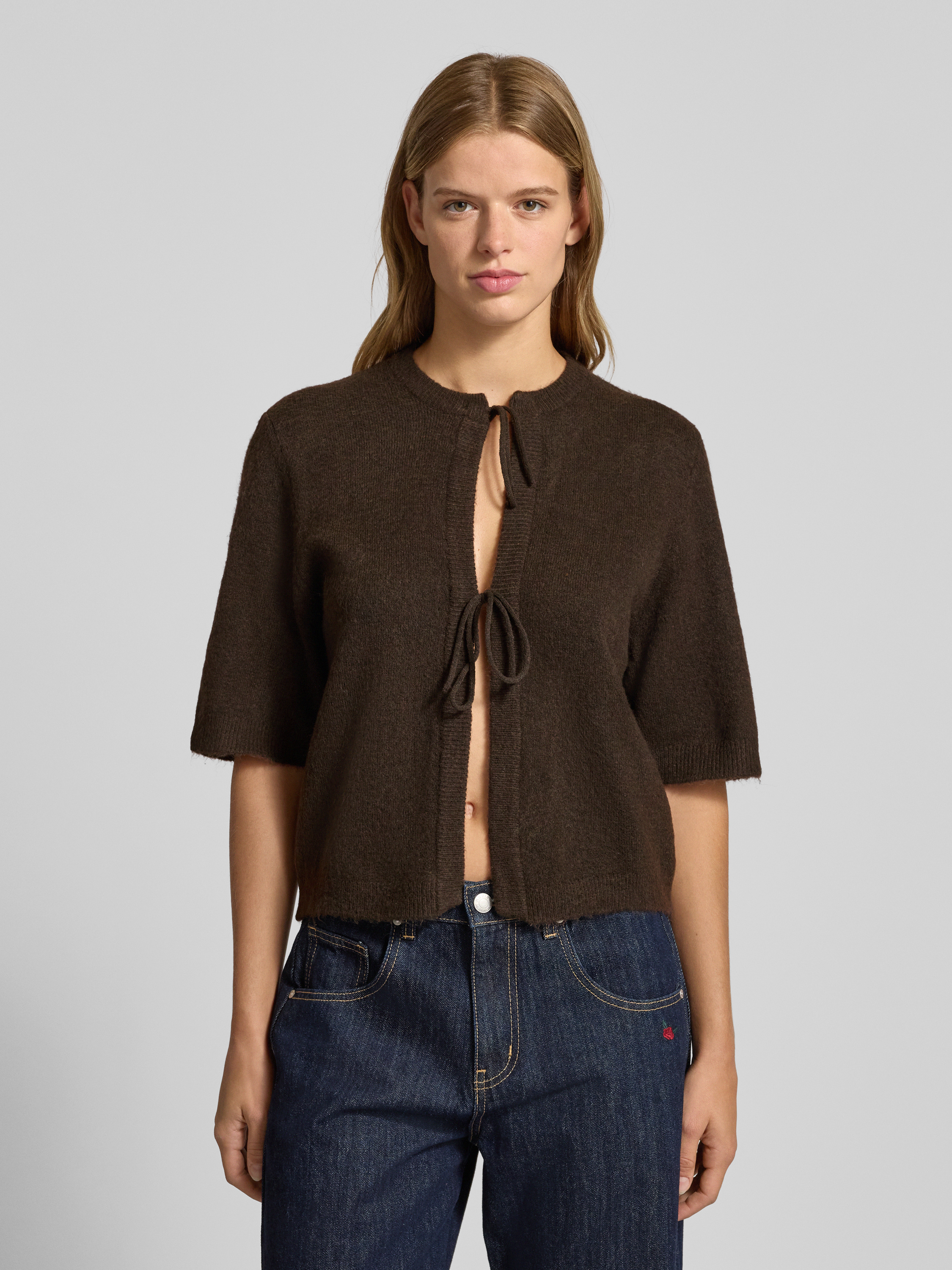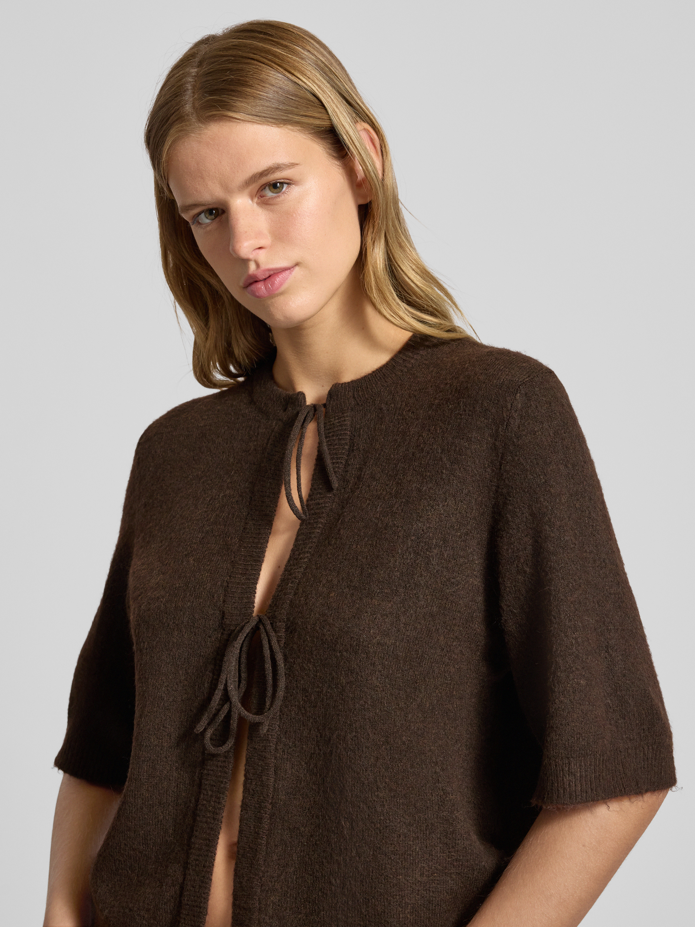 Kurtka z dzianiny o luźnym kroju z wiązanym detalem model ‘SIMONI’ - czekoladowy