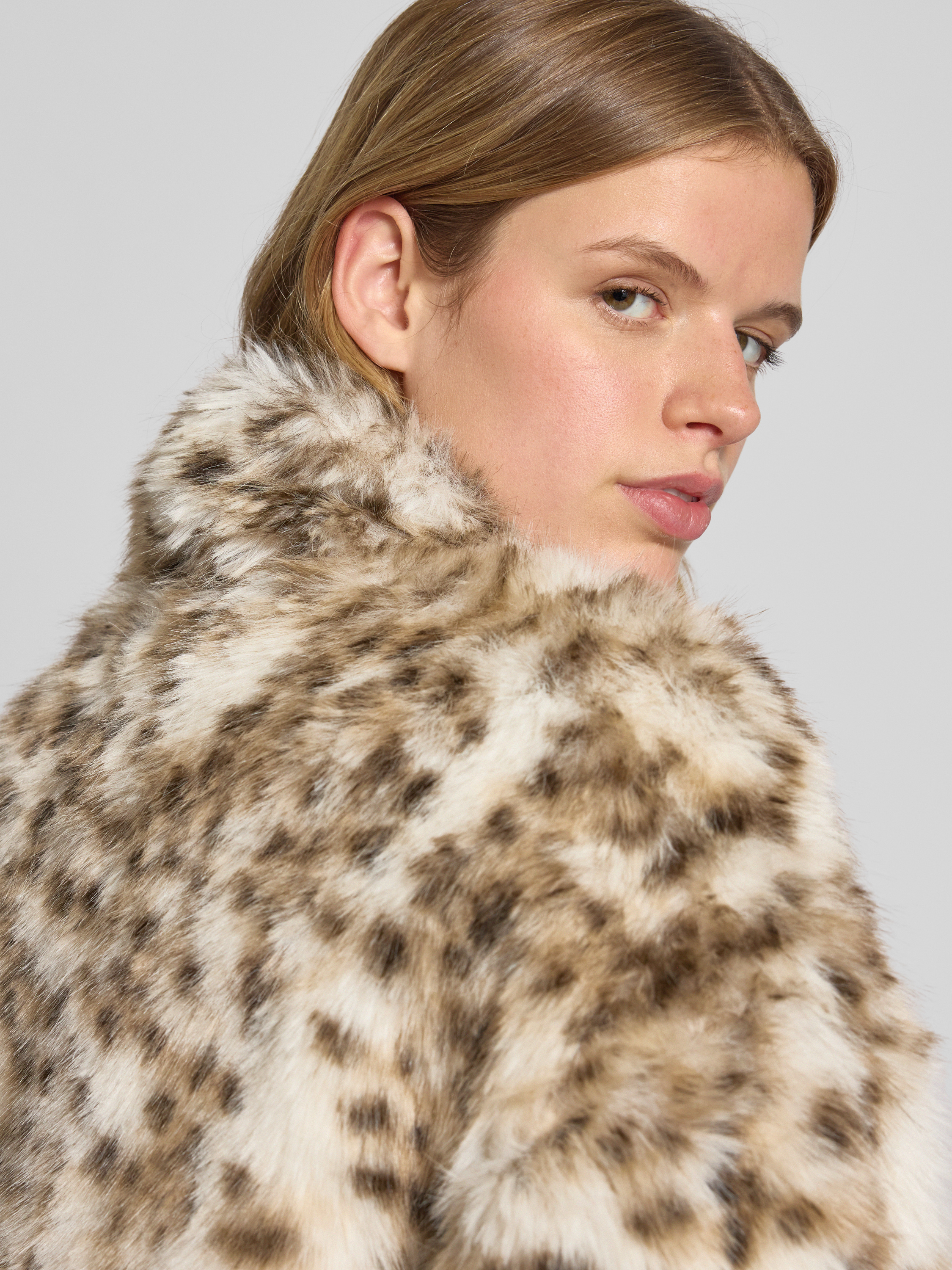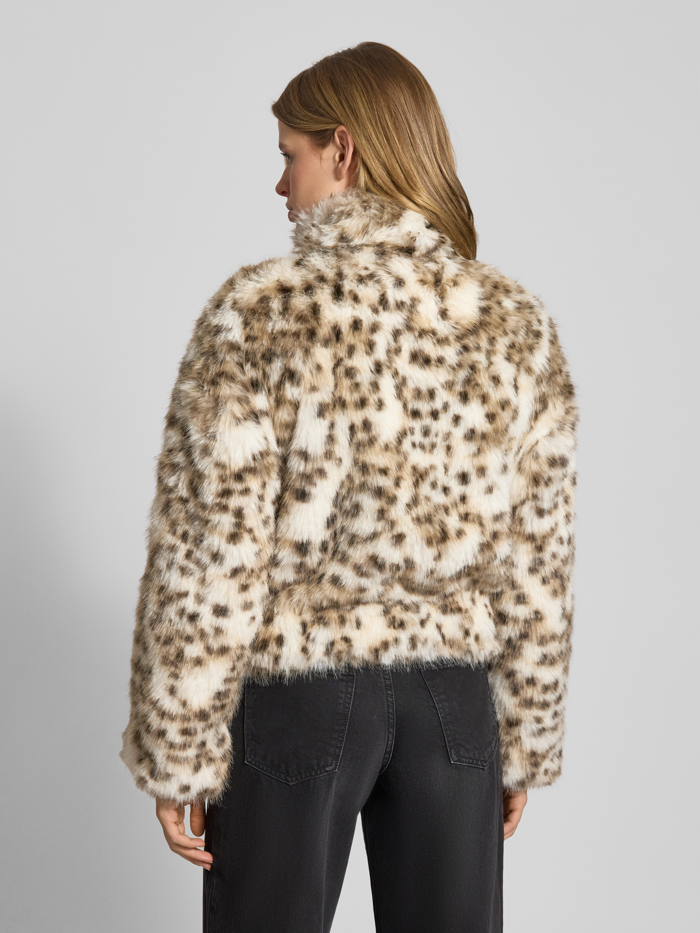Kurtka z imitacji futra o kroju regular fit ze wzorem w panterkę model ‘JANIS’ - écru